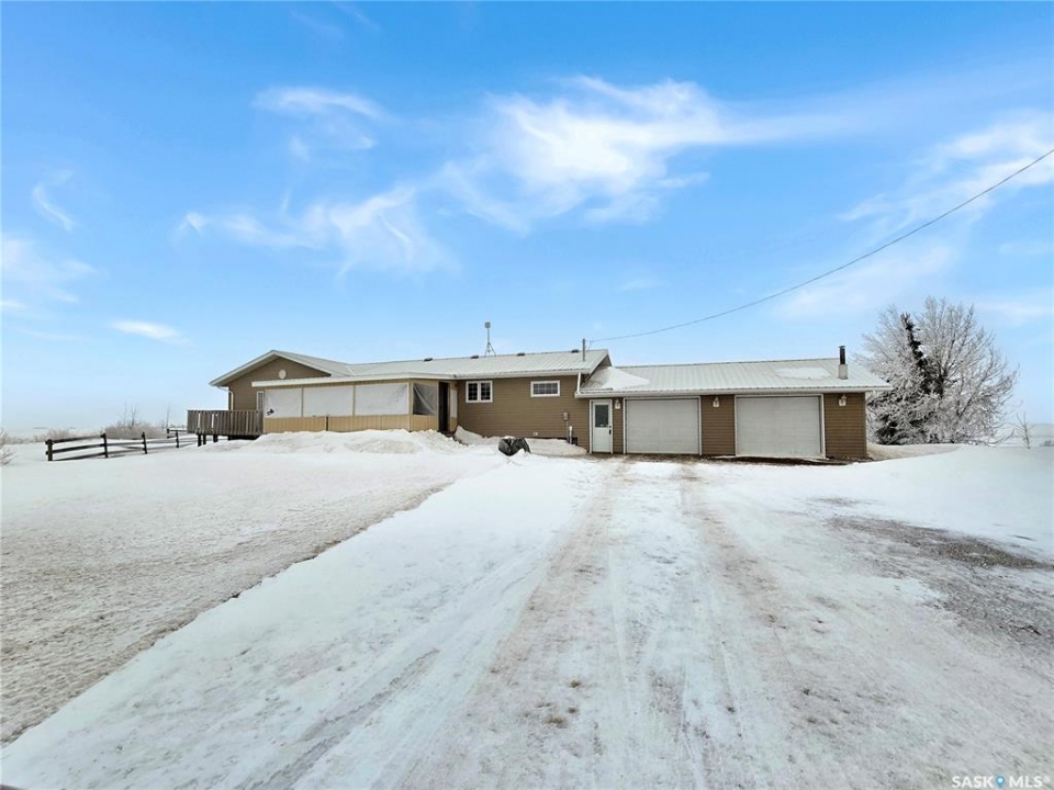 Watch the beautiful sunrises from this picturesque 10 acre parcel. This well maintained acreage offers space, comfort, and efficiency both inside and out. This home has 4 bedrooms, 3 bathrooms, with the lower level offering the potential for an additional bedroom or home office, making it ideal for growing families or those needing extra workspace. A spacious double attached garage provides ample room for vehicles and storage. The home was thoughtfully expanded with a 960sqft addition in 2009, enhancing both functionality and living space. The kitchen features beautiful all-wood maple cabinetry, newer taps and appliances offering both style and functionality. The main floor laundry room is equally well equipped with a newer washer and dryer, adding convenience to everyday living. Designed for year-round comfort and efficiency this home features geothermal heating, a brand new water heater (Feb 2026), and spray foam insulation in the basement.The large, spa like finished main bath adds a touch of luxury, while a screened-in area on the deck is perfect for enjoying those prairie views in comfort. Outside boasts a stunning yard, with plenty of space to relax, entertain, and enjoy country living at its finest.This acreage offers the perfect blend of privacy, practicality,and modern upgrades.