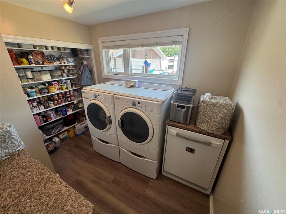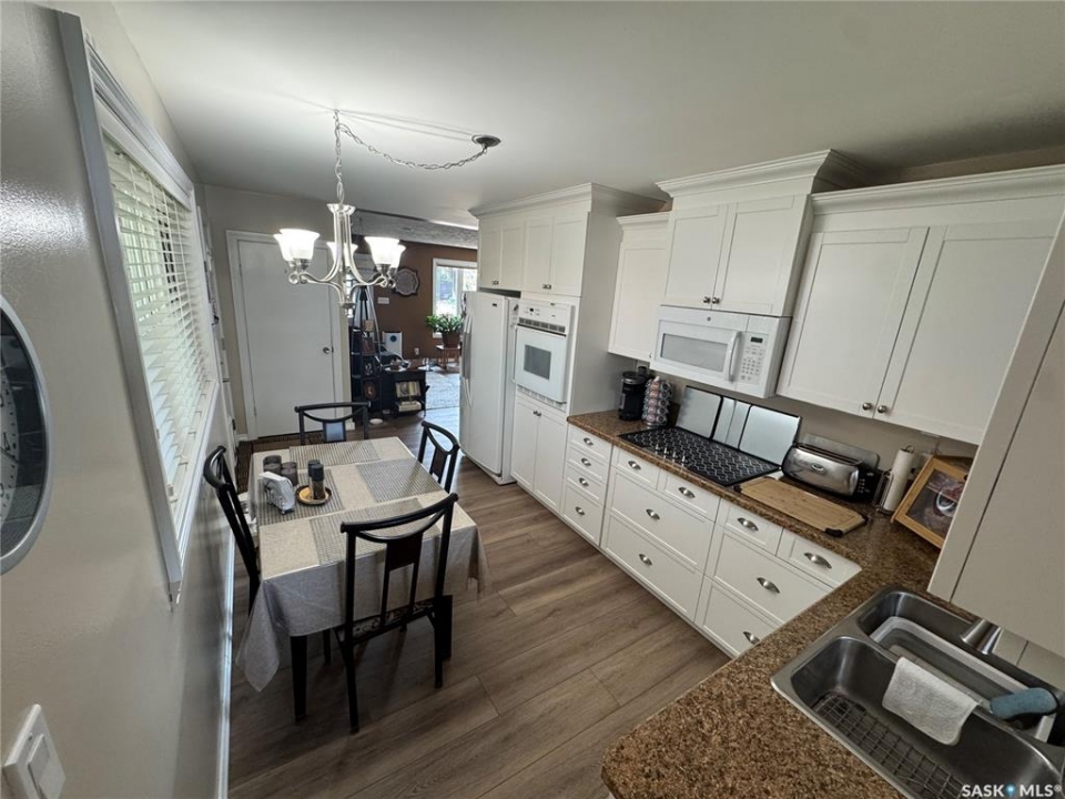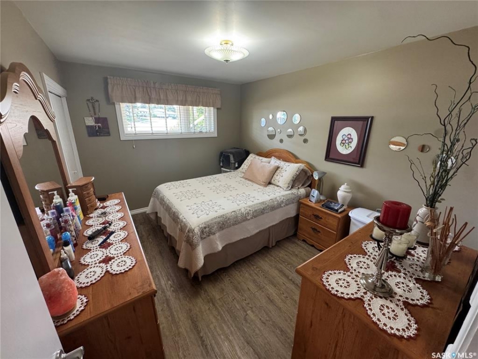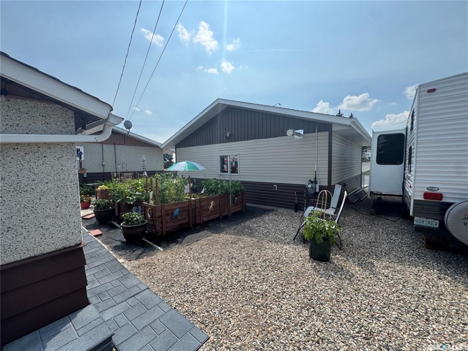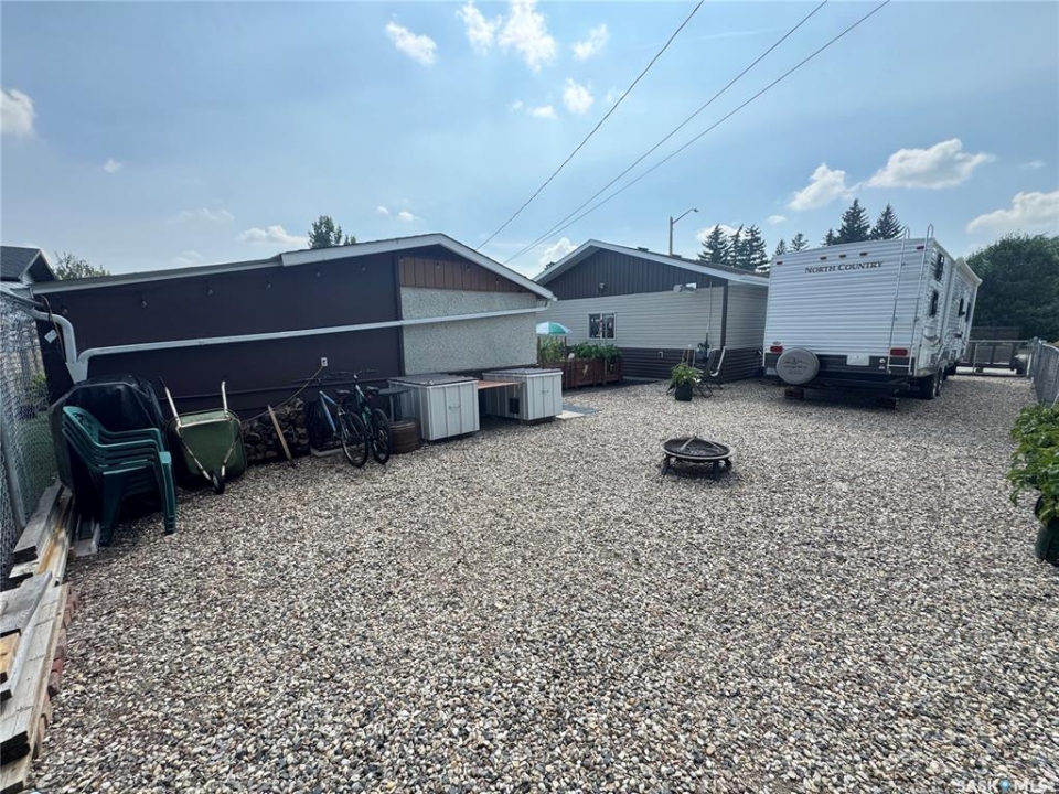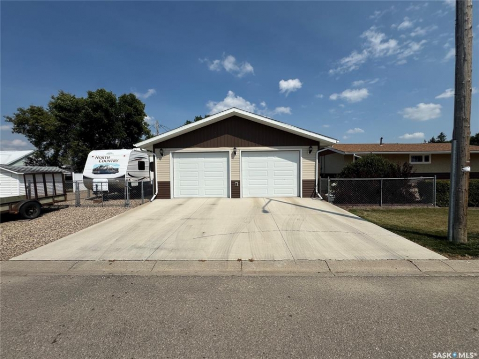 Welcome to charming Strasbourg, Saskatchewan; small-town living with big lifestyle appeal. Just 50 minutes from Regina and only minutes from the resorts and recreation of beautiful Last Mountain Lake, this location offers the perfect blend of peaceful living and convenience. This move-in ready home has been meticulously maintained and thoughtfully updated by the current owners, offering comfort, function, and style throughout. Featuring 3 bedrooms and 2 bathrooms, this home showcases brand new luxury vinyl plank flooring, plus elegant marble flooring in the upstairs bathroom. The main floor offers 2 good sized bedrooms, a brand new kitchen, convenient laundry, a huge pantry, and a bright, welcoming living room with large windows that fill the space with natural light. Downstairs, you'll find a spacious family room, an additional large bedroom, and a beautifully updated modern bathroom, perfect for guests or growing families. The oversized utility room provides exceptional storage and includes a reverse osmosis system, water softener, central vacuum, and space for freezers. Step outside and enjoy your own private retreat. The yard is designed for both relaxation and entertaining, featuring garden boxes, RV parking with exterior plug, a large storage shed, and a covered outdoor space; ideal for enjoying Saskatchewan's beautiful evenings. The insulated, heated double detached garage with 220V plug adds incredible value and versatility. This exceptional property offers space, updates, and lifestyle; all in a welcoming community near the lake. Truly move-in ready and waiting for its next owners.
