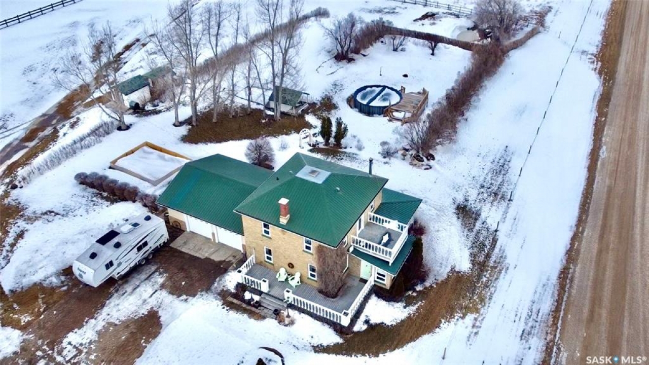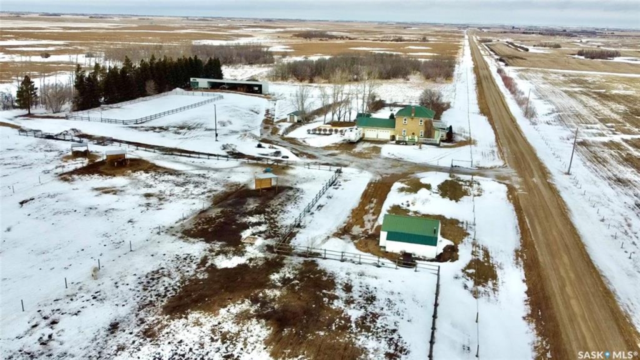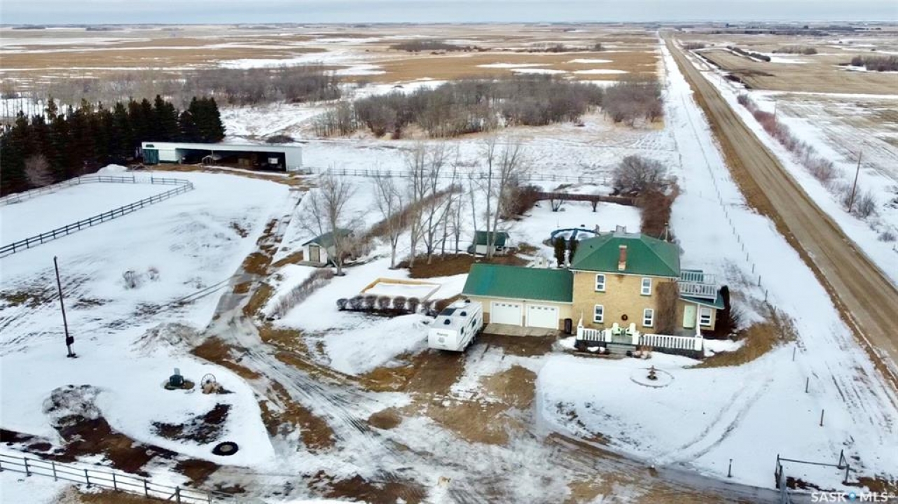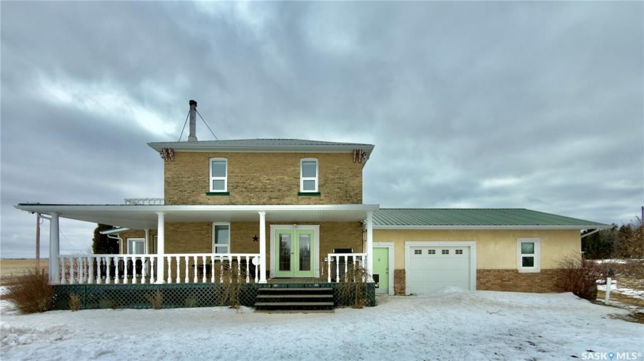 Welcome to your acreage in the RM of Wolseley, just 6 km from town and school. Set on 20.39 fully fenced acres with shelterbelt protection and flat topography, this property is thoughtfully set up for animals while offering the comfort of a beautiful character home. The land is functional and ready. Complete perimeter fencing, a well water supply, lagoon system, a outdoor riding arena - 80x200, and multiple outbuildings including a shop, chicken coop, and additional shelters and storage structures provide the infrastructure you need for animals, equipment, and rural living. Built in 1906, the two storey home offers 1,836 square feet plus a fully finished basement. Inside, you will find a warm and inviting main floor with wood flooring throughout the kitchen, dining room, and living room. The layout is both charming and functional, complemented by a convenient laundry and mud room and a two piece bathroom on the main level, ideal for acreage life. Upstairs offers three bedrooms including a generous primary bedroom measuring 20 feet in length, along with a full four piece bathroom. The finished basement provides additional living space with a large recreation room, storage area, and utility room, giving flexibility for family living or entertaining. The home features a durable metal roof, brick and stucco exterior, two fireplaces, reverse osmosis system, water softener, and baseboard electric heat supplemented by wood heat. This is a warm home, thanks to the upgraded windows, to triple pane, and the upgraded insulation. The 32 x 28 insulated garage with three overhead doors (drive-through) and ample room for vehicles, trailers, and guests. This is a rare opportunity to own a turnkey ready acreage that balances lifestyle and location. Peaceful rural surroundings, practical infrastructure, and a solid character home just minutes from Wolseley make this property one worth experiencing in person.