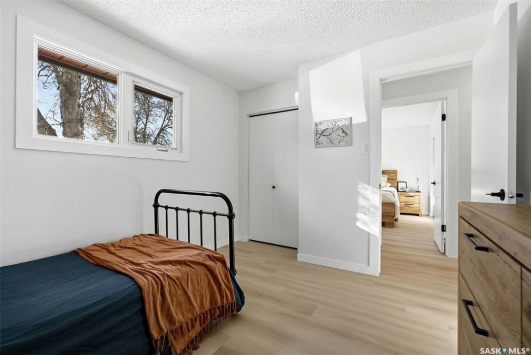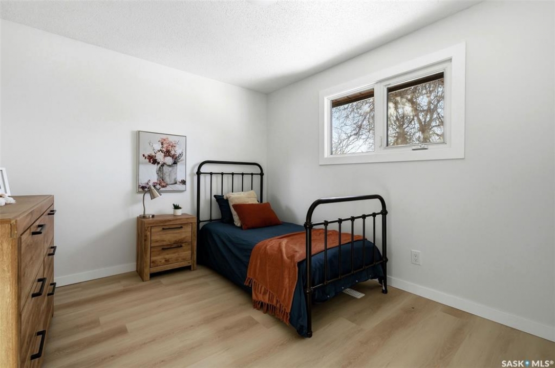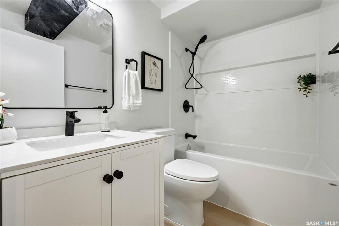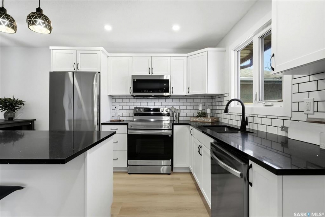 Welcome to 915 Rowell Crescent N in desirable McCarthy Park! This fully renovated 1,064 sq. ft. bungalow offers modern style, quality updates, and a completely move-in-ready interior from top to bottom. The bright main floor features new vinyl plank flooring throughout, a spacious sun-filled living room, and a stunning updated kitchen with white cabinetry, subway tile backsplash, black hardware, stainless steel appliances, and a functional island with seating. Three bedrooms are located on the main level, including a comfortable primary bedroom, along with a beautifully renovated 4-piece bathroom finished in crisp, contemporary tones. The fully developed basement has also been refreshed and provides incredible additional living space, highlighted by a massive 13' x 34' recreation room, a fourth bedroom, a second renovated 4-piece bathroom, and a dedicated laundry area—ideal for families, guests, or flexible living needs. Situated on a 4,400 sq. ft. fully fenced rectangular lot with mature trees, a concrete driveway, and parking for two vehicles. Located close to schools, parks, and North Regina amenities, this is an excellent opportunity for buyers looking for a fully updated, turnkey home in a well-established neighbourhood.