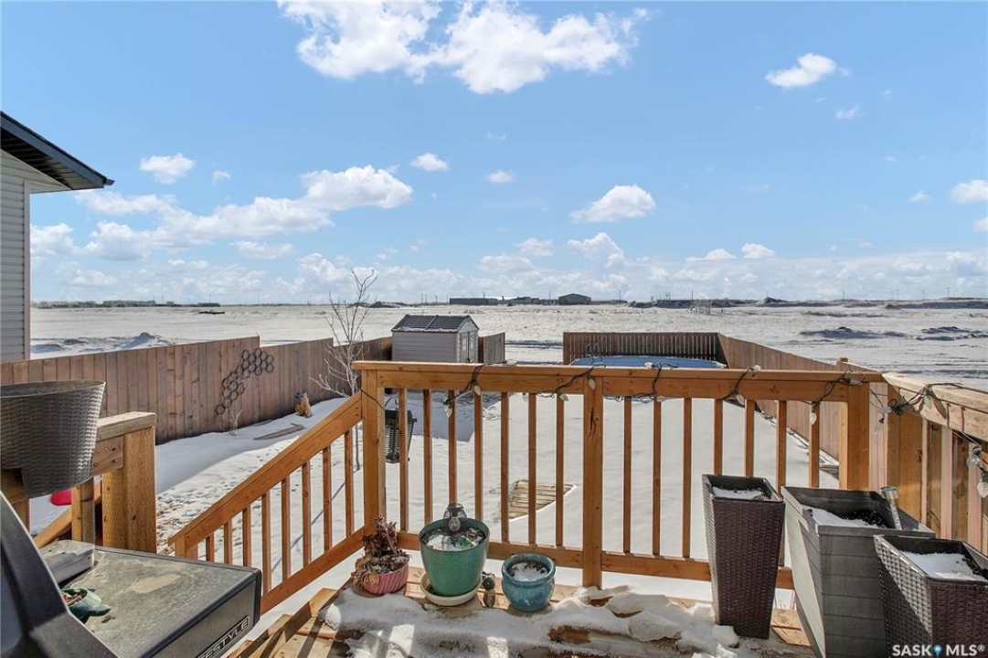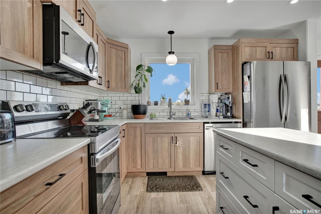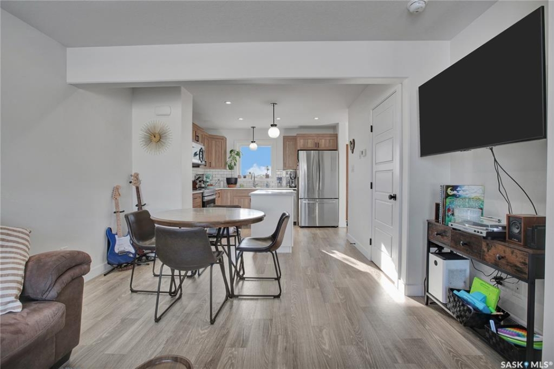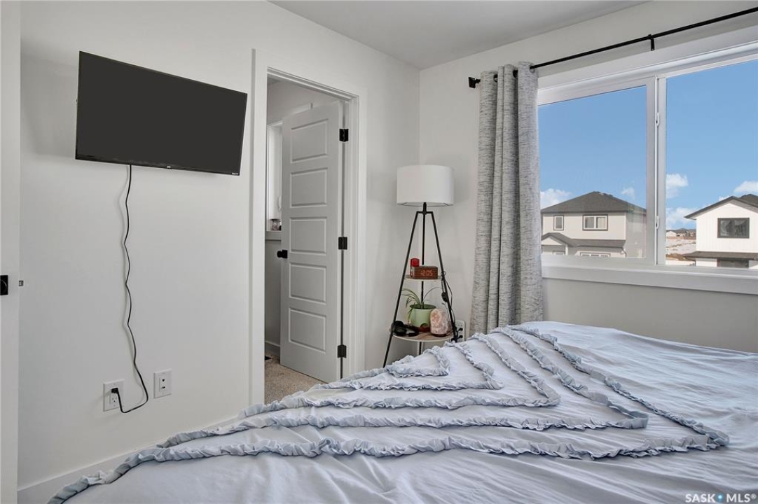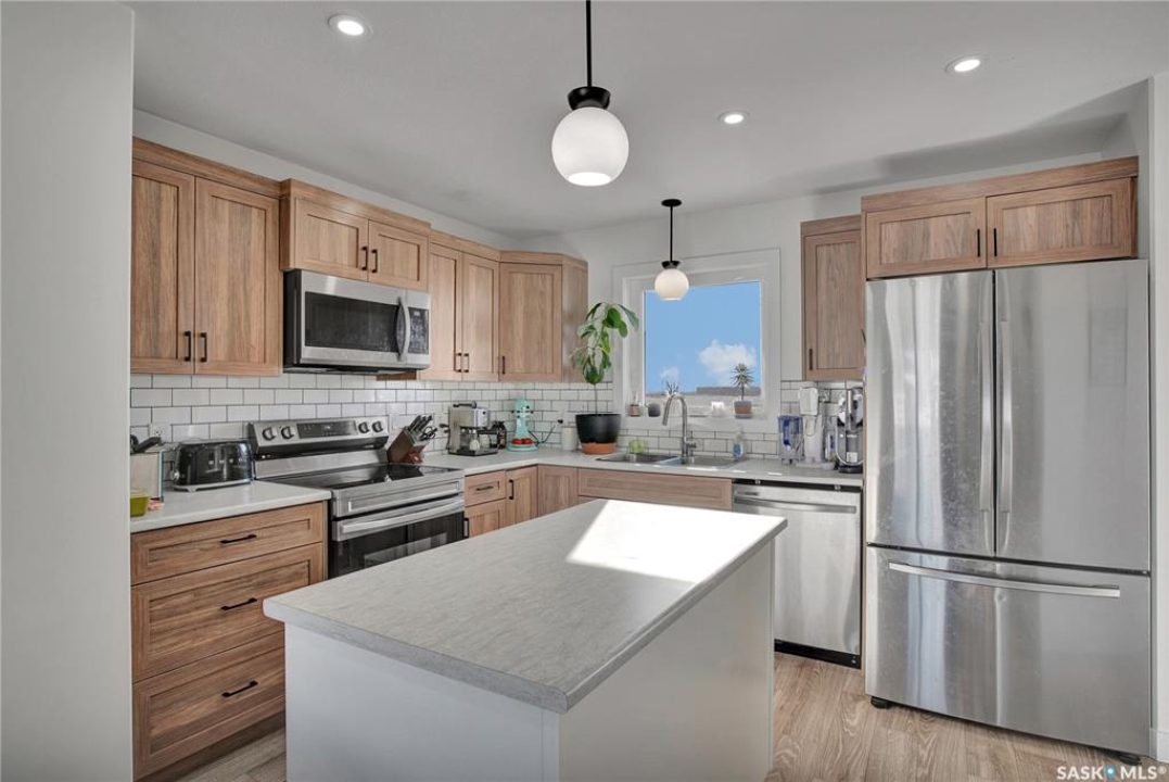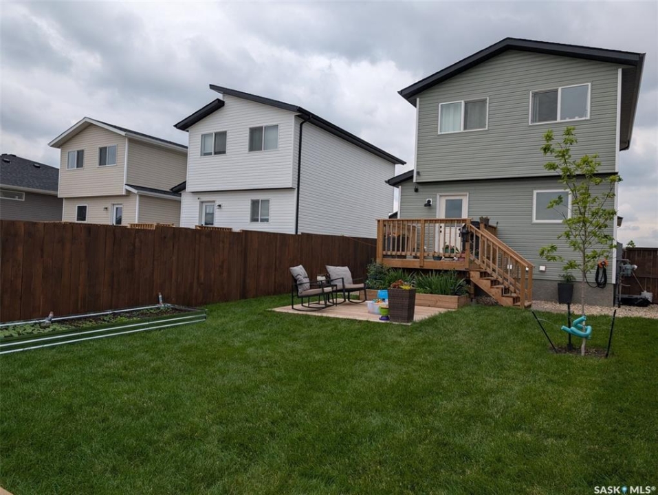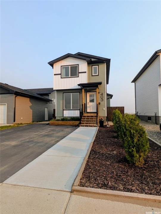 Welcome to 403 Eldorado Street Warman SK, this 2023 built 3 bedroom 1.5 bathroom home is move in ready. The main floor offers an open floor plan, with large windows letting in lots of natural lighting. The beautiful kitchen features ample counter tops space and a bonus island, tile back splash and stainless steel appliances. Back door to deck with south facing yard. Moving to the second level, there are 3 good sized bedrooms, including a primary bedroom with walk in closet, and a full bathroom. The basement is open for development with space for bedroom, family room & bath. The yard is fully developed front and back, fully fenced, garden boxes, patio and a deck. Additional items, central AC, paved driveway garden boxes, lower patio.