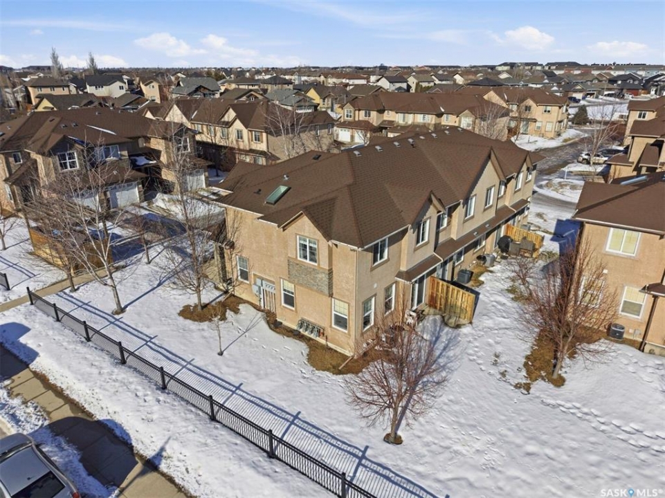 Welcome to Unit 401 – 710 Gordon Road, an exceptional end-unit townhouse ideally positioned in one of the most desirable locations within the complex, in the heart of sought-after Stonebridge. This well-appointed home offers an outstanding opportunity for comfortable and stylish homeownership. Boasting 1,330 sq. ft. of living space, this townhouse features 3 bedrooms and 3 bathrooms, enhanced by extra side windows that overlook Cren Wilson Park and provide access to additional street parking. The single attached garage adds everyday convenience. The main floor showcases a modern open-concept design with hardwood flooring, bright living and dining area, and contemporary kitchen finished with New York-style cabinetry, quartz countertops, stainless steel appliances, stylish backsplash, and ample storage. Large windows offer abundant natural light and pleasant south-east-facing green space views. Upstairs, you'll find three spacious bedrooms, including a generous primary suite with a walk-in closet and a cheater door to the full bathroom featuring a skylight. The additional bedrooms benefit from extra side windows with park views. The fully finished basement offers a spacious family room with laminate flooring, an additional bathroom with tile flooring and tiled shower, plus a separate laundry room, utility room, and storage room finished with durable vinyl flooring. Additional features include central air conditioning, central vacuum, hot water heater (2020), washer & dryer (2022), newer thermostat, Google smart doorbell, and some updated faucets. Ideally located within walking distance to schools, parks, shopping, and all essential amenities, this home truly has it all. Shows 10/10!