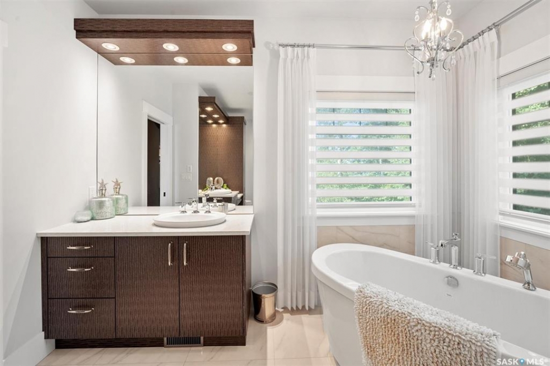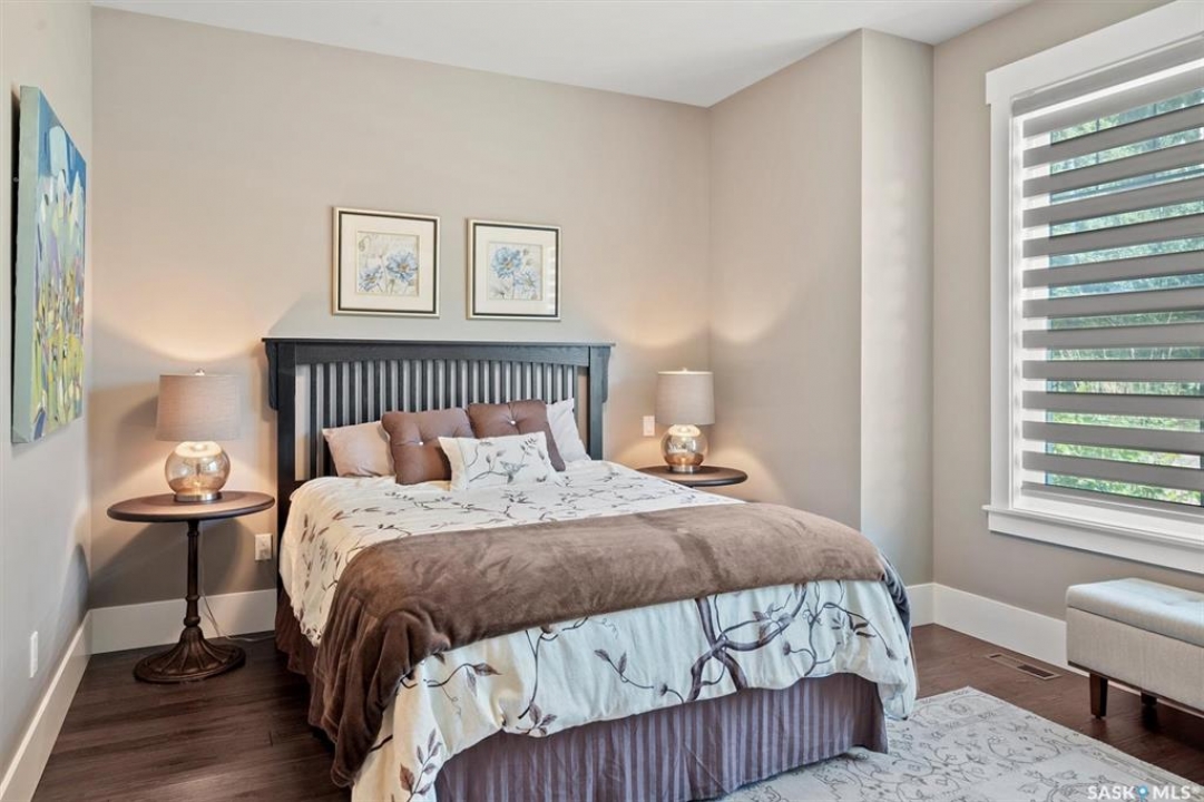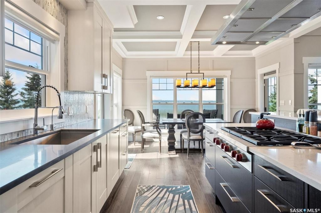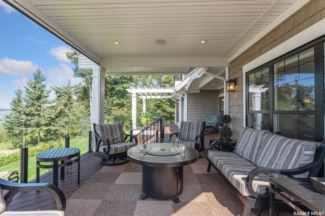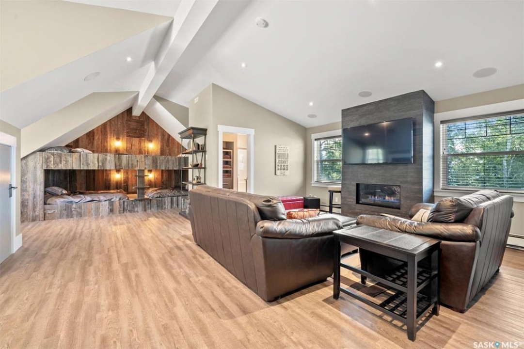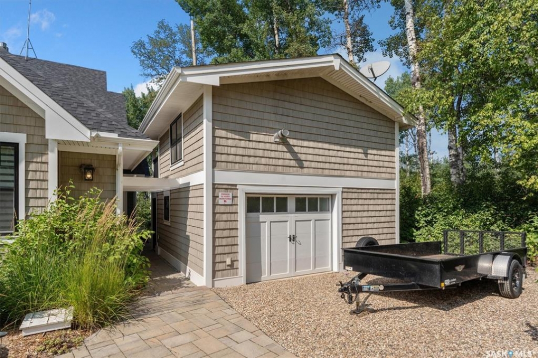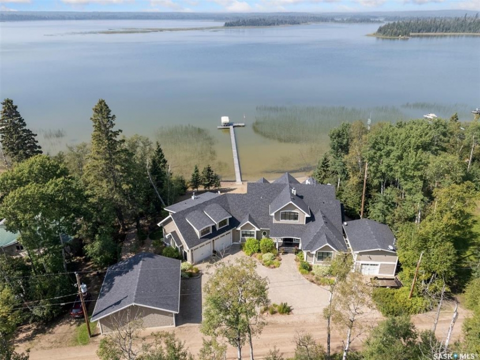 Welcome to 210 Okema Trail, a one-of-a-kind custom-built luxury resort property at Emma Lake, completed in 2015 and set on the exclusive third lake with only 32 homes along its pristine shoreline. Boasting 150 feet of private, sandy lakefront across two expansive lots, this 3,737 sq. ft. two-storey masterpiece is designed for entertaining and family gatherings, comfortably sleeping 17+ guests. The main residence features 4 bedrooms, a home study with a balcony and 4 bathrooms, highlighted by a grand foyer with a double-sided gas fireplace, soaring ceilings, and a family room with stunning panoramic lake views. The family room and dining are all open to the kitchen. The gourmet kitchen is a chef's dream, offering top-tier Miele appliances, Wolf 6-burner gas cooktop, dual dishwashers, steam/convection ovens, a wine fridge, and a walk-through butler's pantry. The luxurious master retreat includes a cozy fireplace, a spa-like ensuite with a soaker tub and steam shower, and a private staircase to a personal retreat with beautiful lake views. Additional features include a heated 1,275 sq. ft. attached garage with a bonus suite sleeping 6 with a large family room and games area as well as a 3 piece bathroom. A separate 400 sq. ft. guest house with living quarters, one bedroom and a bathroom all above the single heated garage. There is also another 3-car detached garage for recreational toys, incredible professionally landscaped yards, all with views of the lake, 800 sq. ft. of compost deck area with glass railings facing the lake as well as beautiful sand beach out front. The property also comes with its own dock. Enjoy this luxury home in every season. Amazing groomed snow mobile trails and ski trails in the winter. Golf, Pickle Ball, groceries and shopping amenities all within 10 minutes. The Prince Albert Airport is located 35 minutes away. This exceptional lakeside property redefines luxury and relaxation—schedule your private tour today!