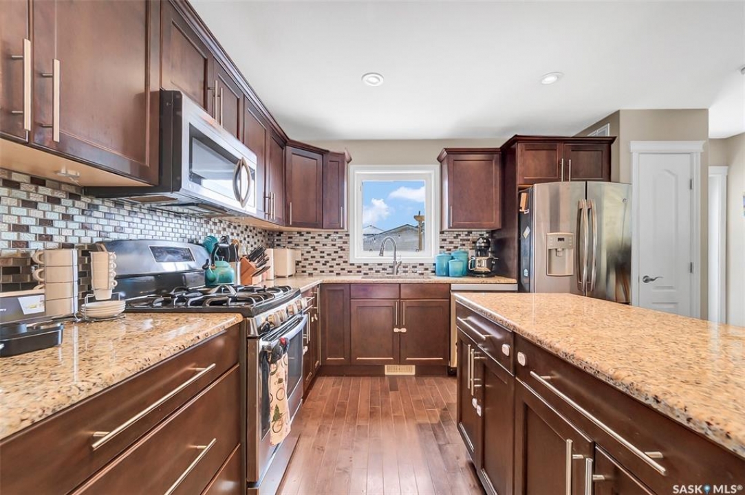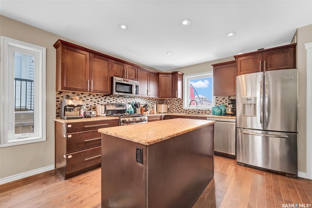 Welcome to this beautifully finished 2-storey home offering space, style, and thoughtful upgrades throughout. Designed with an open-concept layout, the main floor features hardwood flooring and a stunning kitchen complete with soft-close maple cabinetry, granite countertops, a large island, stainless steel dishwasher, water line to the fridge, and eye-catching glass tile backsplash—perfect for everyday living and entertaining. Upstairs you'll find three spacious bedrooms, including a primary retreat with a walk-in closet and private 4-piece ensuite. An additional full bathroom completes the upper level. The fully developed basement adds incredible versatility with a fourth bedroom, full bathroom, and a large family room featuring a wet bar, built-in wine cooler, and full-size upright freezer—ideal for hosting or relaxing with family. Extra touches such as closet organizers in secondary bedrooms, upgraded fixtures, a fiberglass stained front door, Central A/C and triple-pane windows (including a triple-pane garden door with built-in mini blinds) enhance both function and efficiency. When built, the basement foundation was reinforced with additional thickness and rebar for added peace of mind. Enjoy morning coffee on the inviting front porch or unwind on the rear deck overlooking the backyard garden area. Underground sprinklers service both front and back yards, and fragrant lilac bushes add charm and curb appeal in the spring. A 24x24 detached garage provides ample parking and storage. Located in a welcoming neighbourhood close to schools, daycares, and everyday amenities, this home offers comfort, quality, and convenience all in one. Book your showing TODAY!!!