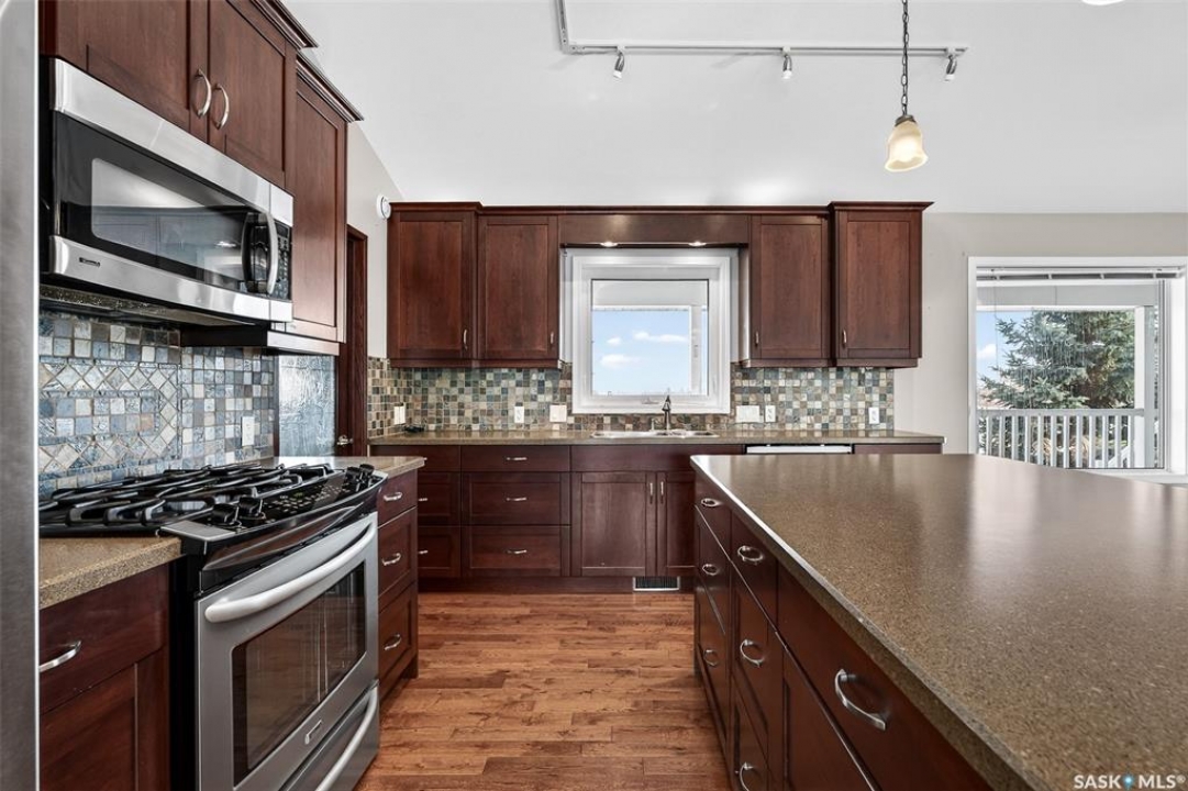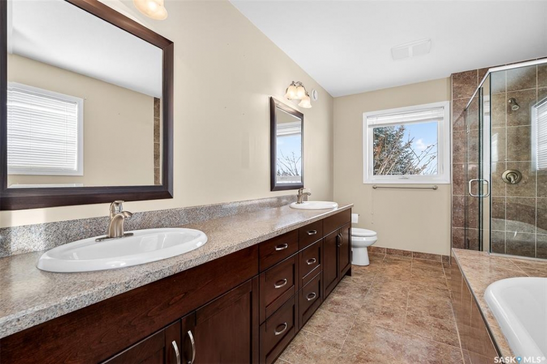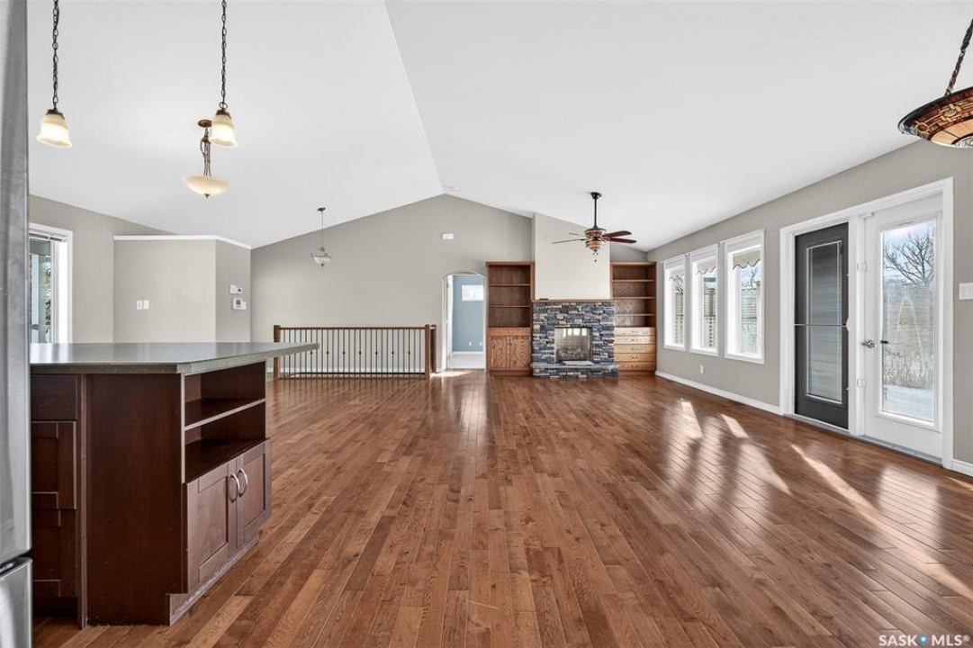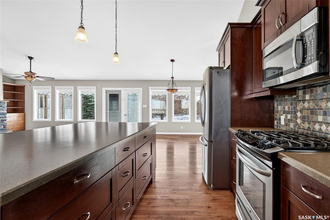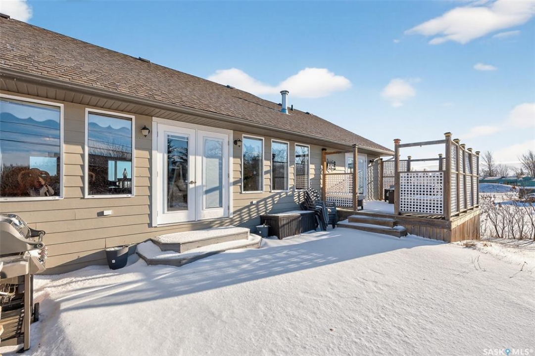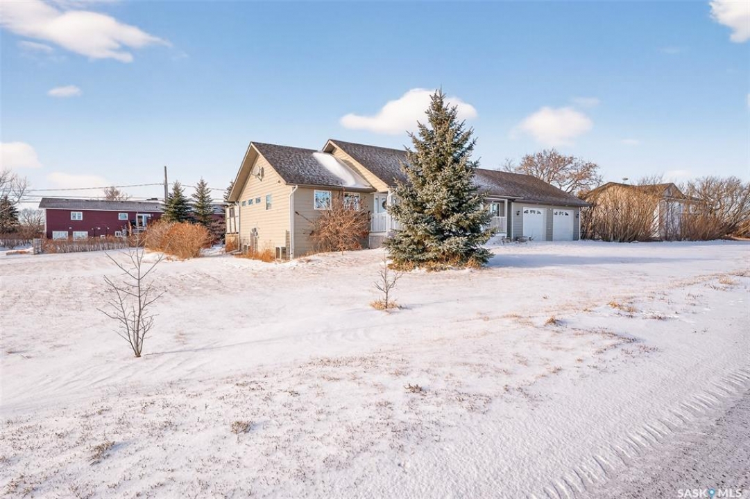 Welcome to country living on the edge of the Village of Mortlach! This home is East facing with a sunrise view of pasture & open fields from your front veranda while you sip your morning coffee! This spacious Bungalow sits on a large lot & just feels like “home”. The main Living Area is open concept & is anchored with a gas fireplace on one wall & stunning Kitchen at the opposite end. The Kitchen is well appointed with ample cabinetry, large island, gas range & a walk-in Pantry (noted in room sizes as “other”). The space allows room for a formal Dining Area along the wall of windows & space for a breakfast nook overlooking the front deck. At one end of the main floor is the Primary Suite with garden doors to separate deck, a walk-in closet & Ensuite with separate shower, jetted tub & heated floors. At the opposite end of the home, you will find a Mudroom with 2 pc Bath & Laundry adjacent to the attached heated double Garage (man doors at 2 sides for easy access to a fenced area perfect for dog run). The lower level is finished with options for more living space with a Family Room, 2 Bedrooms, 4 pc Bath & 3 other rooms that could be utilized as office, craft/hobby space, home gym or whatever suits your needs best! You will love the in-floor heat in basement & garage! Outside is a shed that would work well for a potting shed or playhouse! Come discover what this home has to offer along with the amenities the Village of Mortlach provides including K-12 school (steps away!), post office, rink, spray park & golf course along with small town hospitality!