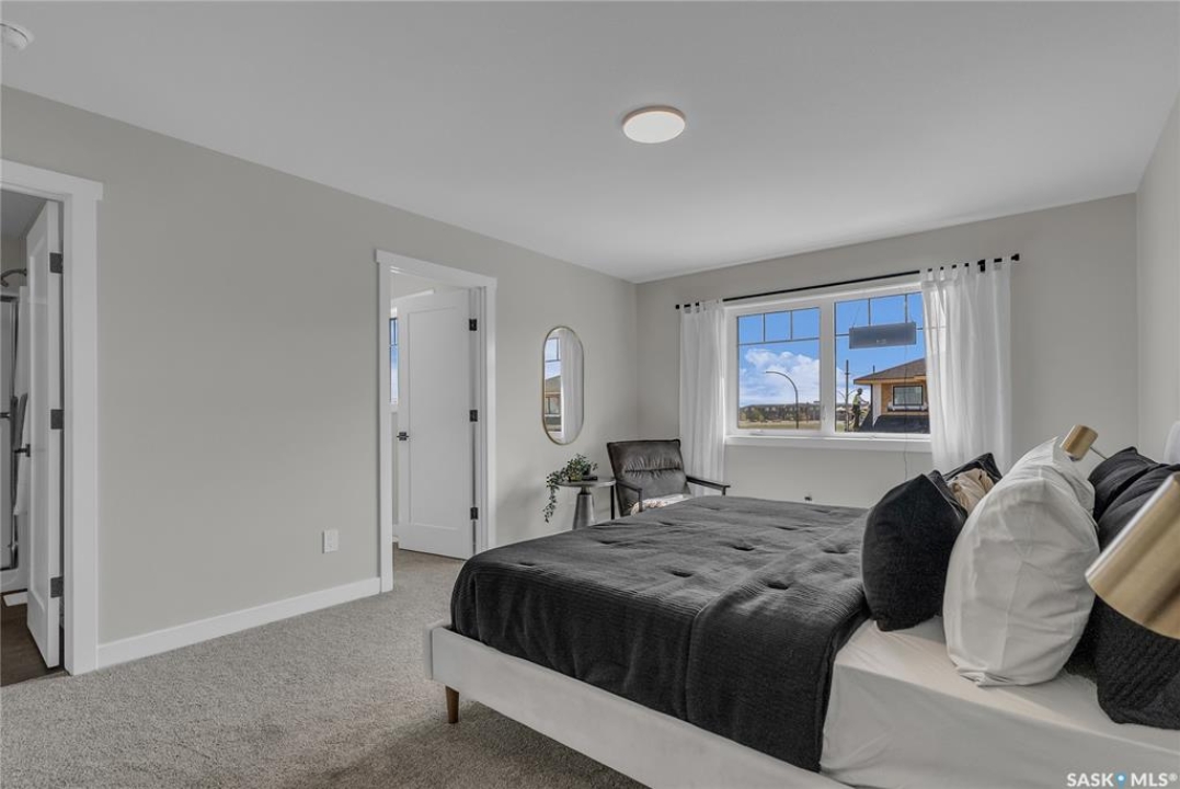 SHOWHOME now open! 419-155 McFaull Way. Welcome to Wilson's Ranch — where modern design meets everyday functionality. This well-crafted 3-bedroom, 2.5-bath semi-detached home (Duplex B) offers an open-concept layout ideal for both daily living and entertaining. Highlights include a dedicated podcast and home office space, a spacious primary suite with a walk-in closet and ensuite, double attached garage and the convenience of an upper-level laundry room. The stylish kitchen flows effortlessly into the dining and living areas, creating a bright, inviting atmosphere perfect for gathering with family and friends. Enjoy a fully fenced and landscaped backyard and deck with privacy wall. Situated just steps from Wilsons Lifestyle Centre, The Keg Steakhouse + Bar, Save-On-Foods, Landmark Cinemas, and Motion Fitness, this location offers unbeatable access to essential amenities. With nearby parks, future schools, and public transit, it's a community designed to grow with you. All North Prairie homes are protected under the Saskatchewan Home Warranty Program. PST & GST included with rebate to builder. Photos are for reference only and may not reflect the exact unit.