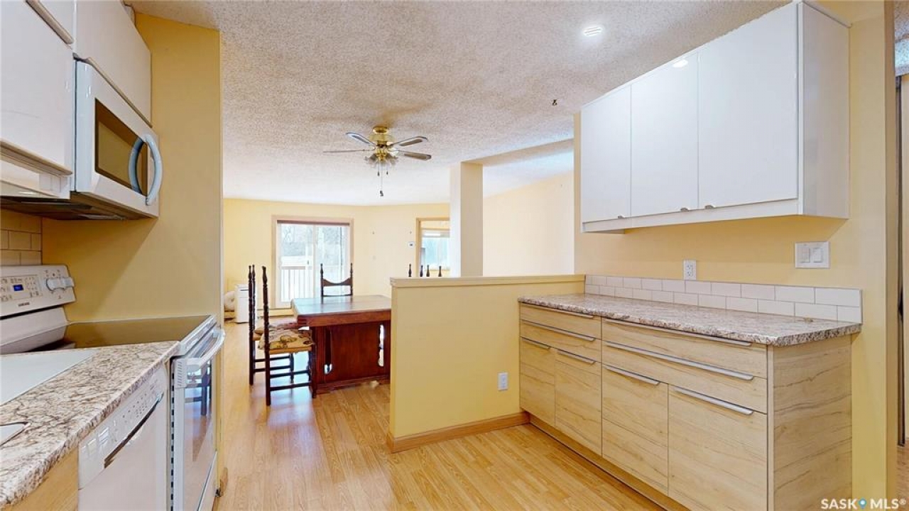 What a great find in Cathedral! This is a bright south facing large one bedroom one bathroom condo. The gorgeous updated IKEA kitchen is a - Wow - an eye catcher! Featuring attractive counter tops, under cabinet lighting, and amazing back splash; it is a winner as far as kitchens go. Open to the dining and living room, you immediately feel right at home. Off of the living room is a good sized balcony – a great place to relax and enjoy the world from. Also off the living room is nice bright office; which you can use how you wish – work, exercise, crafts, or whatever your lifestyle needs. This room opens into the primary bedroom which is also a great size. Then there is the nicely updated 4 pce bath. Finishing off the home, is the laundry and storage room. The extra storage is wonderful to have. Plus there is more storage in the parkade. The complex also includes an amenities room conveniently located just down the hall from this unit – ideal for gatherings and extra space. Also included is a parking stall right outside the home as well as visitor parking for guests. This is a sweet home in a great location – book your appointment soon.