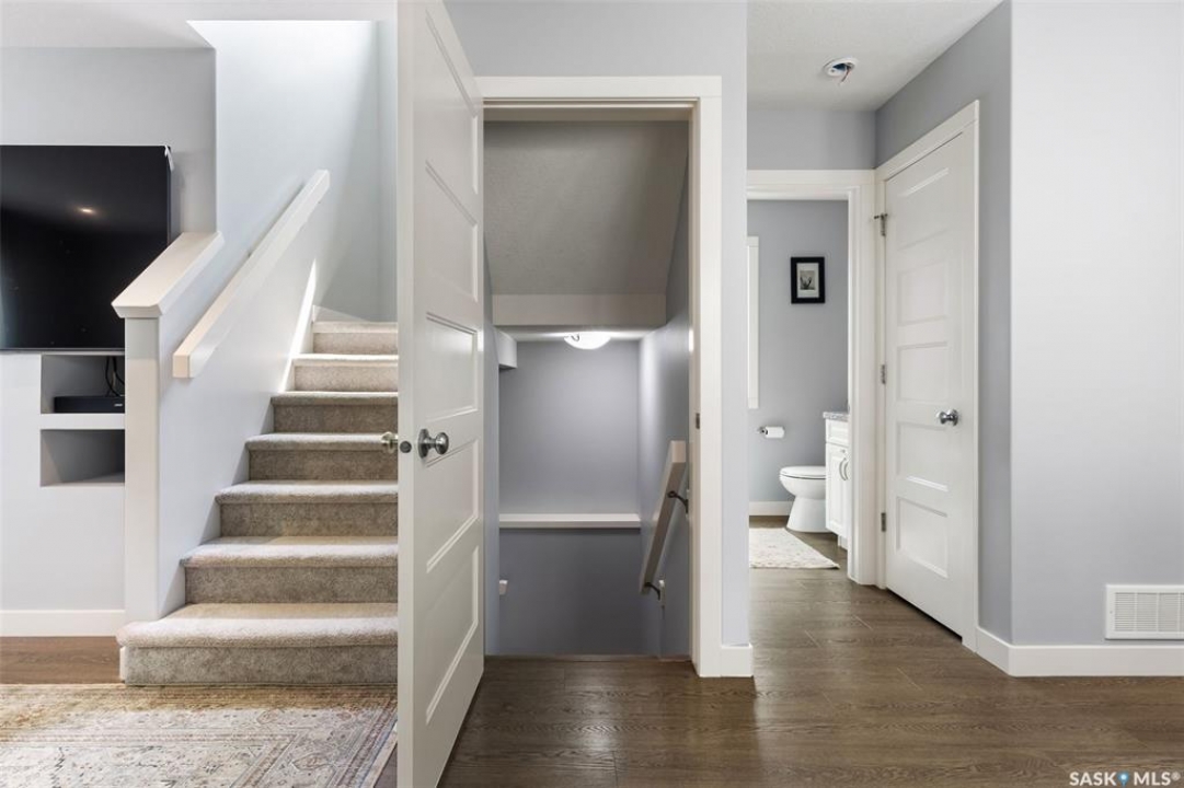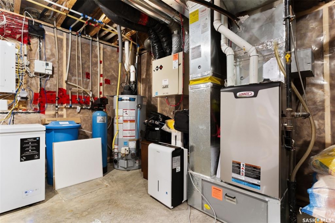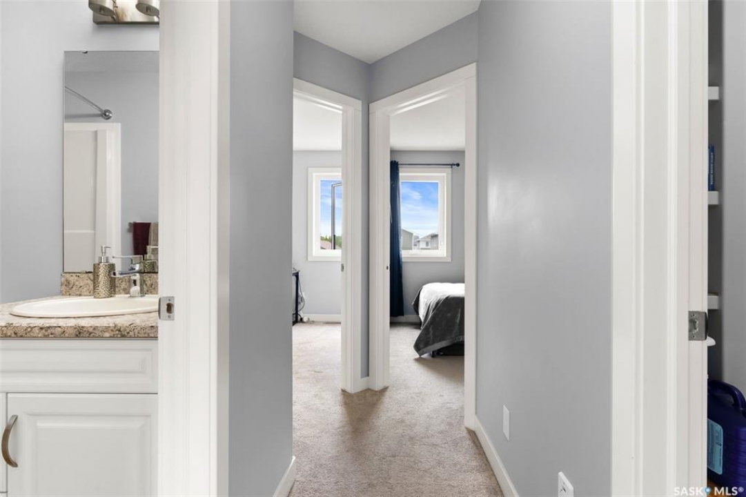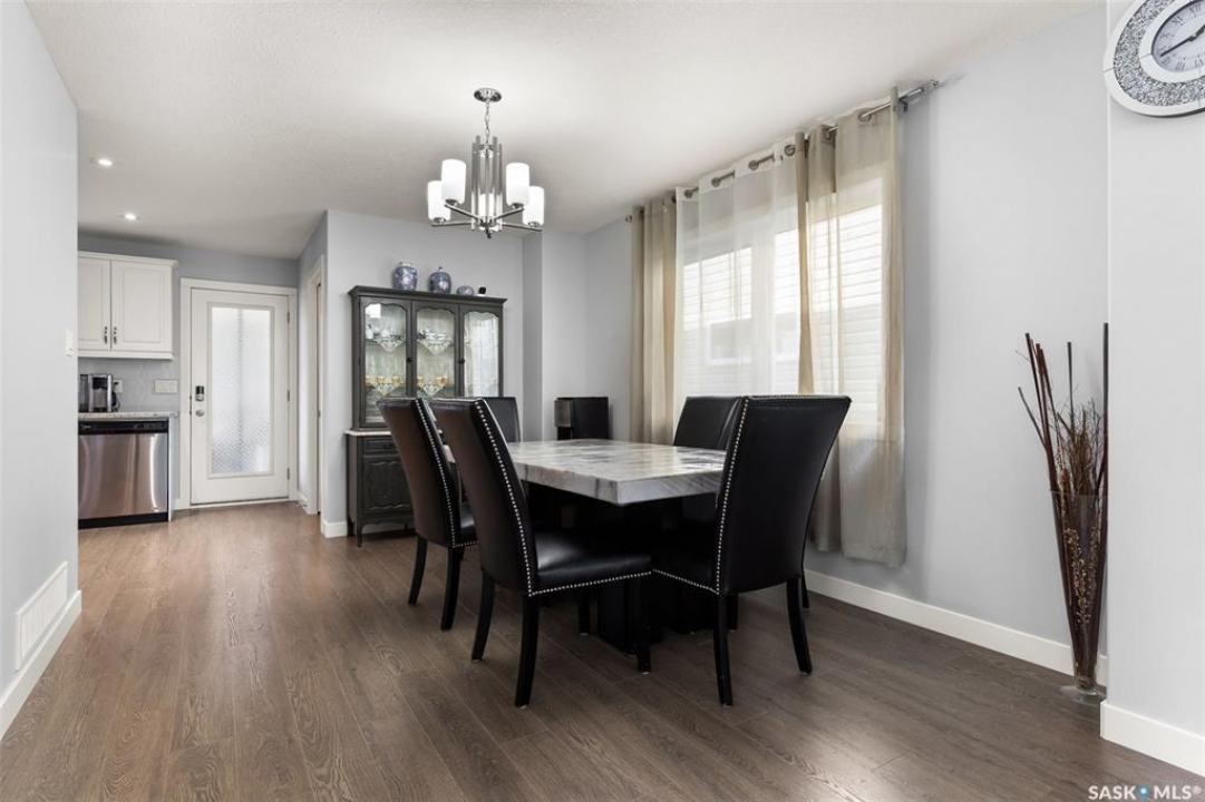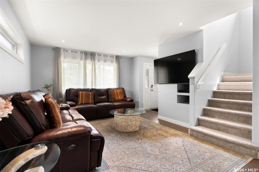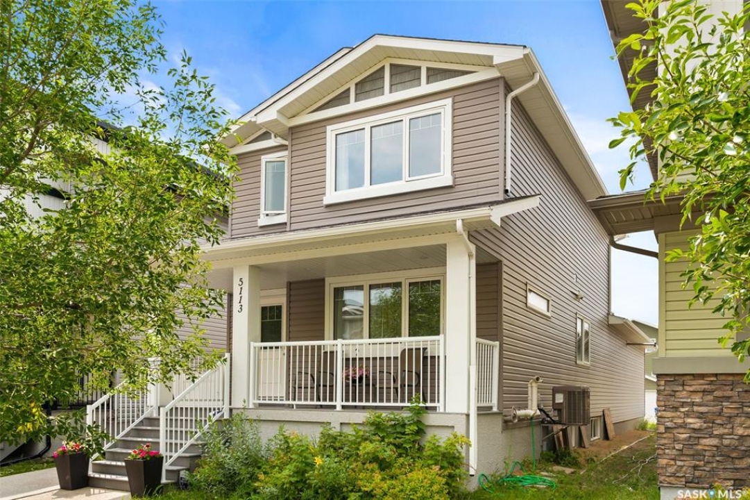 Welcome to 5113 Crane Crescent, a beautifully maintained two-storey home located in the heart of Harbour Landing—one of Regina's most vibrant and family-friendly communities. Offering 1,454 sq ft of thoughtfully designed living space, this home exudes pride of ownership with a bright, stylish, and highly functional layout perfect for modern living. The main floor showcases rich laminate flooring, a welcoming living room with a custom built-in TV nook, and front-facing windows that fill the space with warm natural light. A convenient 2-piece powder room adds everyday practicality. The dining area is ideal for entertaining and flows seamlessly into a crisp white kitchen featuring stainless steel appliances, tile backsplash, walk-in pantry, and an abundance of cabinetry for storage. A valuable upgrade to this home is the added side entrance, providing excellent flexibility for future development potential or enhanced privacy and accessibility. Upstairs, you'll find three comfortable bedrooms, including a spacious primary suite complete with a walk-in closet and 4-piece ensuite, along with a full main bath and the convenience of second-floor laundry. The fully developed basement expands your living space with a cozy recreation room, a fourth bedroom, and an additional 4-piece bathroom—perfect for guests, teens, or extended family. Step outside to enjoy a private covered deck, creating the perfect outdoor retreat for relaxing or hosting. A double attached garage completes this exceptional property. Ideally situated near parks, walking paths, schools, and all south-end amenities, this home offers the perfect blend of comfort, style, and location in sought-after Harbour Landing.