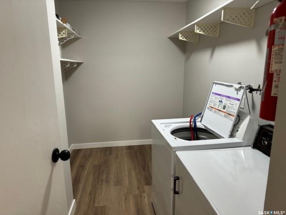 Look no further! This beautifully updated main-floor condo is move-in ready and ideal for those seeking stair-free living. The entire unit was recently repainted, including doors, cabinets, and baseboards, creating a clean and modern feel throughout. Brand-new high-quality waterproof laminate flooring has been installed, along with a new toilet, a stylish lighted mirror, and updated light fixtures. Enjoy the convenience of in-suite laundry with the washer and dryer included, plus all appliances as part of the package. New dryer and stove recently. Additional storage is located on the west end of the private patio. This well-maintained adult, non-smoking complex offers peace of mind and a secure building. Condo fees are just $225 per month and include heat and water (owner pays power). Property taxes are approximately $180 per month. One electrified parking stall is included and is conveniently located directly outside the east entrance. Why rent when you can own? With payments potentially lower than rent, this is an excellent opportunity for affordable homeownership!
