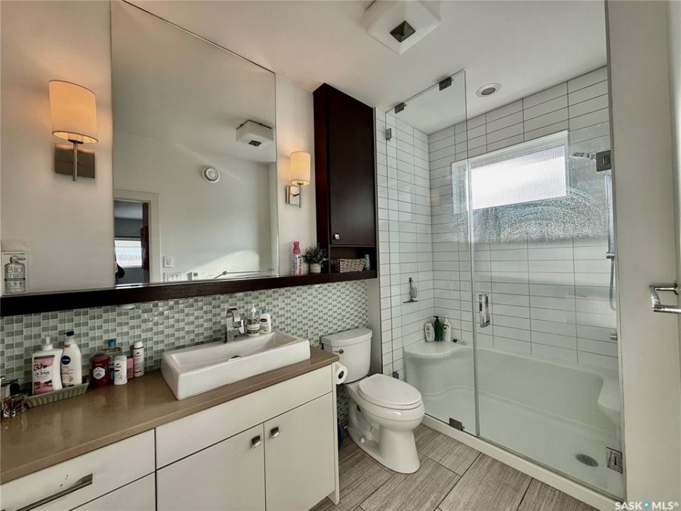 Welcome to 926 Wilkins Court Saskatoon SK, this 1,365 sq ft bi-level with open concept floor plan.The entryway is large and inviting and leads to the double attached and heated garage. large foyer welcomes you in, the kitchen with quartz countertops with large prep island, tile backsplash, crisp white cabinets and upgraded stainless appliances including an induction cooktop, convection/speed microwave, warming drawer, convection wall oven, built-in dishwasher, and fridge. The primary bedroom with big walk in closet with built-in organizers and ensuite bath with a tile shower and added storage. An additional in the hallway for your computer. Basement with family room with a gas fireplace west facing windows, laundry room with cabinetry and laundry sink. Two additional bedrooms, a 4 piece bathroom, and plenty of storage complete the space. Outside is fully landscaped and ready for you to enjoy! Upgrades include solid core doors, pacific white oak hardwood floors, heated bathroom tile floors, sound system throughout, and 9' ceilings upstairs and down.