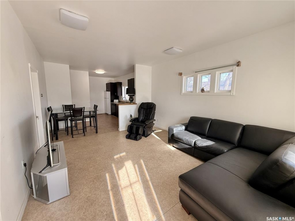 This 1929 raised bungalow with a basement suite offers a great opportunity for homeowners or investors looking for flexibility and income potential. Live on the main floor while the lower suite helps offset your mortgage, or add this property to your investment portfolio. In past years, the home has seen several important updates, including metal roofing and siding, PVC windows, mechanical improvements, and (seller states) an updated ICF basement, adding durability and efficiency. The main level features an open-concept living, dining, and kitchen area with updated cabinetry, granite countertops, refrigerator, gas stove, dishwasher, and durable vinyl tile flooring through much of the space. There are two bedrooms plus an updated four-piece bathroom with convenient in-bath laundry. The lower-level suite offers good natural light with large windows and an open layout. It includes an updated kitchen with granite countertops, stainless steel appliances, vinyl flooring, a den, a three-piece bathroom, plus an energy-efficient furnace (less than 10 years old) and newer hot water heater. Situated on a generous 52.5' x 197' lot, the property also features a detached 16' x 18.5' shed, ideal for storage, hobbies, or workshop use. Located directly across from the Herbert Integrated Health Facility and close to local amenities including a skating rink, shopping, and everyday services, this property offers affordable small-town living with practical upside. Great potential, key updates, and income possibilities — a smart buy in a welcoming community.