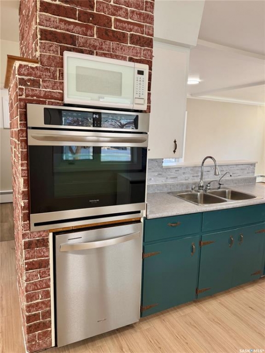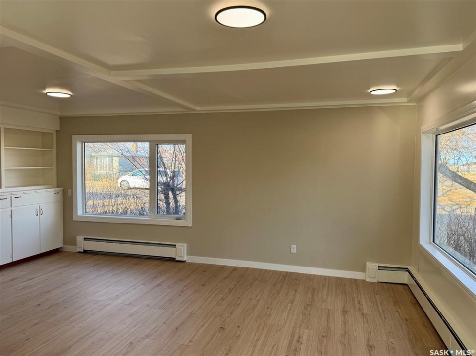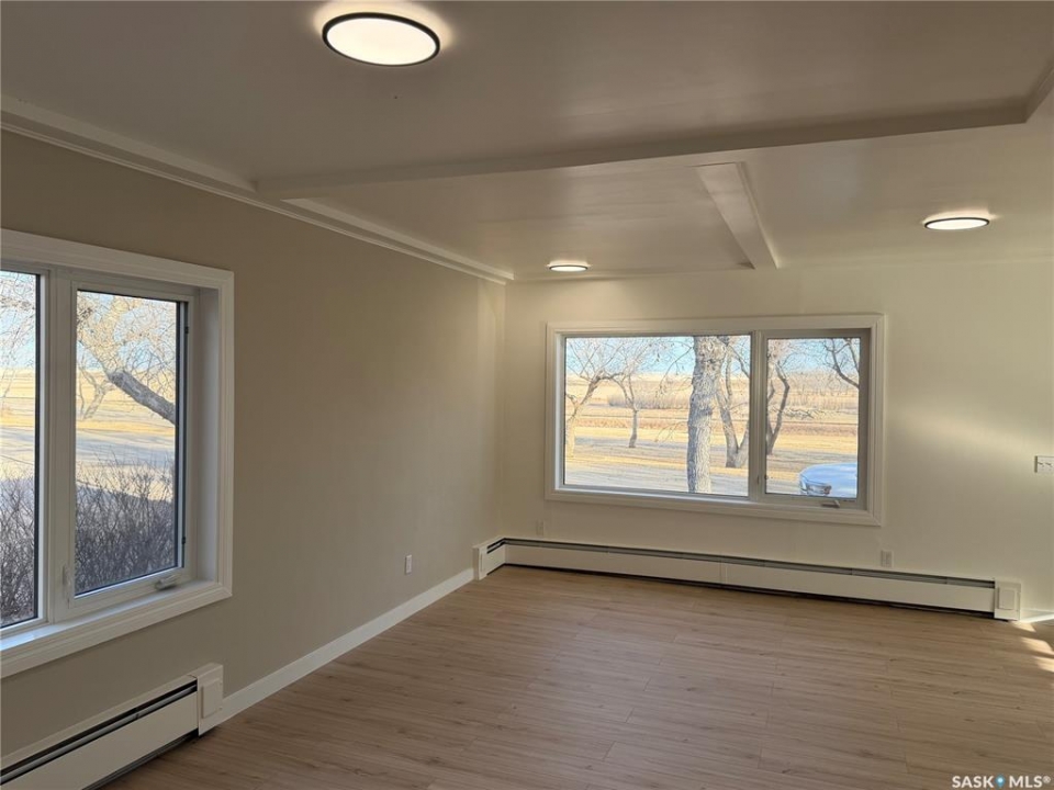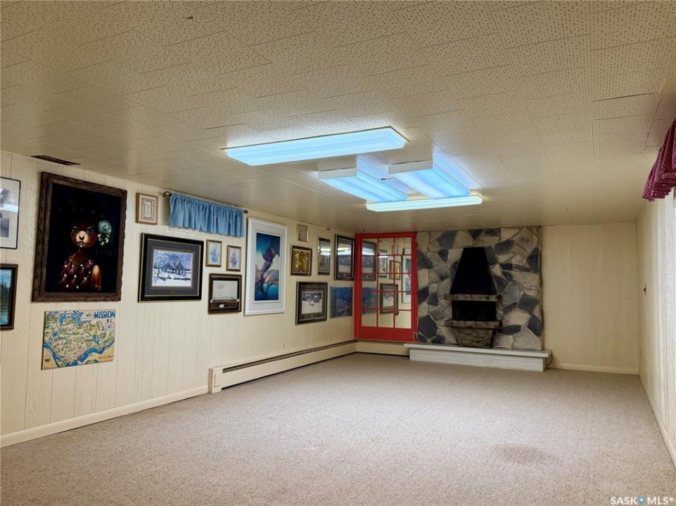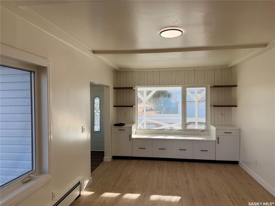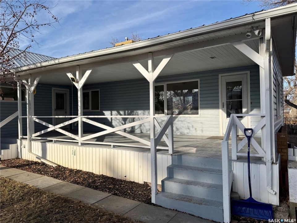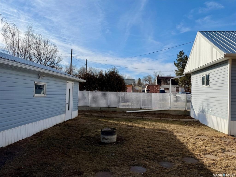 Imagine a life where the town's best amenities are your literal front yard. Perfectly situated directly across from the town golf course, swimming pool, and park, this home offers an unbeatable lifestyle for active families and hobbyists alike. Inside, you're greeted by a bright, open-concept main floor flooded with natural light thanks to updated PVC windows. The seamless flow from the kitchen—complete with a full appliance package (fridge, stove, microwave, and hood fan)—into the living room ensures you never miss a moment with family while cooking. The main floor features three spacious bedrooms and a full 4-piece bathroom. The living space extends to the basement, which boasts a huge family room perfect for movie nights or a play area, along with the convenience of a second bathroom. Rest easy knowing the water heater was just replaced in 2025 and the home features reliable, cozy boiler heat. The outdoor space is a true highlight: step out onto the large, beautiful deck—the perfect spot to sit and enjoy the peaceful nights while overlooking your private, fully enclosed yard. The fence provides a safe haven for kids or pets, and the property is rounded out by a single detached garage. Your quiet small-town dream starts here!