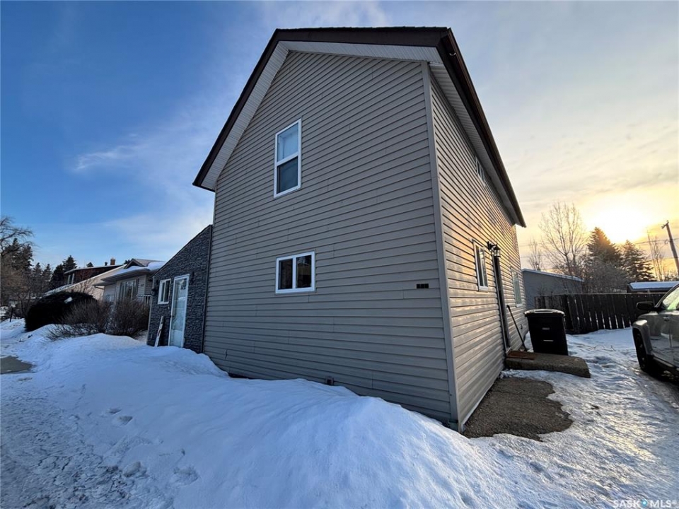 Charming character meets modern convenience in this beautifully updated 1 �-storey home located in the welcoming community of Bruno. Originally built in 1910, this property has seen numerous upgrades inside and out, including a fully refreshed exterior with updated windows, offering peace of mind while preserving timeless appeal. Set on a generous 50 × 132 lot, the home features a newer constructed 23 × 26 detached garage complete with a large overhead door, full insulation, and a 220-volt plug—perfect for hobbyists, storage, or year-round parking. The spacious backyard provides plenty of room to relax, garden, or entertain. Inside, you'll find a bright open-concept kitchen and dining area highlighted by newer cabinetry and sleek stainless steel appliances. The inviting living room overlooks the backyard and connects conveniently to the primary bedroom. A full 4-piece bathroom along with a large mudroom and laundry area complete the functional main floor layout. Upstairs offers two additional spacious bedrooms plus an oversized storage room or walk-in closet for added flexibility. The basement houses mechanical equipment and provides excellent storage space. Enjoy small-town living with easy access to nearby amenities—just 20 minutes to Humboldt and 45 minutes to Saskatoon—making this location ideal for commuters seeking quiet surroundings with convenient highway travel. A wonderful opportunity to own a move-in-ready home full of character, updates, and practical features in a peaceful Saskatchewan community.