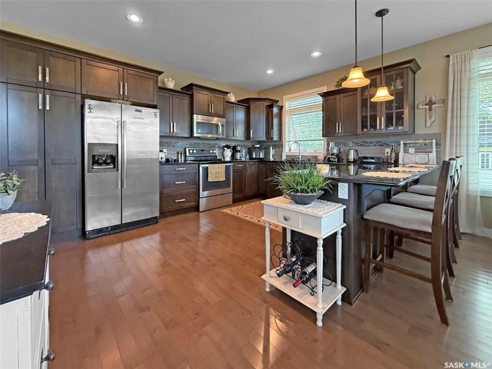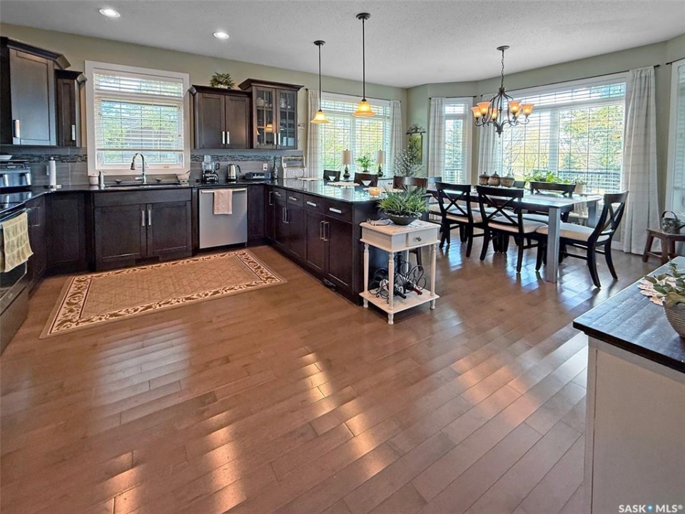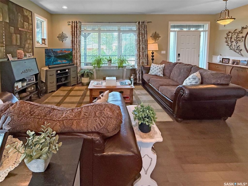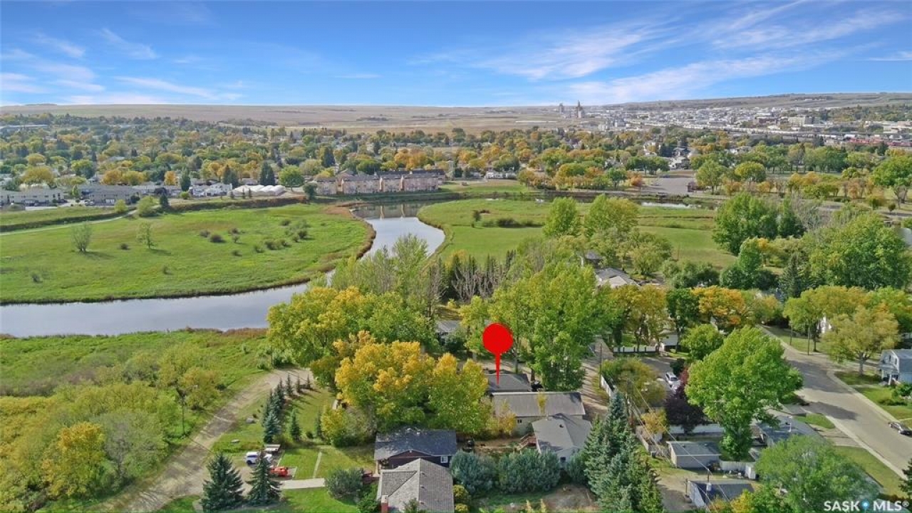 Set on four city lots at the edge of Swift Current, this exceptional custom-built bungalow delivers the privacy and “acreage-in-the-city” feel you've been dreaming of—without sacrificing proximity to amenities. Tucked into a mature shelter belt and overlooking the creek and open field beyond, the setting is tranquil and secluded, yet you're just steps to walking paths, tennis courts, and minutes to downtown. Spanning 1,709 sq. ft., this luxurious home was designed by a contractor as their primary residence, with quality evident throughout. Inside, 9' ceilings, oversized windows, hardwood flooring, and pot lights create an elevated, airy atmosphere. The kitchen is a standout—granite countertops, an inviting sit-up island, and bright east-facing windows make it as functional as it is beautiful: truly a kitchen “for her.” The dining area is wrapped in windows with serene yard views, flowing seamlessly into the spacious living room. You'll also appreciate the main-floor laundry, plus a discreet 2-piece powder room. Three main-floor bedrooms include a generous primary suite, with a walk-in closet and ensuite. The second main floor bedroom also houses a walk-in closet and en suite, both rooms enhanced with added insulation for exceptional privacy. Downstairs offers a large flex space ideal for a gym or games area, a spacious family room, two additional bedrooms with large windows, and a full bath with tiled walk-in shower.For him, the parking and shop space are simply unmatched: a 26' x 26' heated, insulated attached garage and an incredible 30' x 50' heated shop (2014) with 7-vehicle capacity, 12' ceilings, tinned interior, washroom, kitchenette/man-cave. Outdoors, enjoy sitting areas on three sides, two substantially covered decks, underground sprinklers, additional asphalt parking, and peace of mind with optimal grading—raised above regulation. Subdivision potential into two lots adds even more value to this rare offering. Call to request the detailed information pkg