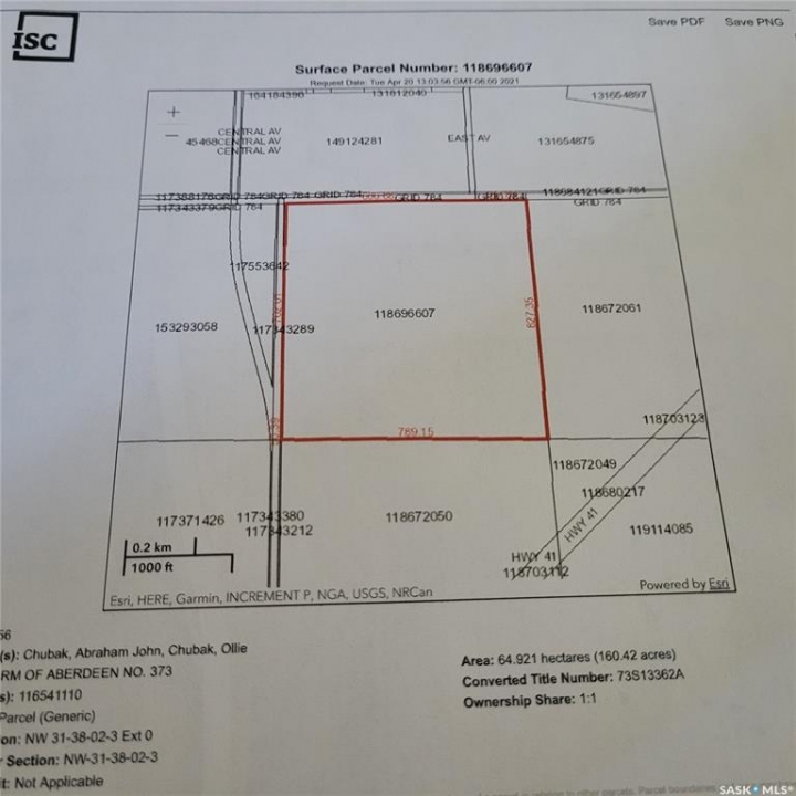 153.84 Acres located at Aberdeen Sask. Features a 1910 Sq. Ft. Bungalow with modern appliances and several custom features. The home is on City sourced water and has Gas heat. There is a large shop and several workshops and an older Barn suitable for horses. There are several hopper Bottom bins and a Park like setting with lots of space for RV"s and rec vehicles.