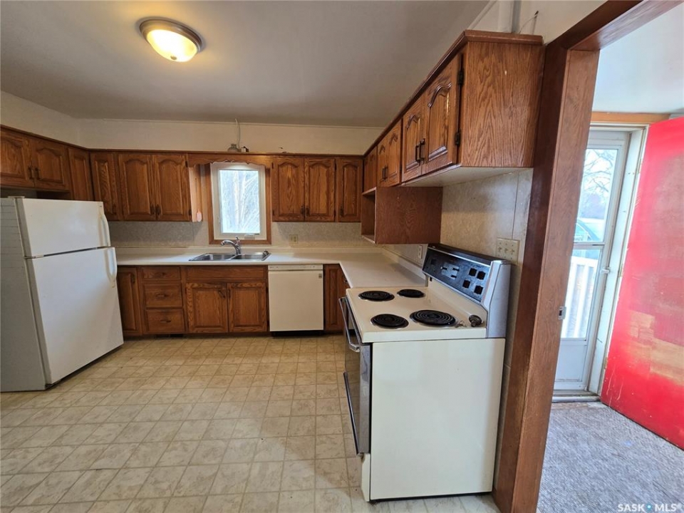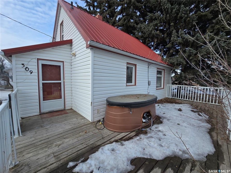 309 Poplar Street, Wolseley is an opportunity to become a home owner at an affordable price. Step in to home ownership in this 1940 - one and half storey home with 3 levels of living and a single detached garage. This beauty provides a total of 3 bedrooms and 2 baths. Main level has 2 porches, main floor laundry/ 4 piece bath, a cute kitchen /dining, small but cozy living room and the primary bedroom. Find hardwood floors in the living room and 2nd level. 2 nd level consists of 1 large bedroom and a small room that could be used for many purposes. Basement will "surprise" you with a large rec space and a small wet bar, a 2 piece bathroom and storage. Assets- new chain link fence, sunny spacious deck, past renos include extra insulation under the vinyl siding, vinyl windows, metal roof, HE furnace. Take a look quick , this property will not last long on the market.
