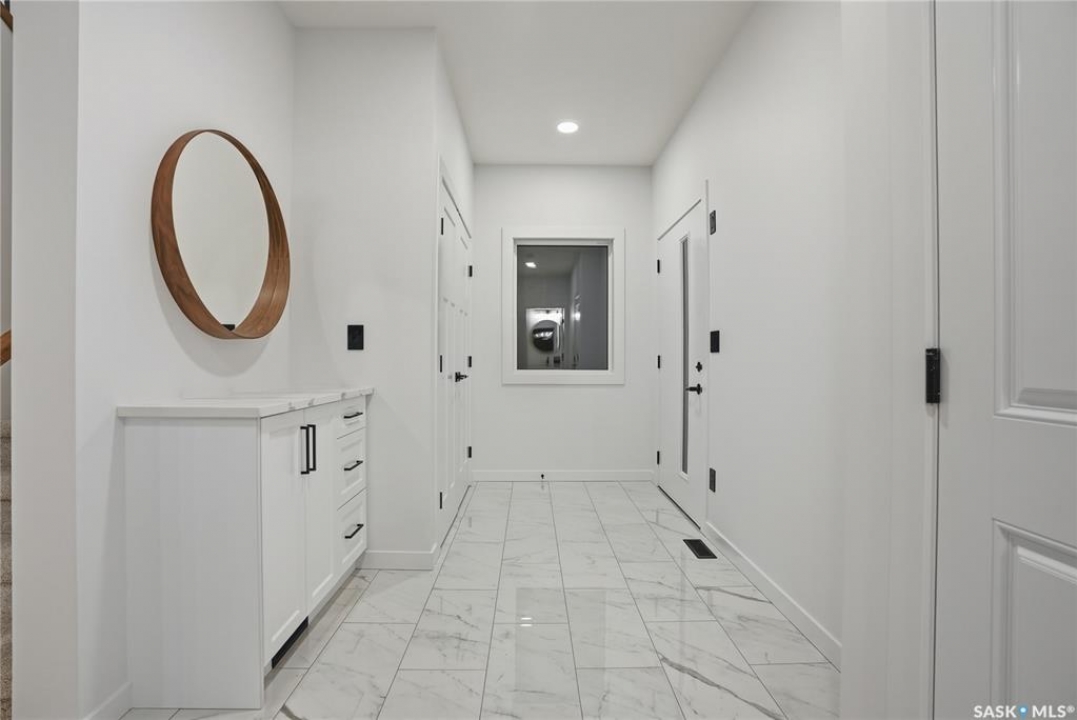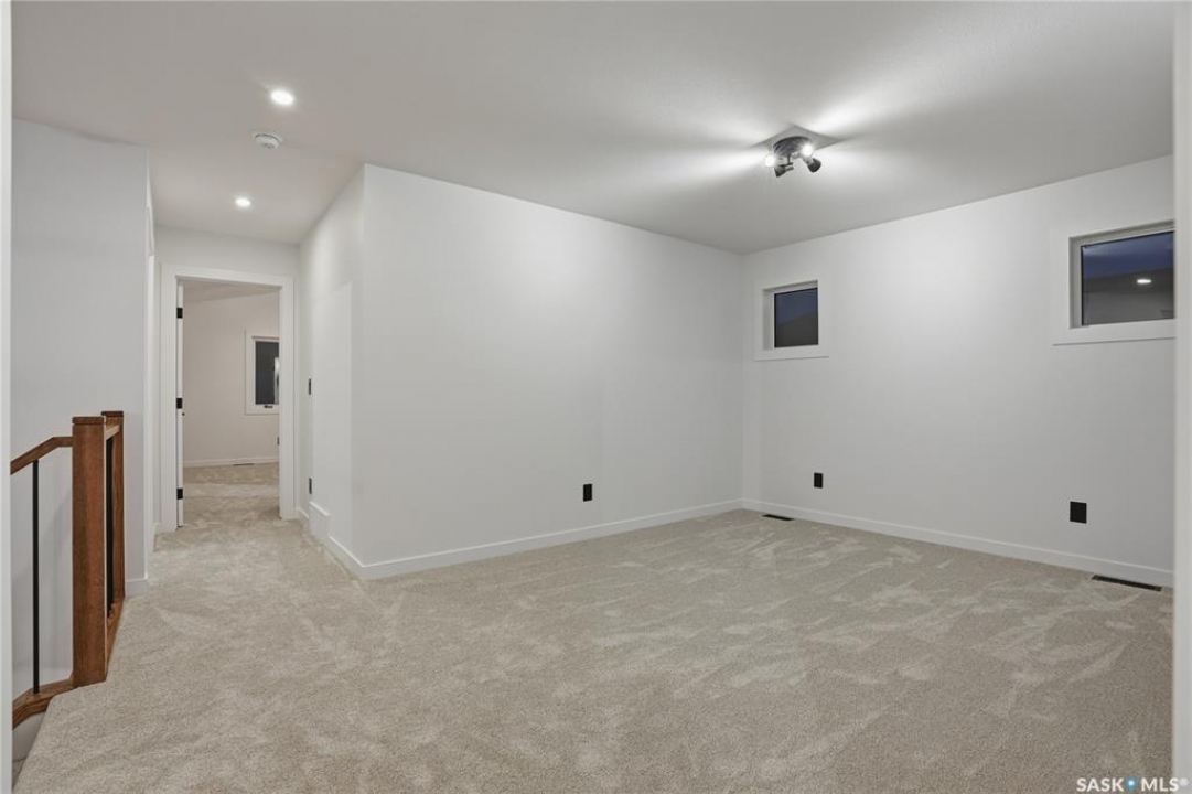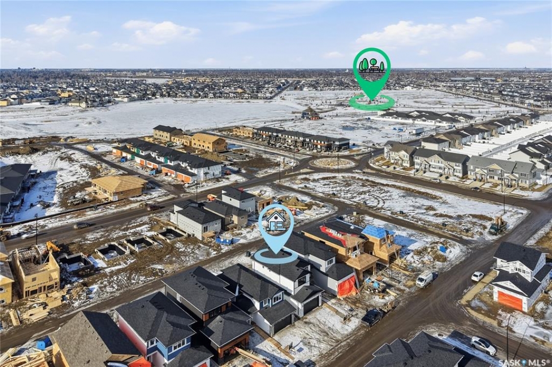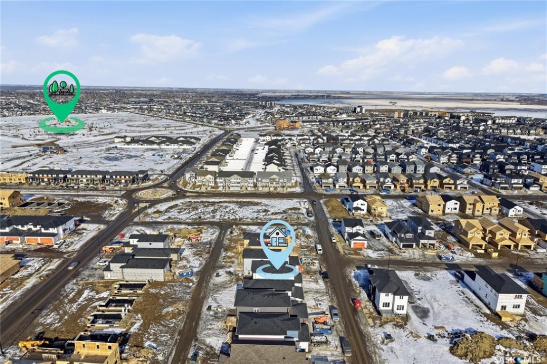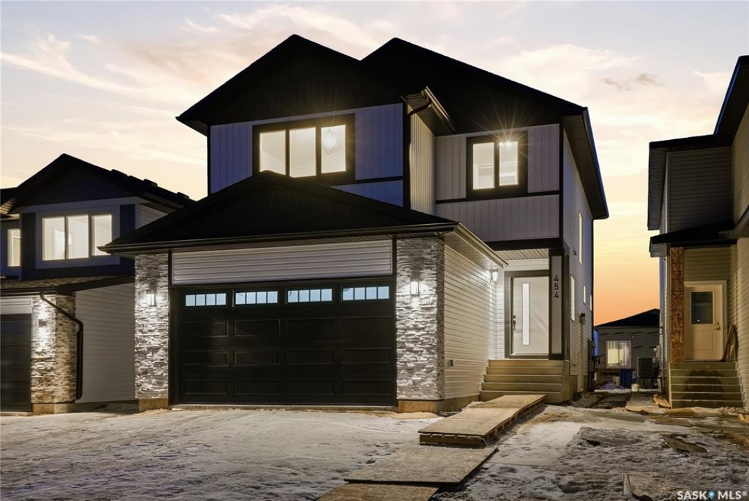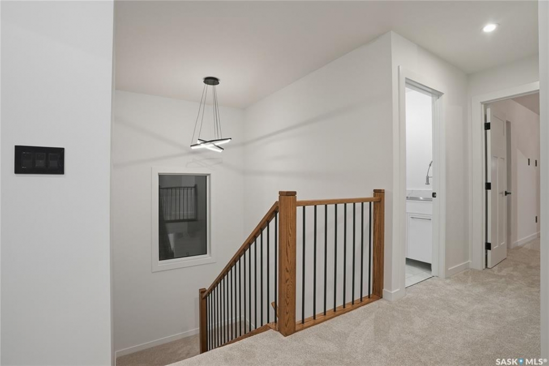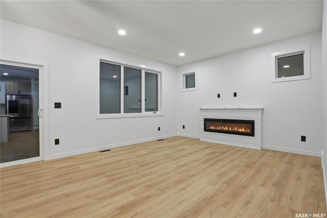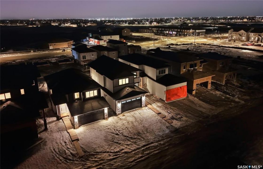 Welcome to refined living in the prestigious community of Brighton, one of Saskatoon's most desirable and architecturally stunning neighbourhoods. This impeccably crafted 1,875 square foot executive two-storey home offers sophisticated design, premium finishes, and exceptional investment potential. The main level features an elegant open-concept layout anchored by a striking contemporary fireplace and a designer-inspired chef's kitchen, complete with quartz countertops, upgraded stainless steel appliances, and a built-in beverage fridge — perfect for entertaining. Upstairs, you'll find a spacious bonus room, three beautifully appointed bedrooms, and a spa-inspired primary retreat featuring a luxurious five-piece ensuite with dual vanities, a walk-in glass shower, and a deep soaker tub. The double attached garage, concrete driveway, finished front landscaping, and private side entrance to the lower level elevate both convenience and long-term value. With the potential for a legal two-bedroom suite and eligibility for the Saskatchewan Secondary Suite Incentive, this home offers incredible income opportunity. Luxury. Functionality. Investment potential. This is elevated living in Brighton. Book your private tour today. GST/PST included in the purchase price with the rebate to builder. Saskatchewan New Home Warranty.