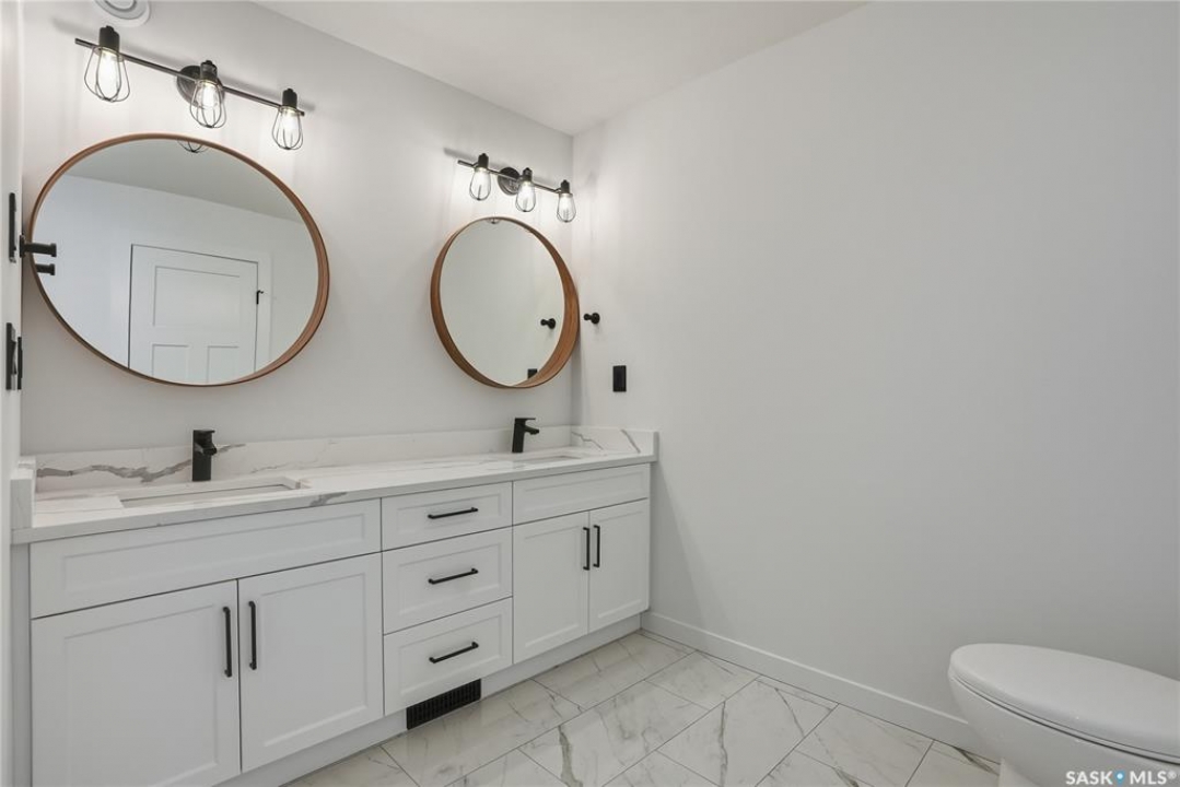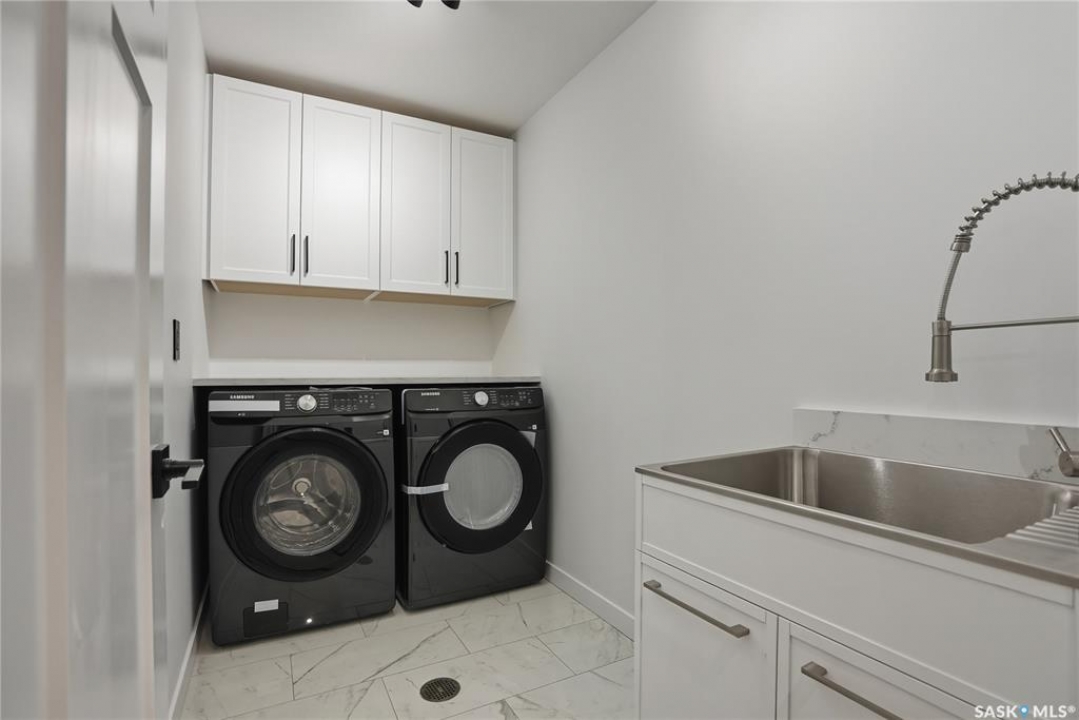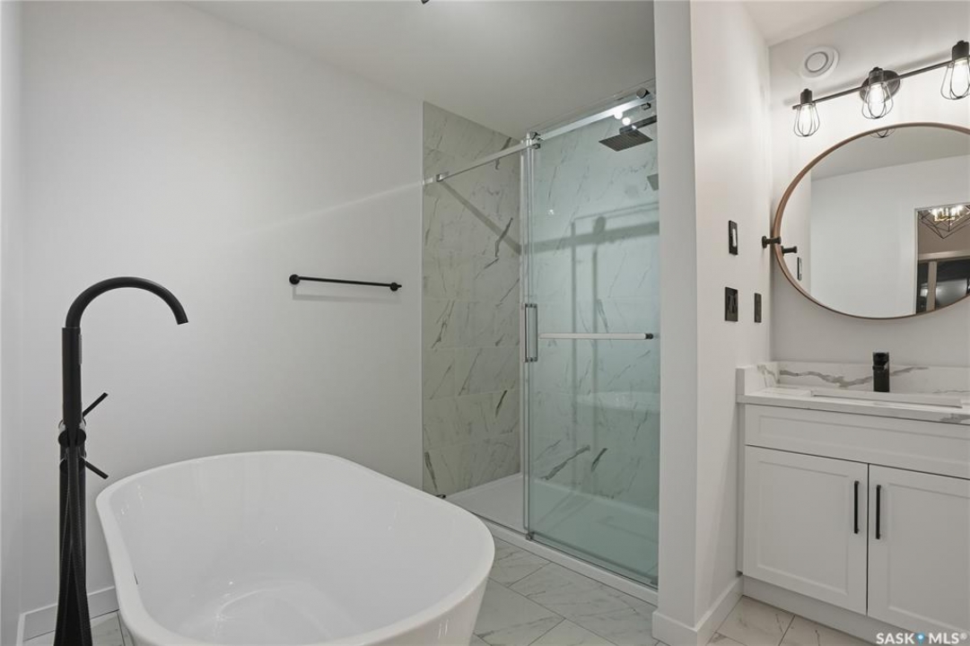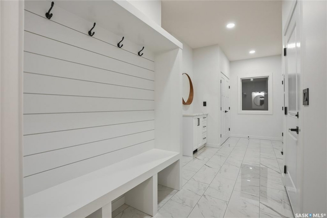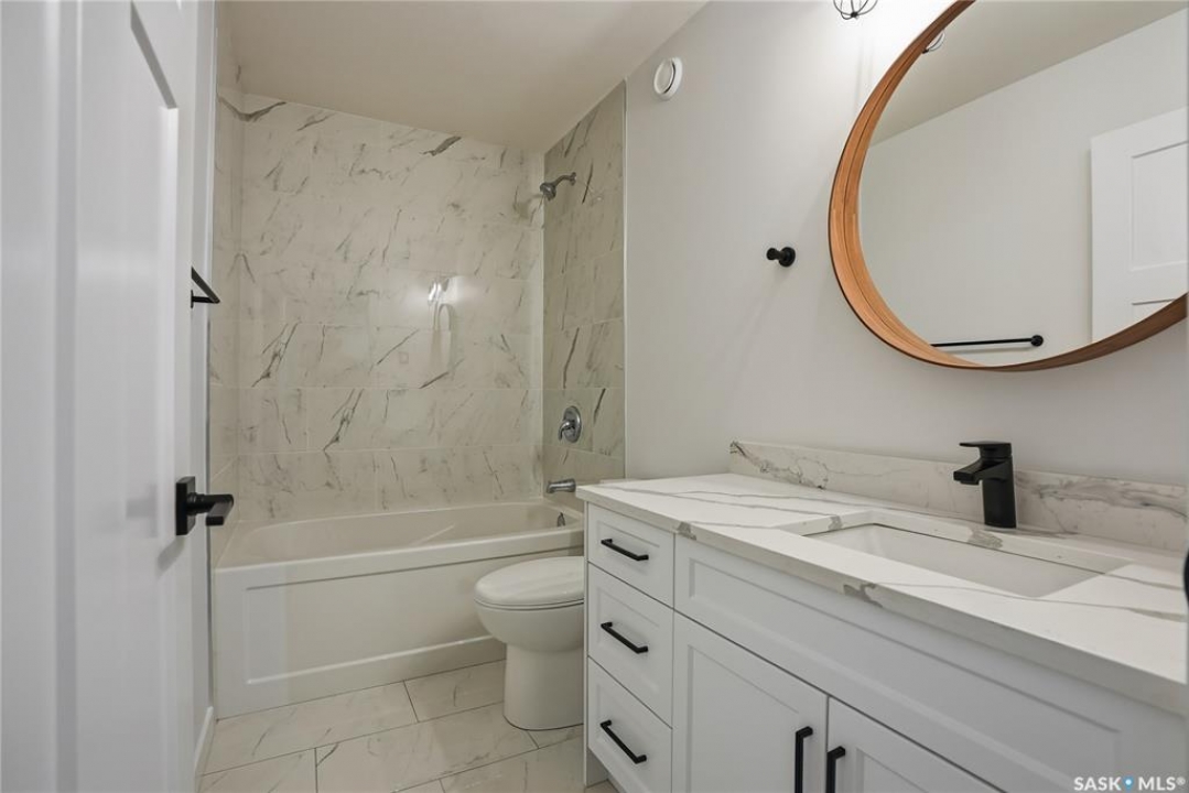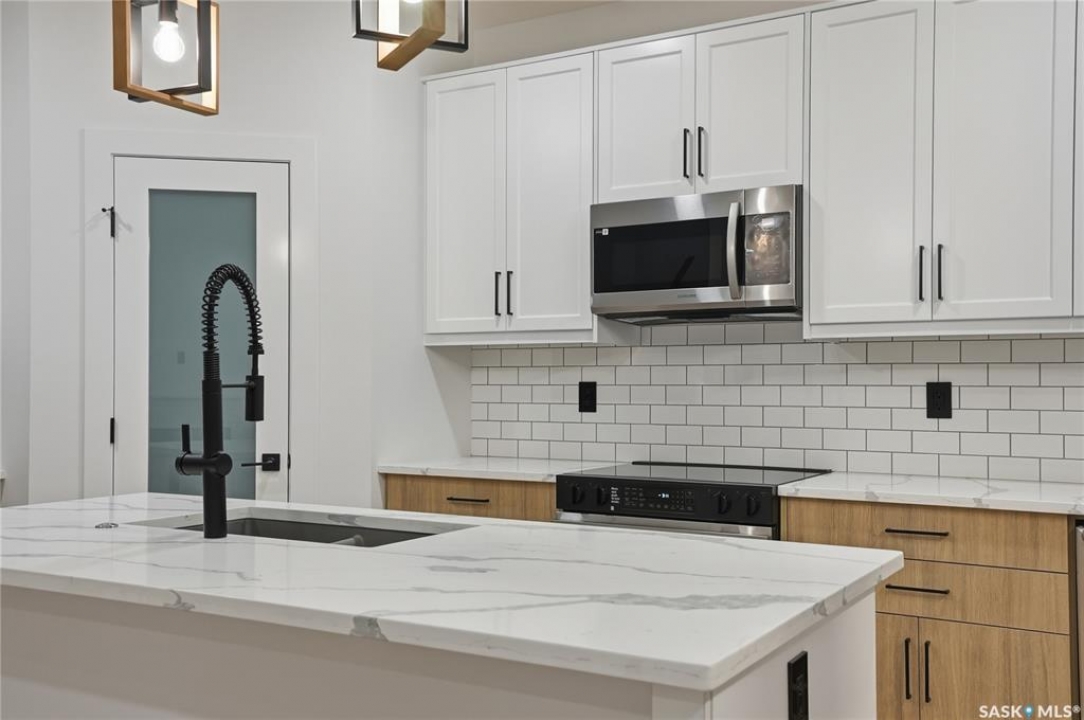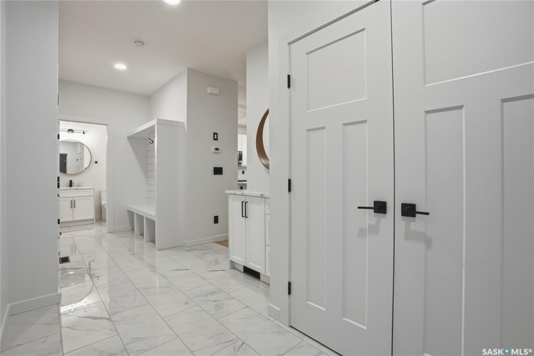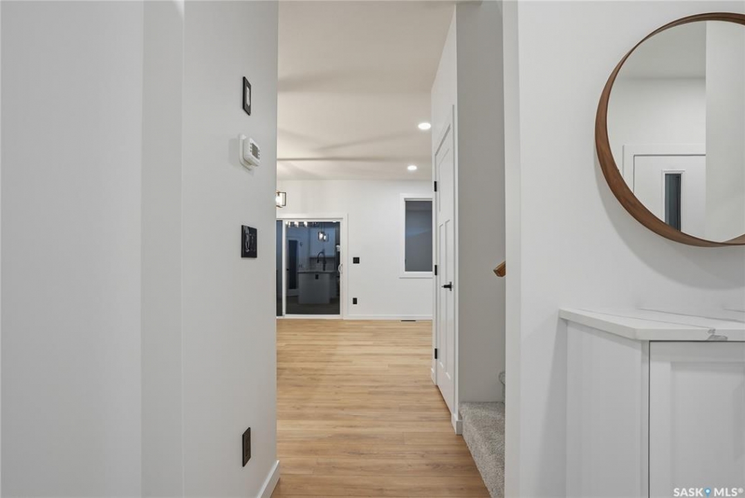 Welcome to refined living in the prestigious community of Brighton, one of Saskatoon's most desirable and architecturally stunning neighbourhoods. This impeccably crafted 1,875 square foot executive two-storey home offers sophisticated design, premium finishes, and exceptional investment potential. The main level features an elegant open-concept layout anchored by a striking contemporary fireplace and a designer-inspired chef's kitchen, complete with quartz countertops, upgraded stainless steel appliances, and a built-in beverage fridge — perfect for entertaining. Upstairs, you'll find a spacious bonus room, three beautifully appointed bedrooms, and a spa-inspired primary retreat featuring a luxurious five-piece ensuite with dual vanities, a walk-in glass shower, and a deep soaker tub. The double attached garage, concrete driveway, finished front landscaping, and private side entrance to the lower level elevate both convenience and long-term value. With the potential for a legal two-bedroom suite and eligibility for the Saskatchewan Secondary Suite Incentive, this home offers incredible income opportunity. Luxury. Functionality. Investment potential. This is elevated living in Brighton. Book your private tour today. GST/PST included in the purchase price with the rebate to builder. Saskatchewan New Home Warranty.