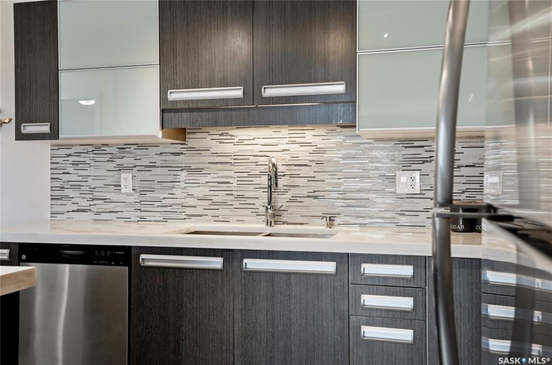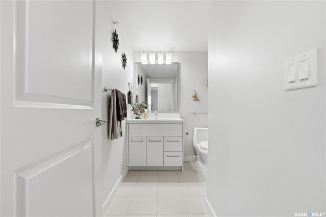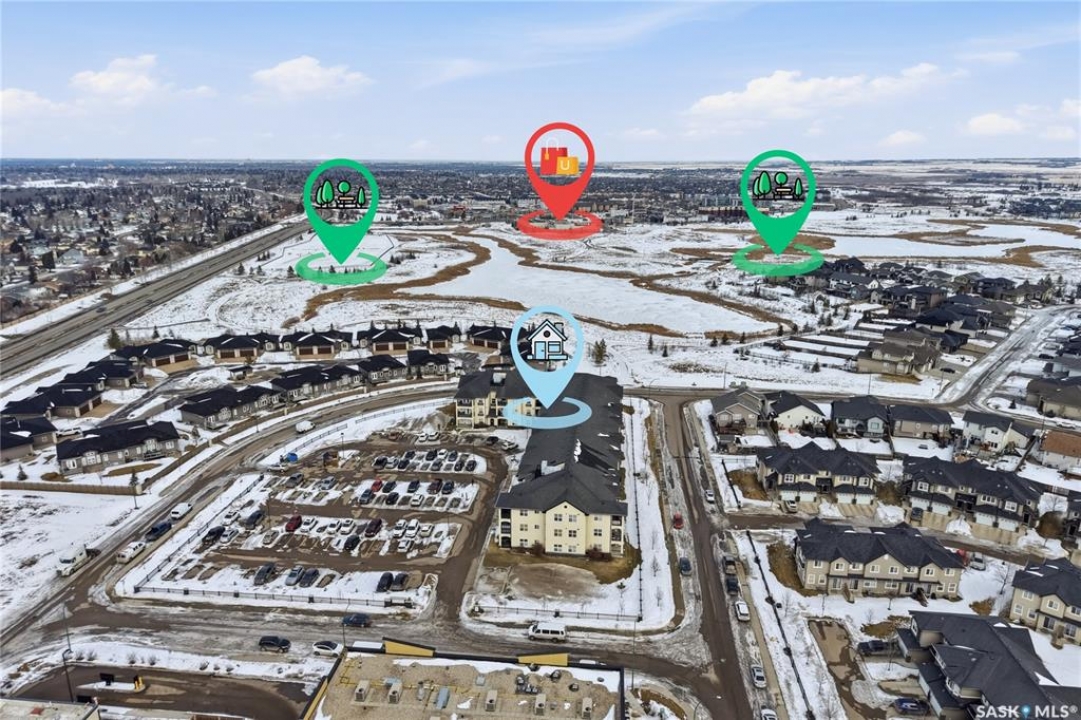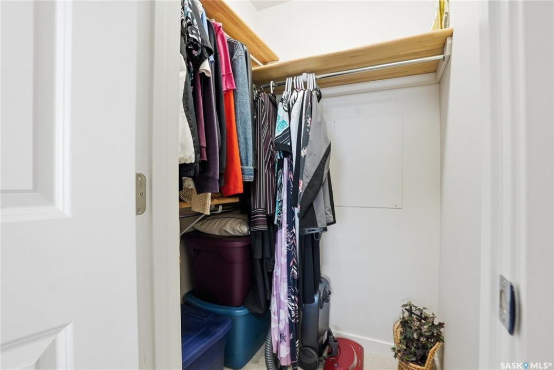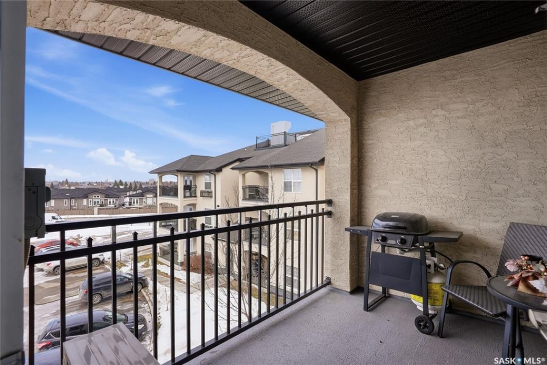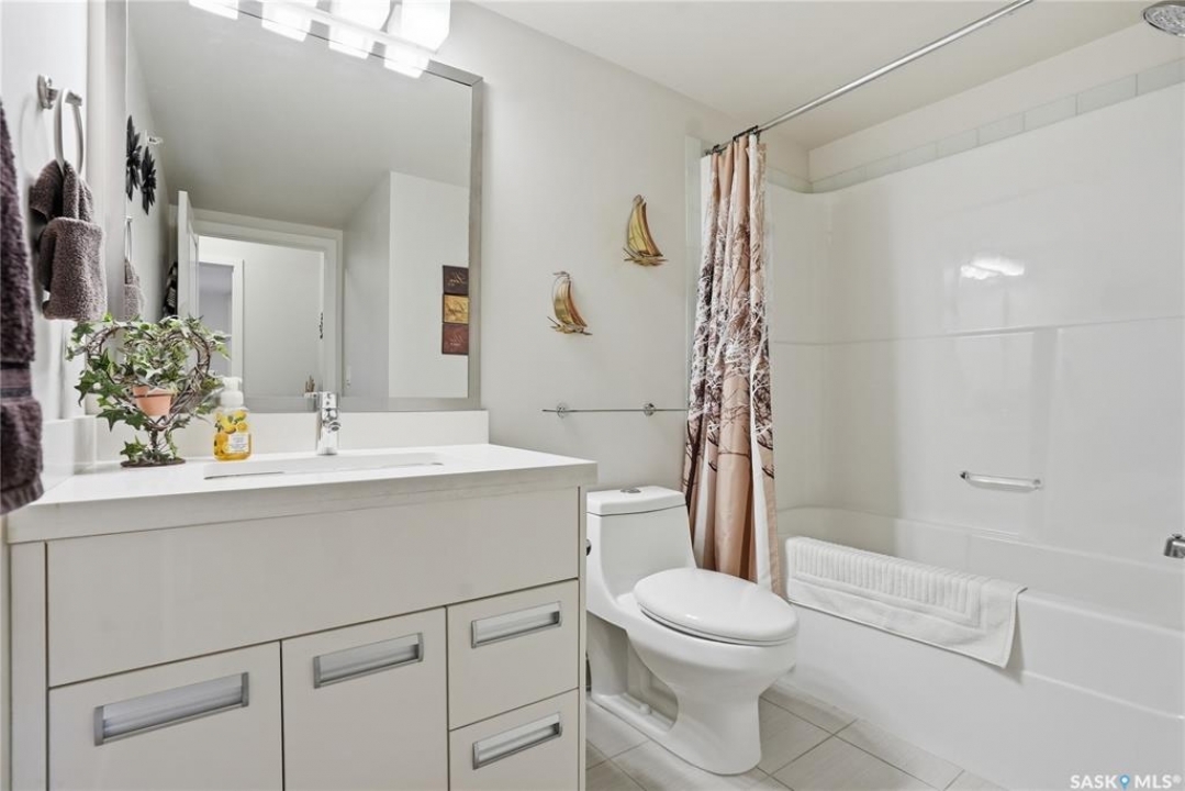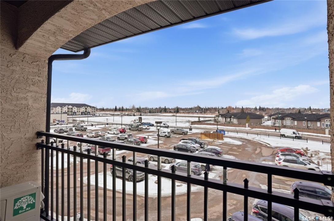 Top-floor, modern 2-bedroom condo at Rosewood Pointe with 2 electrified parking stalls! Trendy split-bedroom layout with open concept living/dining/kitchen areas finished with bamboo flooring. Modern kitchen cabinetry with quartz countertops, stainless steel appliances & island eating bar. Both bedrooms offer generously-sized walk-in closets & ample space. In-suite amenities include wall-mount air conditioning, in-unit laundry with storage space, full 4-piece bathroom both with tile flooring. Large balcony with wonderful sunset views & plenty of space for a BBQ. 2 surface parking stalls included. Building amenities include elevator, intercom access, visitor parking. Condo fees include heat, water, sewer & garbage. Excellent Rosewood location with easy access to Circle Drive & close proximity to Hyde Park, restaurants, shopping & many more amenities. Come see it for yourself!