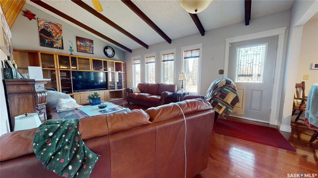 Welcome to #360 Eastview Place in the quiet community of Burstall, SK. This impressive property backs onto open space, offering a peaceful, wide-open feel. The home features a beautifully updated kitchen with open sightlines through to the living room with vaulted ceilings. The main level offers two generous bedrooms, two bathrooms, and the convenience of main floor laundry, plus direct ground-level access to the attached single garage. The main floor has also seen many updates, including updated hardwood flooring throughout. The fully developed basement adds even more living space with a large family room, a third bedroom, and a third bathroom—perfect for guests, teens, or a home office. Outside, the perks keep coming: the back deck and firepit area with wide-open views are ideal for relaxing or entertaining, and of course, the woodworker's/mechanic's dream—a large heated shop with a separate rear area featuring extra-high ceilings—perfect for projects, storage, or your toys, all in a peaceful small-town setting.