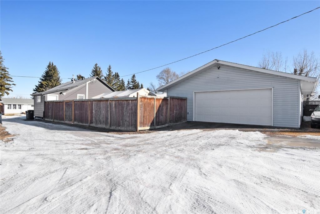 Looking for small town living, this one might be for you. This 792 sq/ft, 2 bedroom bungalow is ready for new owners. The home features a good sized eat in kitchen, 2 bedrooms, a full 4 piece bath and a full basement that's ready for your finishing touches. The 26' x 28' double detached heated garage is the perfect setup for a home mechanic, woodworker, or hobbyist. Book a viewing with your agent today!