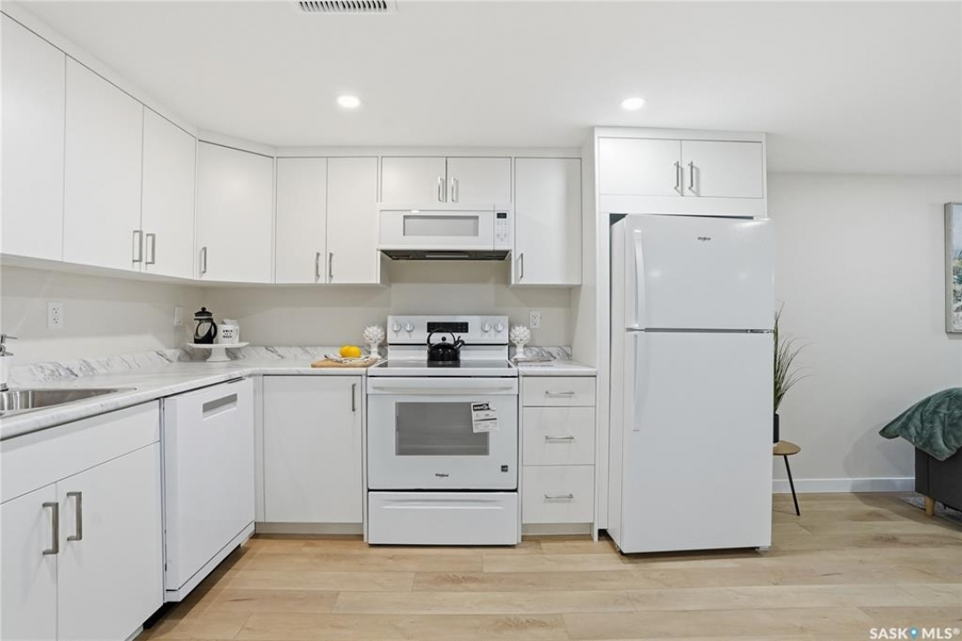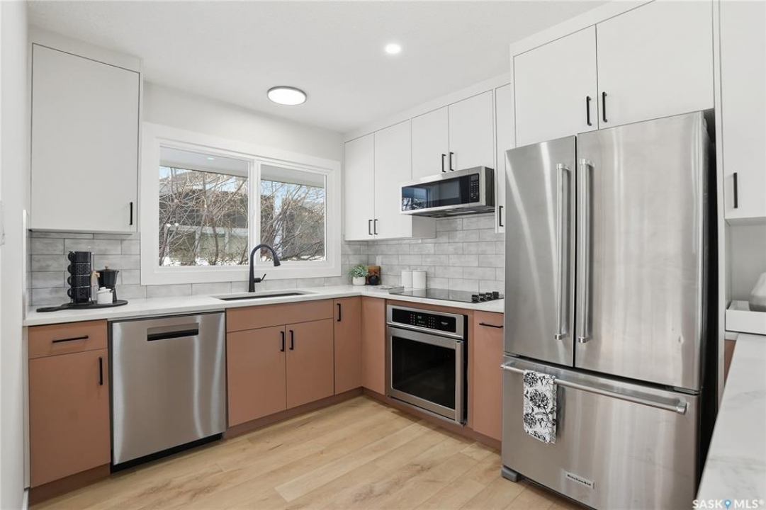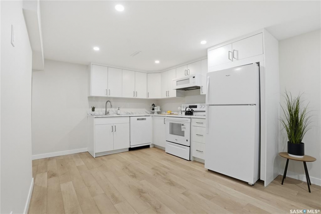 Extensively and professionally renovated, this stunning Brevoort Park home is truly move-in ready. Set in one of Saskatoon's most sought-after neighbourhoods, you'll love the convenience of being close to schools, parks, Circle Drive, and the amenities of 8th Street. The main floor offers a bright, open, and functional layout featuring three generous bedrooms, a stylish and practical kitchen, and a beautifully sunlit living room that flows seamlessly into a spacious dining area. A modern five-piece bathroom completes this level. With a separate entrance, the lower level offers excellent flexibility and revenue potential. The thoughtfully designed non-conforming suite is ideal for extended family, a nanny suite, rental income, or Airbnb. It includes a brand-new kitchen, comfortable living and dining space, two bedrooms (one bedroom window may not meet current egress requirements), a three-piece bathroom, and a dedicated laundry area. A separate laundry and mechanical room serve the main floor. Upgrades are extensive and include: new flooring throughout, windows, furnace, central air conditioning, appliances (one set of laundry currently in use), bathrooms, paint, trim and baseboards, exterior paint, and new electrical and plumbing fixtures. Outside, enjoy a fully fenced yard complete with a fire-pit area and storage shed. The property also offers a three-car driveway, carport, rear alley access, and ample space to build a future double garage. A beautifully updated home in an exceptional location — perfect for families, investors, or those looking for flexible living options.