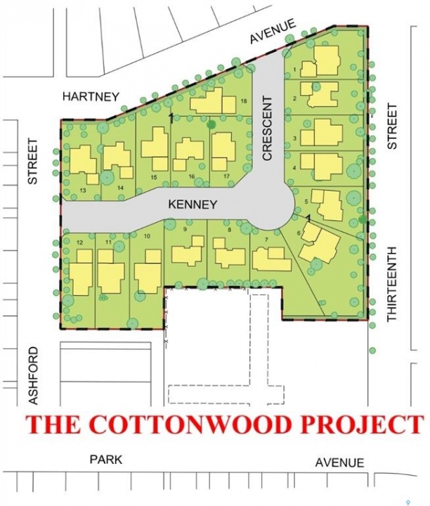 Welcome to Cottonwood Project — Weyburn's exciting, new residential neighborhood development! Nestled in a beautifully treed area in a developed residential location, the Cottonwood Project offers an opportunity previously unavailable in Weyburn - the chance to build your dream home among large, mature trees and be located within the heart of the city rather than restricted to a fringe area as with other residential lot developments. The Cottonwood Project is bordered by 13th St. on one side, Hartney Ave on another, and Ashford St. on the back. It is a cross from St. Michael School - Weyburn's only Catholic School (pre-K to Grade 9). Additionally, it is within easy walking distance to public schools, Jubilee Park( the central location for baseball, soccer,, tennis), the City leisure Centre and outdoor pool, and more. With a variety of sizes, there are lots for everyone. From pie-shaped lots, to elongated lots and standard rectangular options - you won't be disappointed. Kenney Crescent is a central L-Shaped road which services the neighborhood, creating that community feel. If you've been looking for that perfect place to build your family home but haven't been satisfied with the current options, check out the Cottonwood Project.