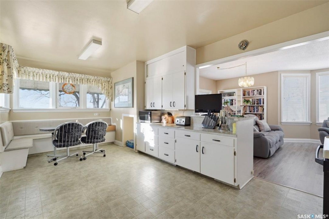 Pride of ownership is evident in this bright, open 3 bedroom bungalow. Floorplan has open flow between kitchen/dining room and living room, with large rooms and tons of natural light. Situated on a huge, park like lot in the centrally located town of Nokomis, this home is priced to sell and is move in ready. As you pull in the driveway, you'll notice the wraparound deck overlooking the expansive back yard. Step in the back door which accesses the huge eat in kitchen with built in bench seating in the dining area, and room for a portable dishwasher. There are tons of cupboards and counter space for the avid cook, and kitchen is open to the bright, spacious living room. Living room spans the west side of the house, with a huge bay window and updated luxury vinyl plank flooring. A small storage room (other) offers storage and closet space. 3 large bedrooms (one currently set up as office) and a 4 piece bath complete the main floor layout. Updates are many, and include windows, furnace, central air, concrete floor and piping in basement, and a 200 amp electrical panel. A central vac with attachments is included. The single detached garage is currently used as storage but has plenty of room to park inside. Nokomis is a progressive community with a k-8 school, daycare, health center, grocery, hardware and drugstore, automotive service station, co-op agro, rec center, craft brewery and more! Located about 1 1/2 hrs from Regina and Saskatoon, 30 minutes from Last Mountain Lake and under 40 minutes to Nutrien Lanigan and BHP Jansen potash mines homes are affordable and the community is welcoming. Call today for your private viewing!