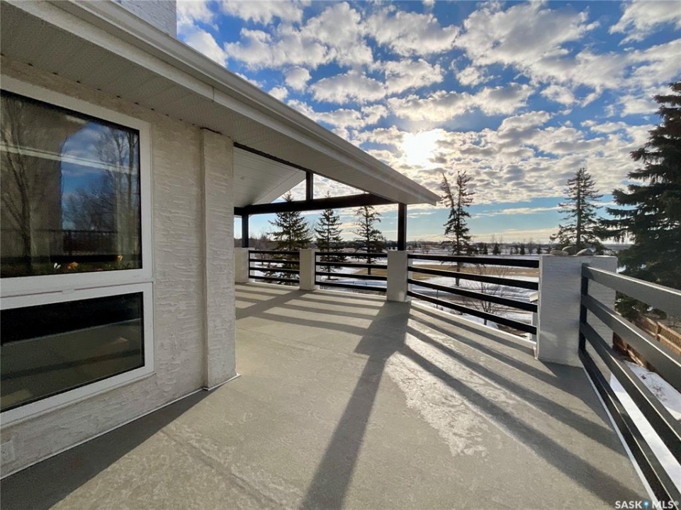Welcome to this stunning executive home located in the prestigious Westhill neighborhood of Regina. Perfectly positioned to back onto the Goulet Golf Course, this property offers elegance, comfort, and breathtaking views in every direction. Step inside to a bright, open floor plan designed for modern living and effortless entertaining. The kitchen, dining, and living spaces flow seamlessly together, highlighted by wood beams, glass railings, and large windows that capture the beauty of the golf course beyond. The kitchen is as functional as it is stylish, with plenty of workspace and direct access to the expansive back deck — perfect for morning coffee or evening sunsets. The master retreat is truly exceptional — featuring a spacious sitting area, private access to the deck, and a lavish 5-piece ensuite complete with a soaker tub. The expansive walk-in closet provides ample storage and organization for a truly luxurious experience. The main floor is complete with a second bedroom. The fully developed walkout basement offers the ultimate in recreation and relaxation. Enjoy a large games area, stylish wet bar, cozy rec room, and one bedroom and a den — ideal for guests or family. The basement is complete with a sunroom, that can be used for every season. A well-appointed bathroom completes this versatile space, with direct access to the backyard. The outdoor spaces have been thoughtfully designed to make the most of the serene golf course setting. The yard offers privacy, space, and impeccable landscaping, creating a tranquil oasis for entertaining or unwinding in style. This is a must see home to be truly appreciated.