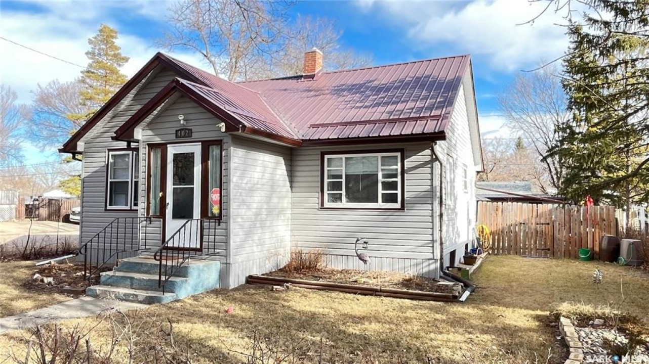 Discover the vintage charm of this beautifully upgraded 1940's home, now fully modernized to meet today's standards. Previously an AirBnB wiring and plumbing are upgraded to today's code. The metal roof and new hot water tank (2024) and furnace (2019) offer peace of mind. Featuring two spacious bedrooms on the main floor and a third in the finished basement, this property offers versatile living options for families or guests. Enjoy two comfortable living room spaces, with the flexibility to add a second bathroom downstairs for added convenience. The garage has been thoughtfully divided, providing a single car space and a cozy gathering area complete with a wood burning stove—perfect for relaxing with friends or family. Situated on a generous corner lot just steps from local schools, this affordable, move-in ready home combines classic character with contemporary comfort. Don't miss your chance to own a unique property in a welcoming neighbourhood.
