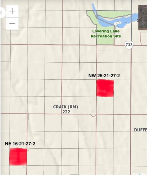 Looking to expand your farming operations this spring in the RM of Craik? These two quarters of prime farm land are located in RM of Craik near Lovering Lake. The NW 25 21 27 2 has had approximately 70 acres sub soiled about 14 inches deep APV. There is a pipeline easement across the NE 16 21 27 2.