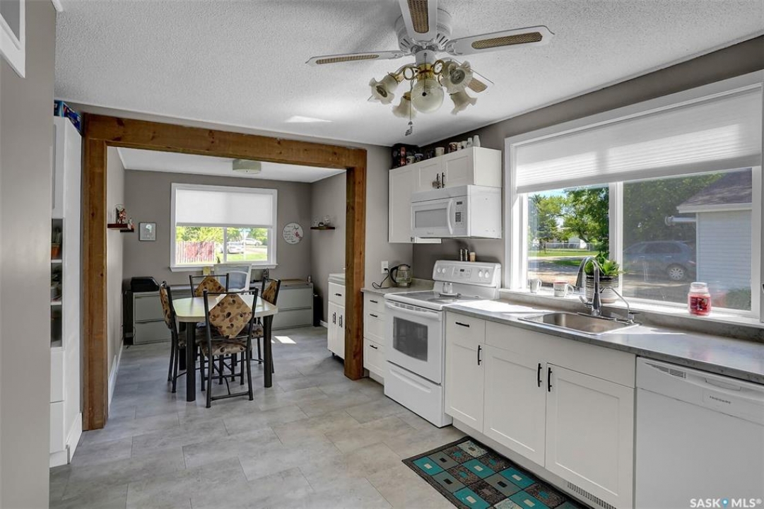 Here's a fantastic opportunity to own a well-maintained, character-filled home on an oversized lot backing peaceful green space in the quiet community of Earl Grey. This 1 �-storey home offers approximately 1,000 sq ft of comfortable living space with two bedrooms upstairs, a full bathroom, and a main floor den—ideal as a home office or optional third bedroom for added flexibility. The home blends classic charm with thoughtful modern upgrades, creating a welcoming and move-in-ready space. The bright white kitchen and dining area, recently renovated, are perfect for everyday living and family gatherings. A spacious, light-filled living room features a large window that frames scenic views of the green space, offering a relaxing backdrop for daily life or entertaining. Hardwood floors have been beautifully refinished, and the home has been updated over recent years with a new electrical panel, water heater, central A/C, spray foam basement, windows, the addition of a reverse osmosis system and water softener further enhanced comfort and efficiency. A standout feature is the impressive 26' x 28' heated garage, complete with a 220V plug—ideal for vehicle enthusiasts, hobbyists, or anyone in need of extra storage or workshop space. This home is a perfect blend of small-town charm, modern conveniences, and tranquil surroundings—ready for its next owner to enjoy. Renovations mentioned were done between 2019-2023.