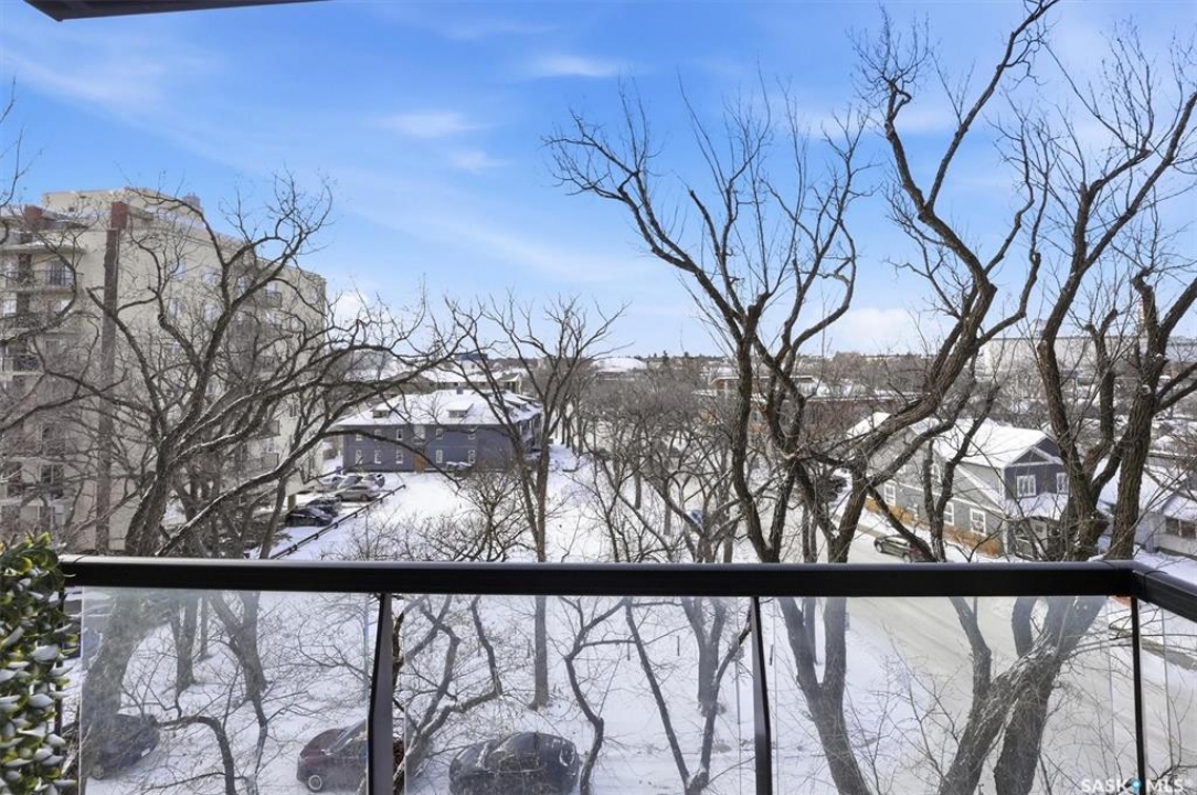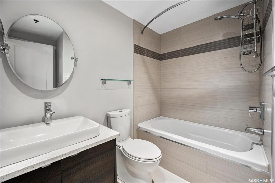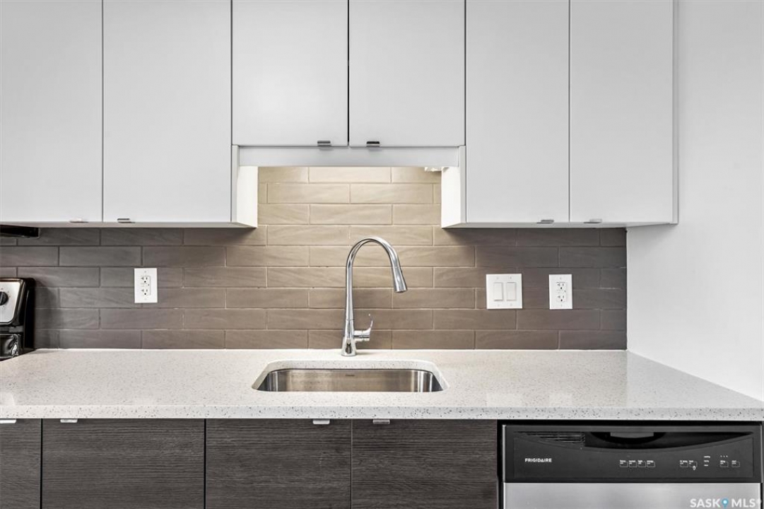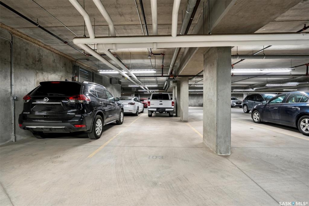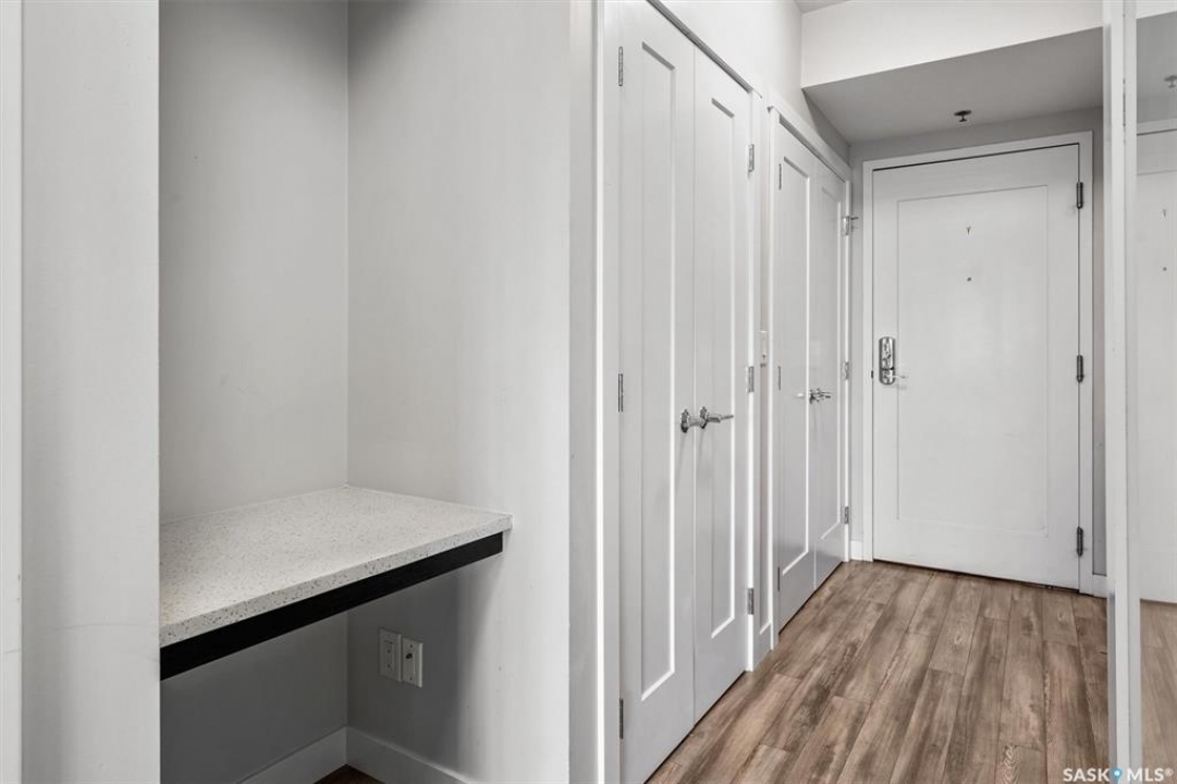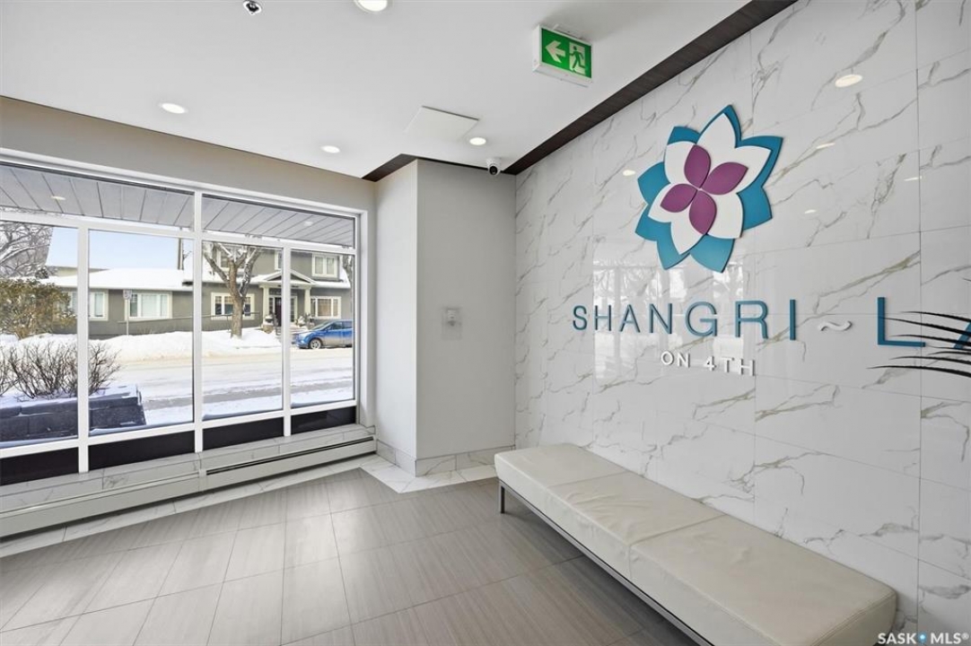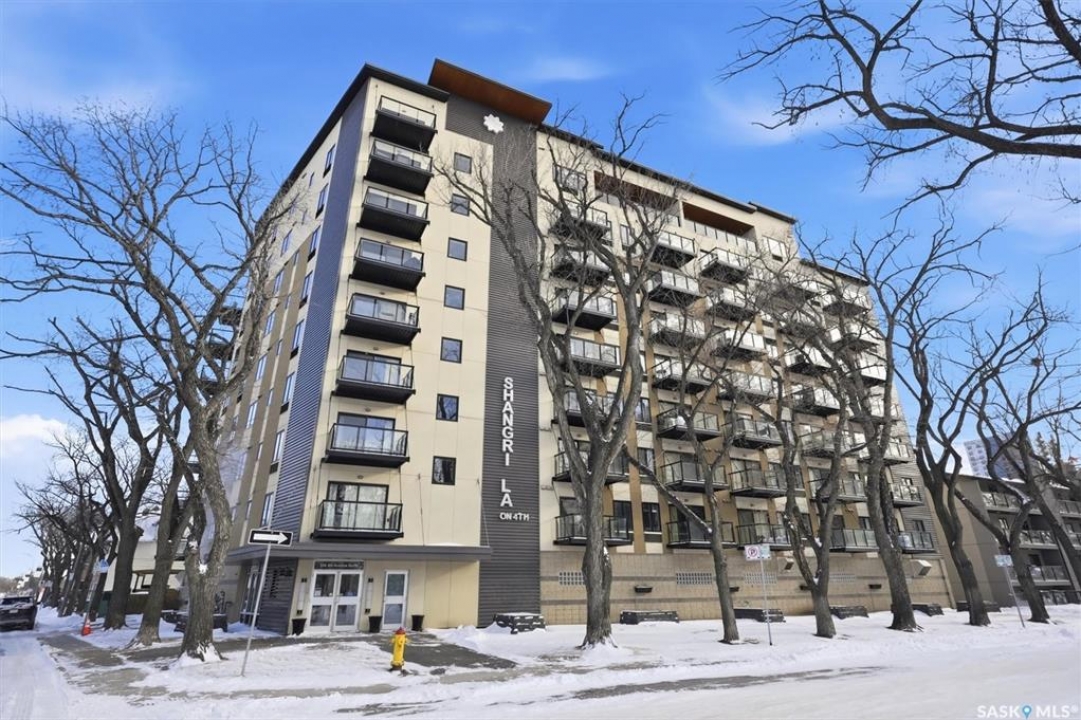 Welcome to The Shangri-La on 4th Ave. This stylish 1 bedroom, 1 bathroom condo is perfectly situated in the heart of Saskatoon. The bright impeccably maintained unit features a functional open concept layout. Enjoy the convenience of a built-in computer workspace, modern kitchen, upgraded stainless steel appliances, quartz countertops and tile back splash - ideal for both everyday living and entertaining. You are close to City Hospital, University of Saskatchewan, Royal University Hospital, downtown shops, restaurants and city transit. What a great location offering the best of urban living with easy access to nature. Set in a soundly constructed concrete building, residents can enjoy premium amenities including a rooftop patio with BBQ area, an amenities room with fitness equipment, and the added convenience of one underground parking stall. Don't miss this incredible opportunity to own in one of Saskatoon's most sought after locations. Book your showing today with your favorite Realtor!