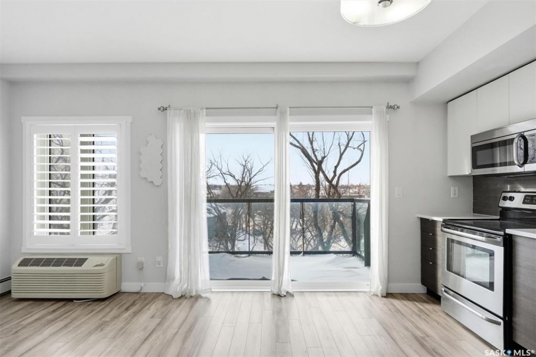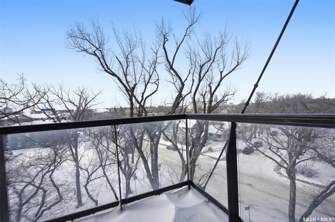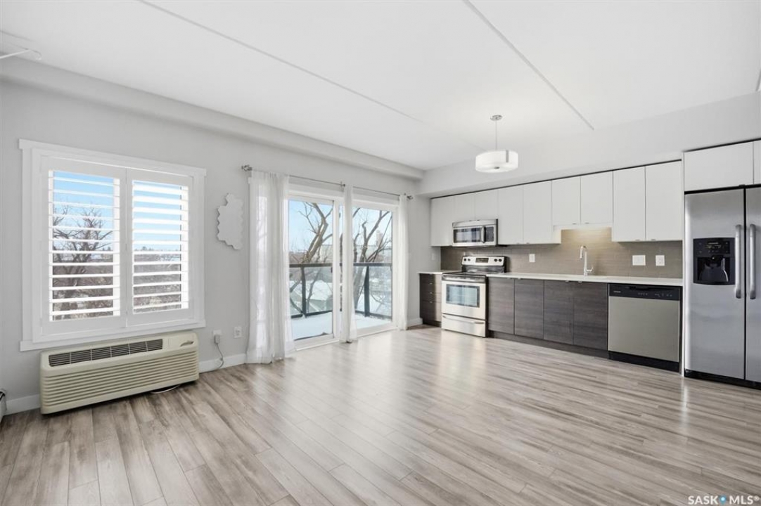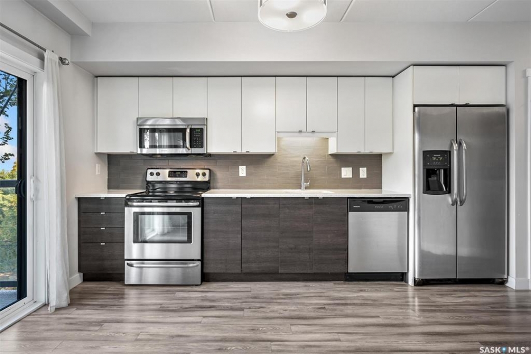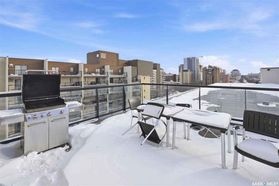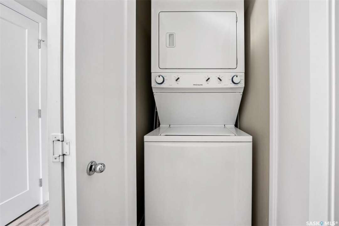 Welcome to The Shangri-La on 4th Ave. This stylish 1 bedroom, 1 bathroom condo is perfectly situated in the heart of Saskatoon. The bright impeccably maintained unit features a functional open concept layout. Enjoy the convenience of a built-in computer workspace, modern kitchen, upgraded stainless steel appliances, quartz countertops and tile back splash - ideal for both everyday living and entertaining. You are close to City Hospital, University of Saskatchewan, Royal University Hospital, downtown shops, restaurants and city transit. What a great location offering the best of urban living with easy access to nature. Set in a soundly constructed concrete building, residents can enjoy premium amenities including a rooftop patio with BBQ area, an amenities room with fitness equipment, and the added convenience of one underground parking stall. Don't miss this incredible opportunity to own in one of Saskatoon's most sought after locations. Book your showing today with your favorite Realtor!