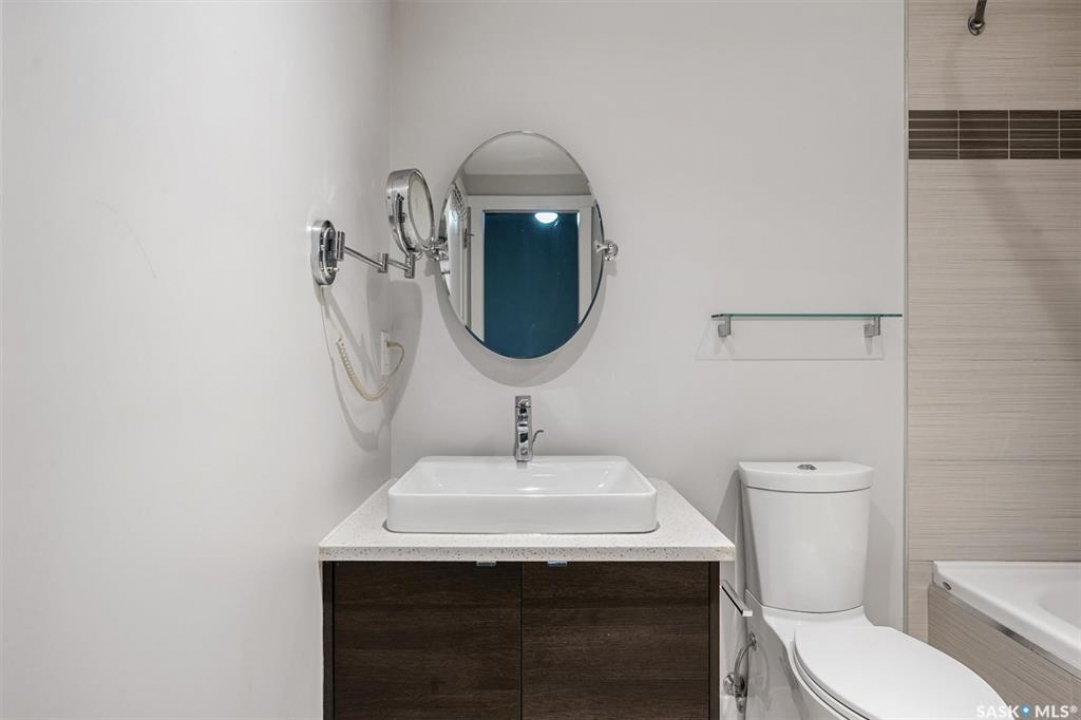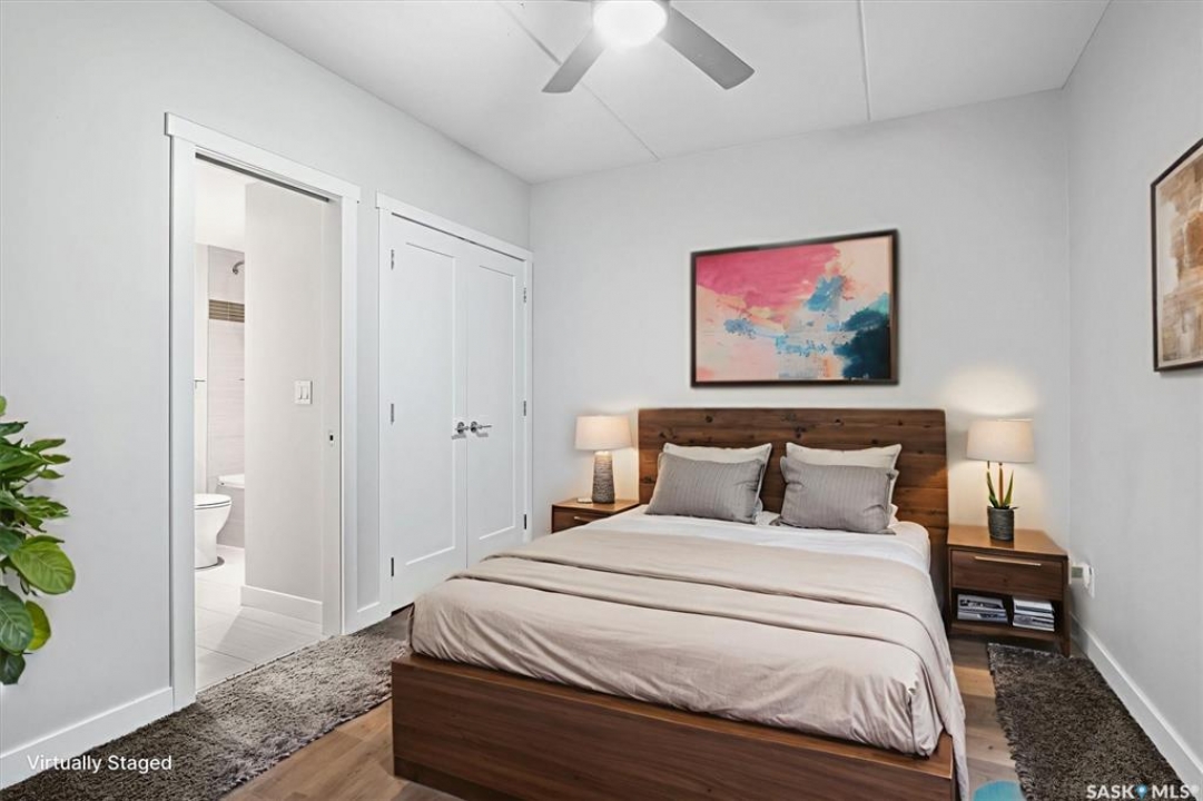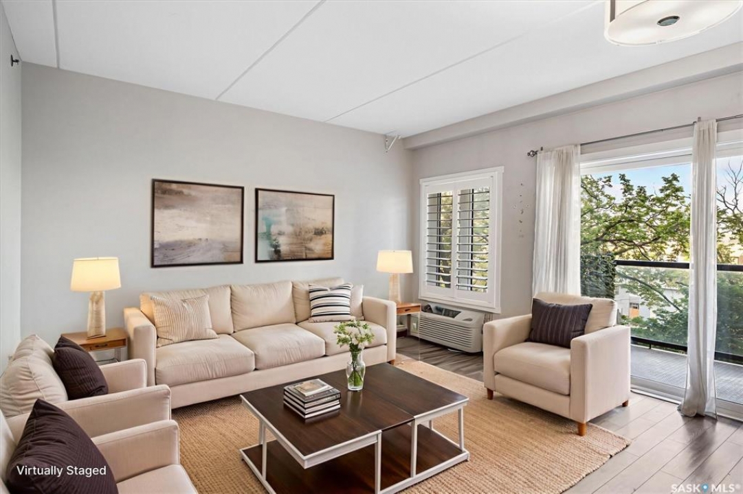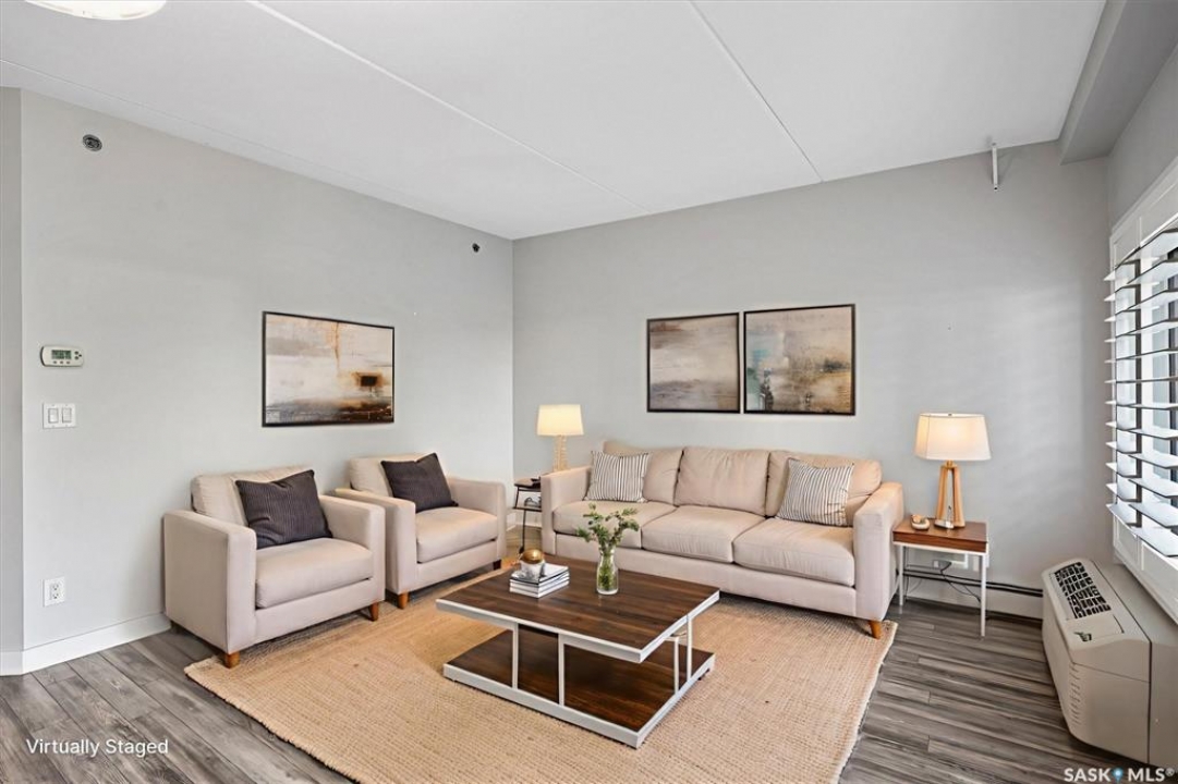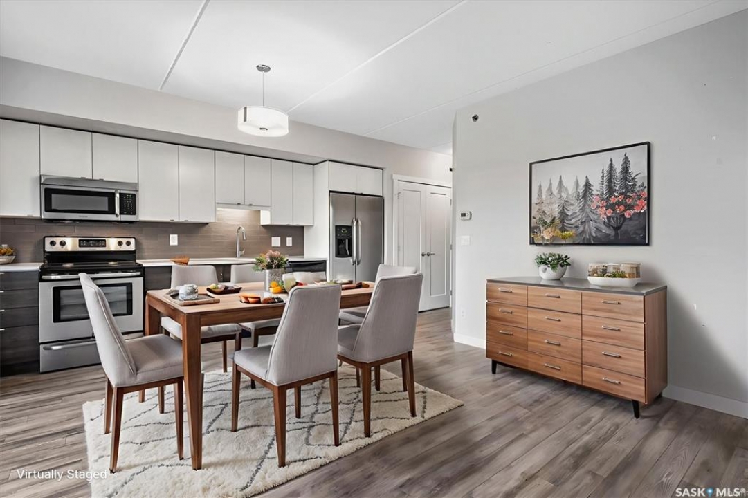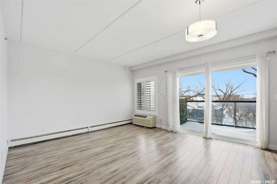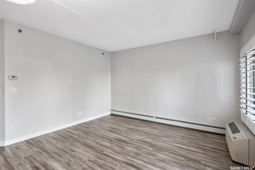 Welcome to The Shangri-La on 4th Ave. This stylish 1 bedroom, 1 bathroom condo is perfectly situated in the heart of Saskatoon. The bright impeccably maintained unit features a functional open concept layout. Enjoy the convenience of a built-in computer workspace, modern kitchen, upgraded stainless steel appliances, quartz countertops and tile back splash - ideal for both everyday living and entertaining. You are close to City Hospital, University of Saskatchewan, Royal University Hospital, downtown shops, restaurants and city transit. What a great location offering the best of urban living with easy access to nature. Set in a soundly constructed concrete building, residents can enjoy premium amenities including a rooftop patio with BBQ area, an amenities room with fitness equipment, and the added convenience of one underground parking stall. Don't miss this incredible opportunity to own in one of Saskatoon's most sought after locations. Book your showing today with your favorite Realtor!