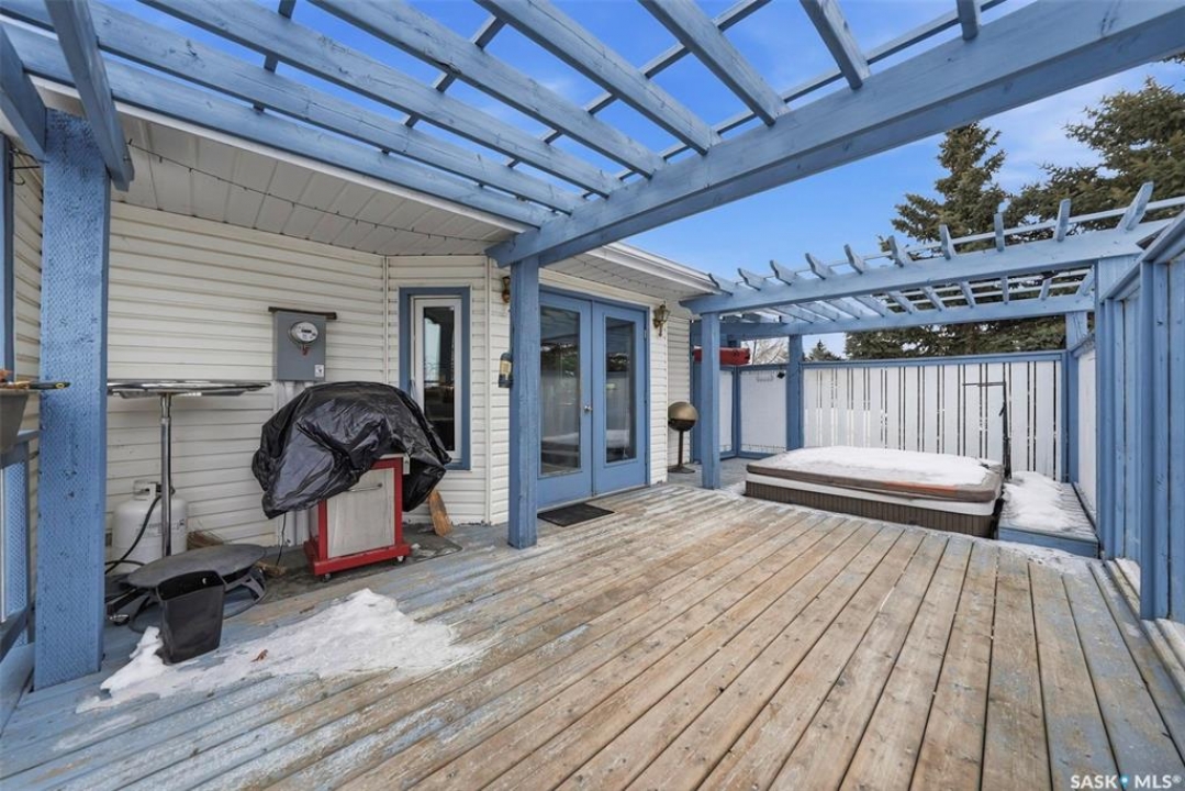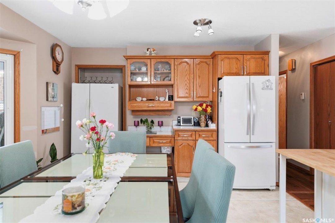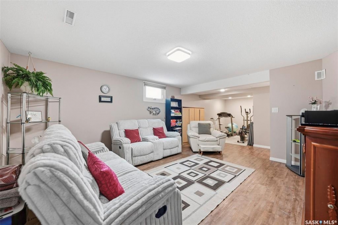 Welcome to this beautifully kept home in the heart of Watrous! The inviting front entry leads into a spacious living room filled with natural light. The main floor features a huge eat-in kitchen with plenty of room for family gatherings, a full main bathroom, and three generously sized bedrooms — including a primary suite complete with its own private ensuite. The fully finished basement offers even more living space with a large family room, two additional spacious bedrooms with custom study tables in each room, a 4-piece bathroom, a utility area with hobby space, and ample storage. Numerous updates provide peace of mind, including newer windows, shingles, garage door, and basement improvements. Step outside to enjoy the private patio just off the deck, complete with a pergola — perfect for relaxing or entertaining. A natural gas BBQ hookup adds extra convenience. Ideally located close to schools, ball diamonds, and the swimming pool, this home offers comfort, space, and an unbeatable location. Located just 5 minutes from the resort village of Manitou Beach