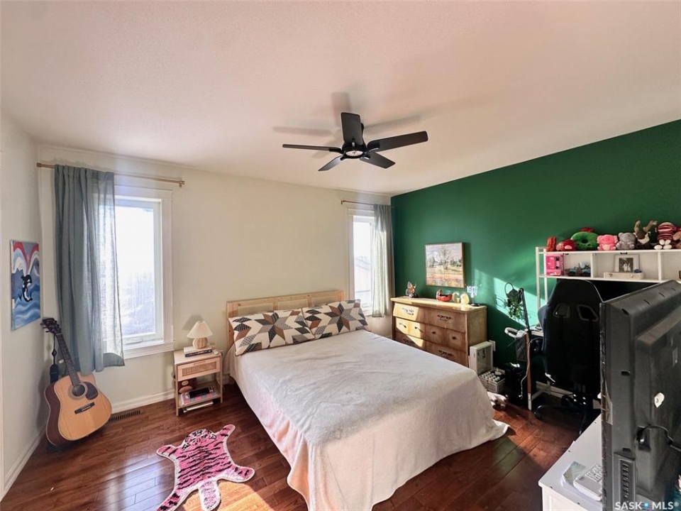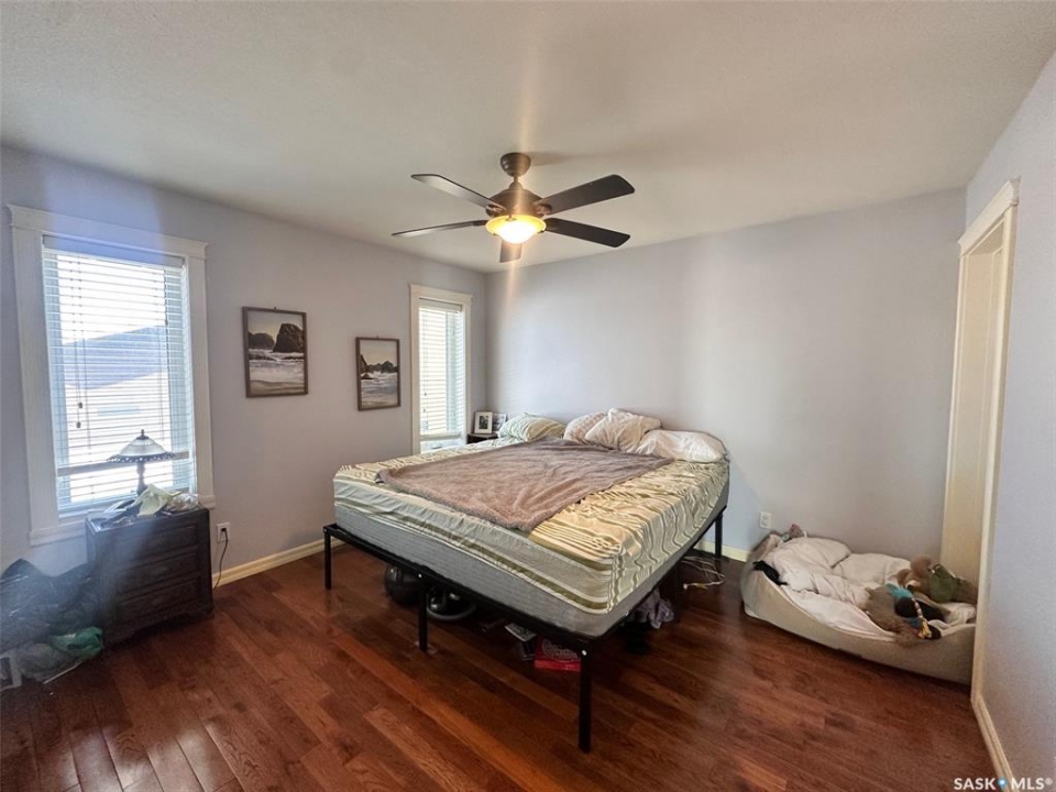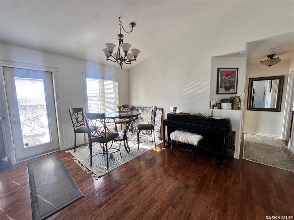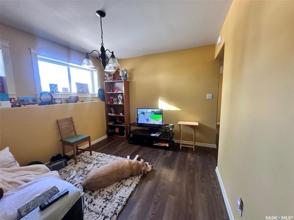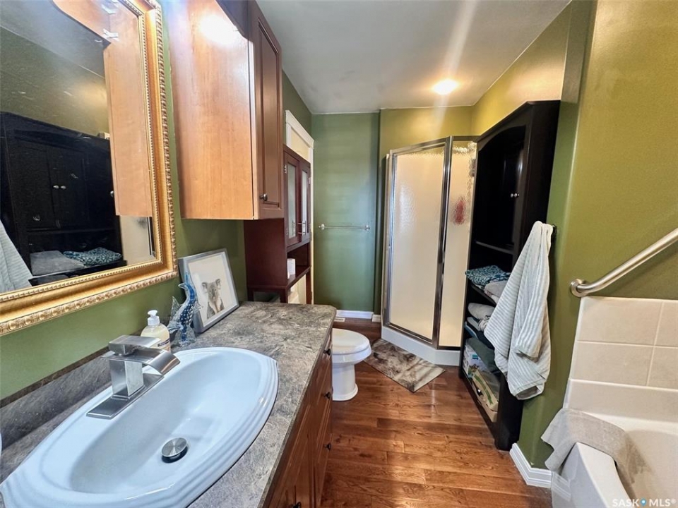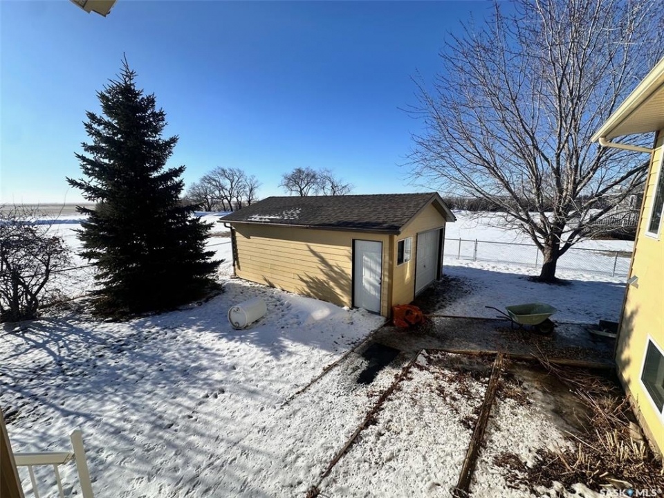 This large home on the edge of the town of Radisson is an absolute must-see! Situated on a double lot and backing onto the open prairie, the quality-built bi-level includes a legal basement suite, oversized attached garage and a single detached garage. Beautiful hardwood floors throughout the entire main level provide a rich background for the open layout, with all the cupboard space plus an island with electrical in the kitchen and garden doors off the dining room to the screened deck featuring remote-controlled blinds. The living room looks out over the vast landscaped front yard, with perennials, trees and shrubs giving you beauty outside as well. The main floor bathroom has a separate shower and jet tub, with plenty of space to move around. It is also accessed off the primary bedroom, adding to the space along with the large walk-in closet. Central air conditioning and on-demand hot water provide the In the basement, you have another spacious suite to allow for revenue potential or to host long-term guests. With its own kitchen, dining room and living room this basement suite is brightened by large windows and has direct access through the garage. The large bathroom and the bedroom don't skimp on space, and neither does the large laundry room. Convenient built-ins and extra space on the electrical panel mean you can add a hot tub on the deck or add laundry capacity if desired. With a fully fenced back yard and underground sprinklers, this private and quiet oasis is just the place to enjoy nature in a quiet town. Radisson is a short commute to North Battleford and offers small town charm with a busy main street and plenty of recreation amenities, including an outdoor swimming pool for those hot summers!