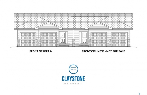 Brand new bungalow-style duplex living in the welcoming community of Hague. Welcome to 43A – 301 Centennial Road, currently under construction by Claystone Developments, with anticipated possession on July 31. This thoughtfully designed Unit A offers 1,145 sq ft of main-floor living, 2 bedrooms, 2 bathrooms, and an attached double garage. The open-concept layout features a bright living and dining area that flows seamlessly into an island kitchen designed for everyday ease and entertaining. The primary bedroom includes a walk-in closet and private ensuite, while a second bedroom and full bathroom provide flexibility for guests or a home office. Main floor laundry adds everyday convenience. Designed with minimal entry steps and true main floor living, this home is ideal for those seeking simplified, low-maintenance living without interior stairs. While not designated as accessible, the layout offers a comfortable, functional design. The attached double garage measures approximately 23' x 24'6” (per builder plans) and provides direct entry into the home. The basement remains undeveloped, offering excellent potential for future development, additional living space, or storage. Included in the purchase price are a concrete driveway, central air conditioning, laminate countertops, completed landscaping, and fencing, with a deck available at additional cost. Hague offers a strong community atmosphere with a K–12 school, daycare, arena, spray park, playgrounds, and local amenities, with Warman and Rosthern both less than 10 minutes away and Saskatoon within comfortable commuting distance. Call today to learn more about this upcoming property!