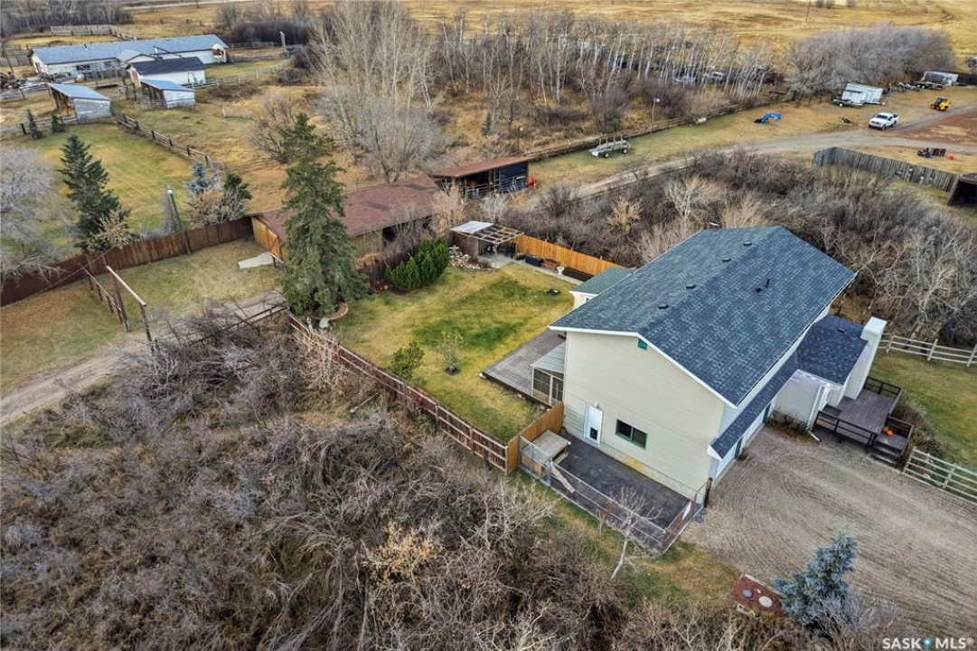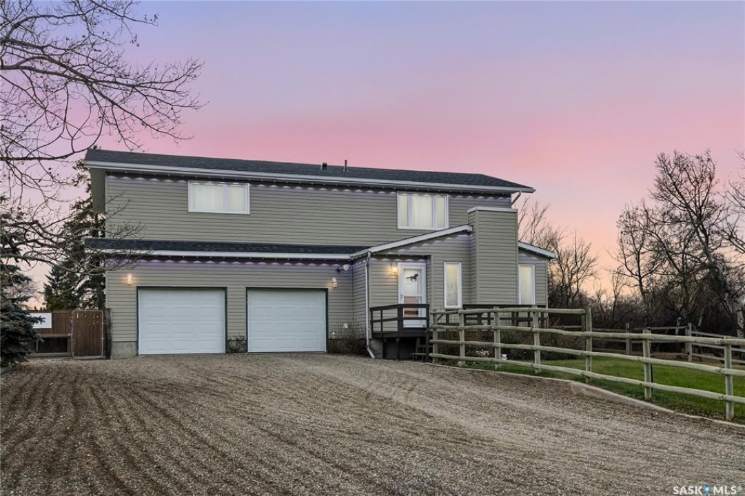Just south of the city on Tamke Road lies your own slice of polished country paradise — beautifully updated and ready for your lifestyle. This impeccably kept 10 acre dream property is fully cross fenced with electric wire and an automatic watering bowl, complete with a large sand footing riding arena perfect for everything from training days to sunset rides. The impressive 30x70 pole building features a large open area, tack space, with one stall currently set up and ready to go, while the other side offers a fully insulated and heated shop- ideal for the mechanic, woodworker, toy collector, or hobby enthusiast in the family. And ladies, you'll fall in love with the incredible “She Shed” space that it currently is used as. But the one side of the outbuilding could be effortlessly transformed into the perfect heated workshop, fitness studio, creative retreat, or private escape. Even the chickens are living their best life here in what can only be described as the Taj Mahal of chicken coops. The yard has been thoughtfully reimagined, with the former inground pool professionally covered to create a stunning treed oasis that's perfect for kids, pets, entertaining, or simply enjoying peaceful prairie evenings under the stars. Inside the 1,981 sq ft two-storey home you'll find many interior and exterior updates that make it feel fresh and move-in ready, including luxury vinyl plank flooring throughout (no carpet!), a cozy electric fireplace, an updated kitchen with stainless steel appliances, four spacious bedrooms upstairs with breathtaking acreage views, and an attached double garage. Municipal water service provides added convenience and peace of mind, while the unfinished basement offers excellent storage. This property truly has it all — horses, hobbies, toys, style, and space — just minutes from the city. Impeccably maintained and ready for its next chapter, your acreage lifestyle starts here.