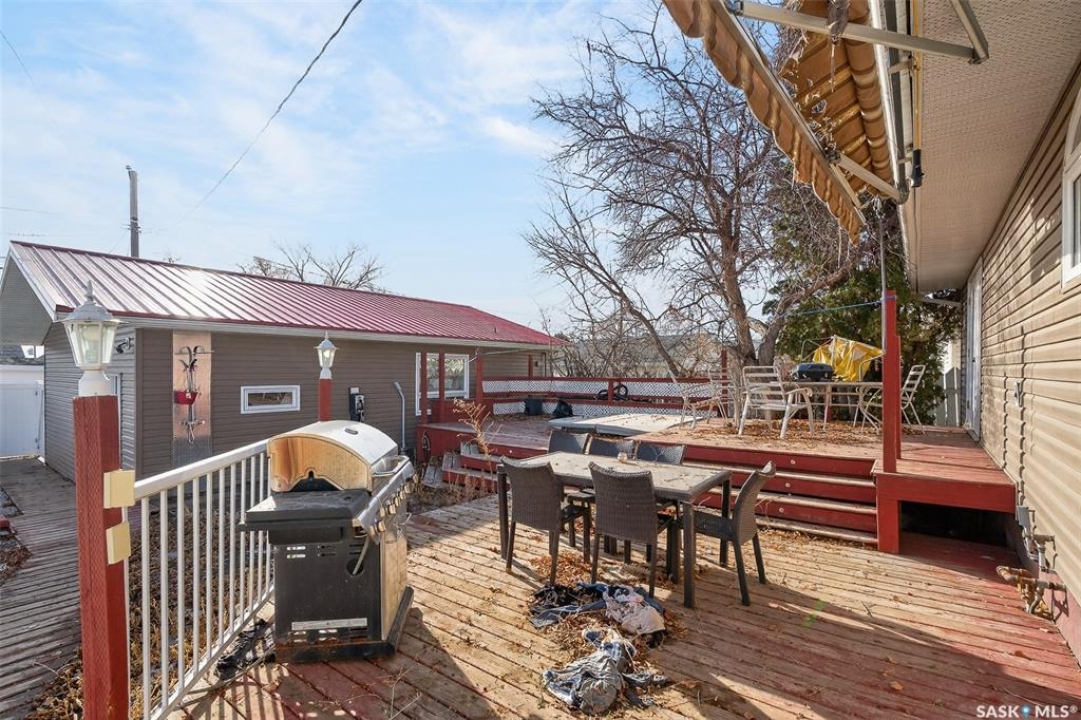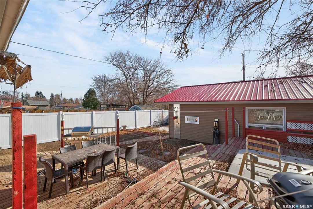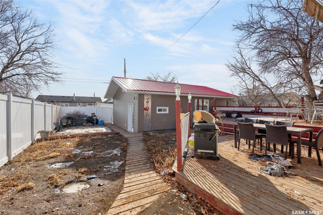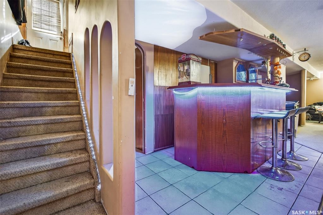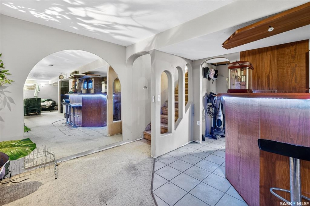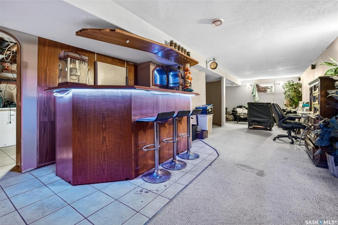 Excellent location for this bungalow! Good curb appeal as you show up with a double rubber paved driveway and turf for the front yard with a front deck! Heading in the backdoor we find a U-shaped kitchen with a tiered eat-up island, walk in pantry and lots of storage. At the front of the home we find a formal dining room with beautiful coffered ceilings! The large living room is sure to impress with its high vaulted ceilings. Down the hall we find a 3 piece bathroom and an office that could be used as a bedroom. Finally we find the primary bedroom with garden doors out to your 714 sq.ft. of tiered deck with a sunken hottub! Downstairs we find a huge family room with a full bar. There is also a second 3 piece bathroom on this level and a second bedroom. Finally we find a laundry room, utility room and a storage space. The oversized fully finished garage is a dream - 24' x 32', heated, with water and a urinal. Not too mention all of the bench space. Outside we have a garden space, an outdoor shower, nat gas bbq hookup, and a firepit area setup for nat gas. This home has had so many upgrades over the years - new garage about 2 years ago, high efficient furnace, hot water on demand, vinyl fencing. If you are looking for a very custom home that has lots to offer but needs some TLC to bring it back to its glory then this is it! Reach out today to book your showing!