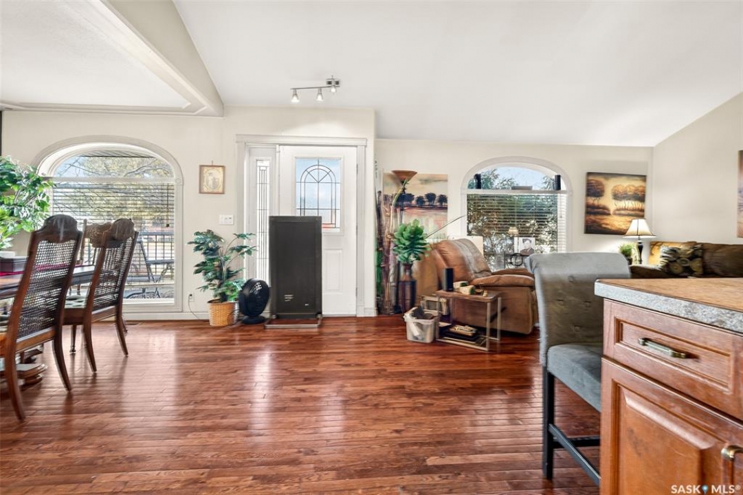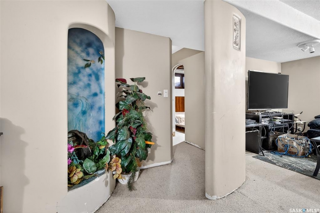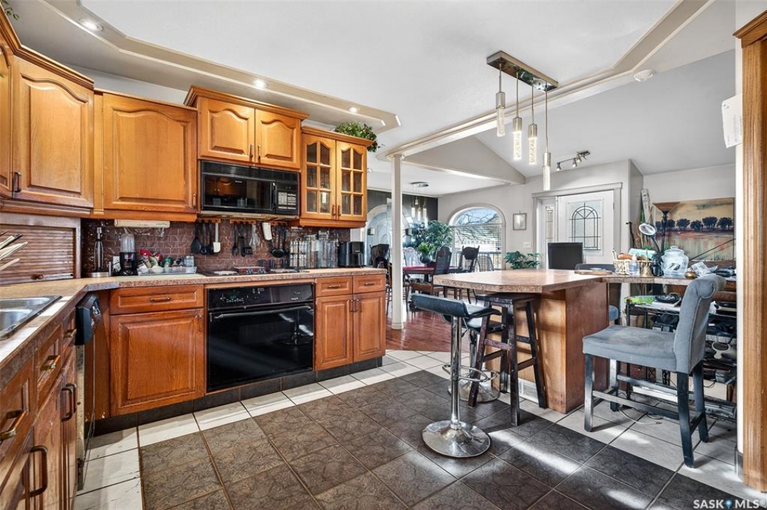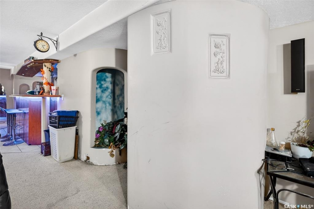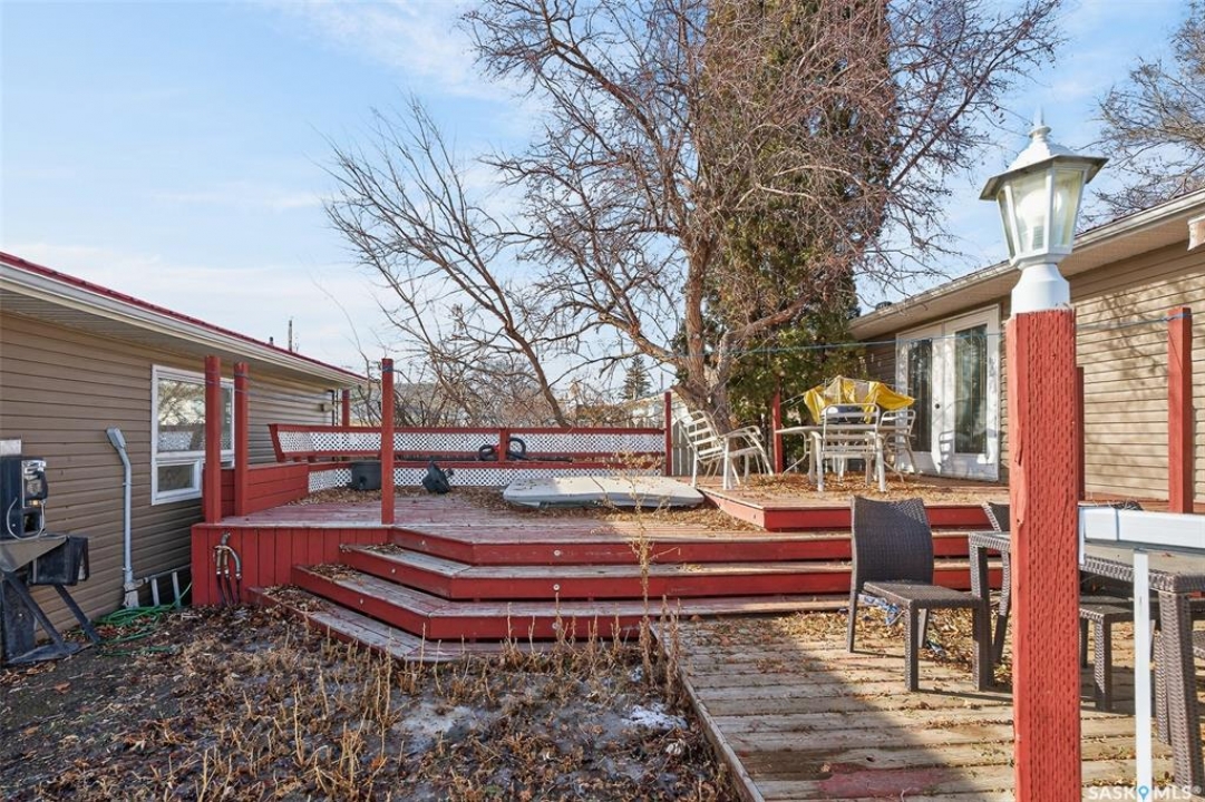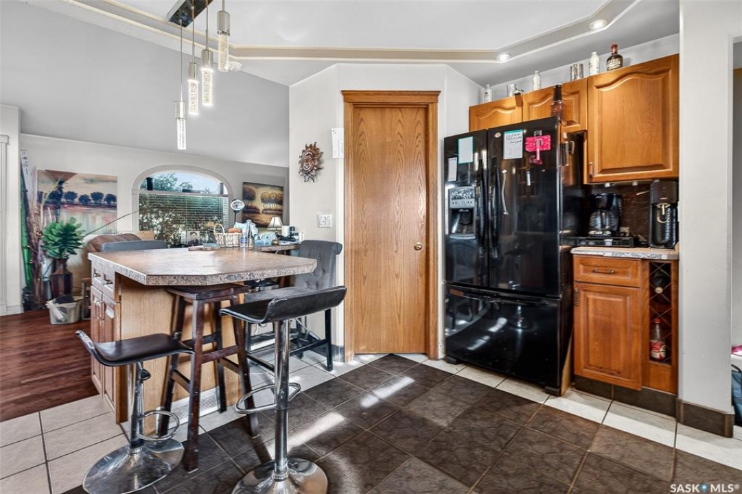 Excellent location for this bungalow! Good curb appeal as you show up with a double rubber paved driveway and turf for the front yard with a front deck! Heading in the backdoor we find a U-shaped kitchen with a tiered eat-up island, walk in pantry and lots of storage. At the front of the home we find a formal dining room with beautiful coffered ceilings! The large living room is sure to impress with its high vaulted ceilings. Down the hall we find a 3 piece bathroom and an office that could be used as a bedroom. Finally we find the primary bedroom with garden doors out to your 714 sq.ft. of tiered deck with a sunken hottub! Downstairs we find a huge family room with a full bar. There is also a second 3 piece bathroom on this level and a second bedroom. Finally we find a laundry room, utility room and a storage space. The oversized fully finished garage is a dream - 24' x 32', heated, with water and a urinal. Not too mention all of the bench space. Outside we have a garden space, an outdoor shower, nat gas bbq hookup, and a firepit area setup for nat gas. This home has had so many upgrades over the years - new garage about 2 years ago, high efficient furnace, hot water on demand, vinyl fencing. If you are looking for a very custom home that has lots to offer but needs some TLC to bring it back to its glory then this is it! Reach out today to book your showing!