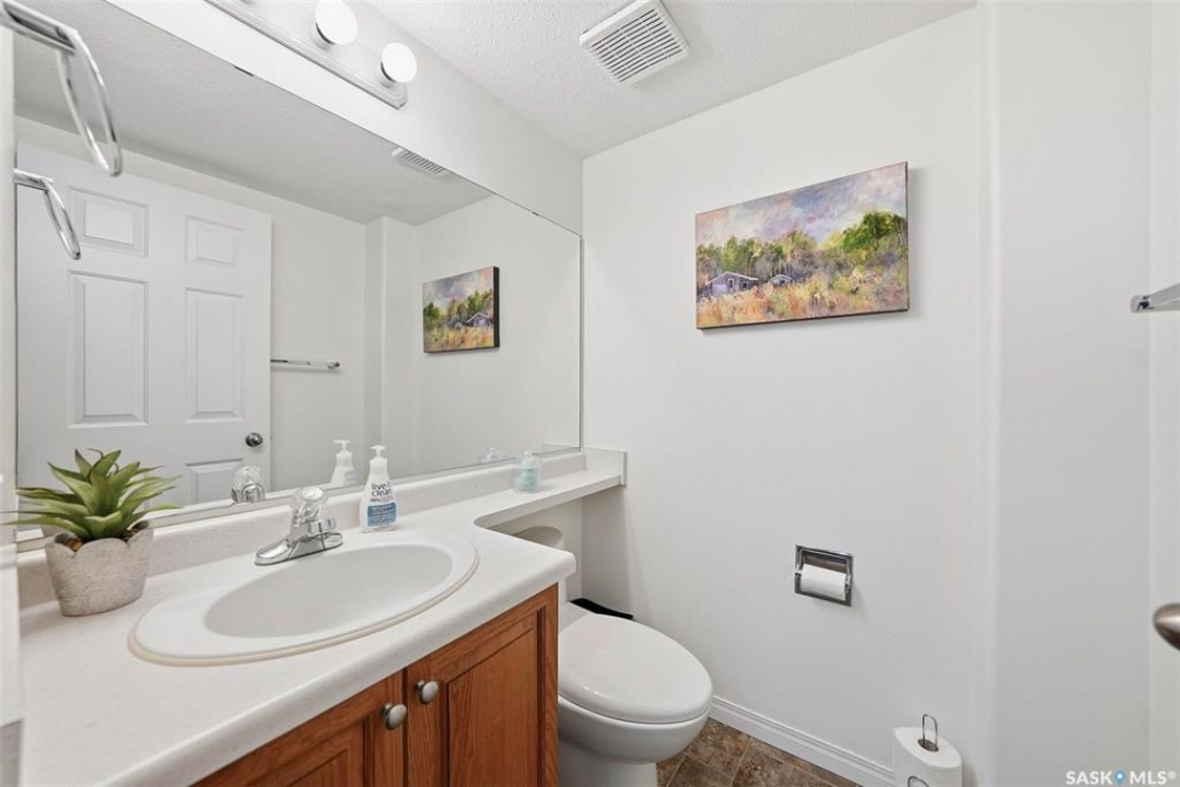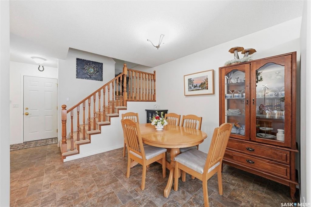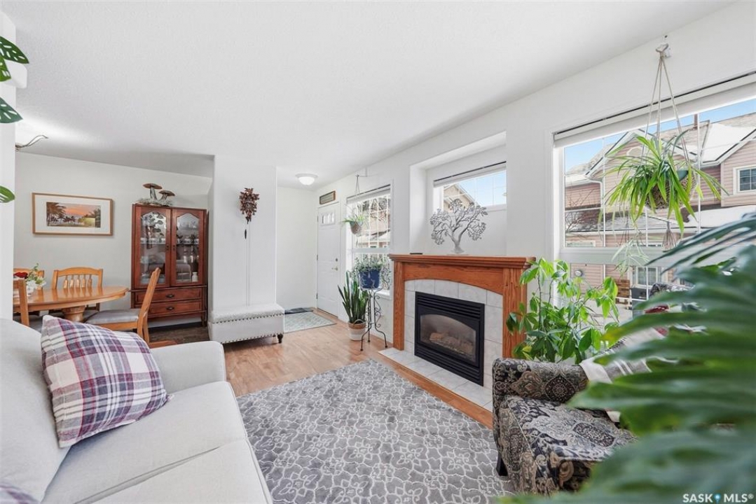 Are you looking for an easy to maintain home with excellent location? Look no further. This fully finished 1228 sq. ft two storey townhouse style condo features a double attached garage having direct entry & many upgrades. It is located in the Exhibition area of Saskatoon & situated right next to a beautiful park & has close proximity to many schools. The main floor has a front facing living room with a lot of natural light coming in, a cozy gas fireplace, laminate flooring & electronic controlled Lutron smart blinds. The kitchen features newer appliances, a touch faucet, plenty of cupboards & a pantry area next to the 2-piece bathroom. The dining room is spacious and open to the kitchen. The 2nd floor has a 4-piece bathroom with cheater door through to the primary bedroom. It also has 2 additional bedrooms which are both a good size and the laundry area. The basement is nicely finished with a large family area, storage and the utility room. There have been many upgrades, which include; paint on all interior walls, garage walls & roof, newly replaced smoke & CO detectors, new central vacuum installed with attachments, a new tankless on demand water heater & thermostat upgraded. This beautiful home is move in ready & comes complete with all appliances, washer, dryer, central air conditioning, central vacuum with all attachments and all window coverings. Call to view.