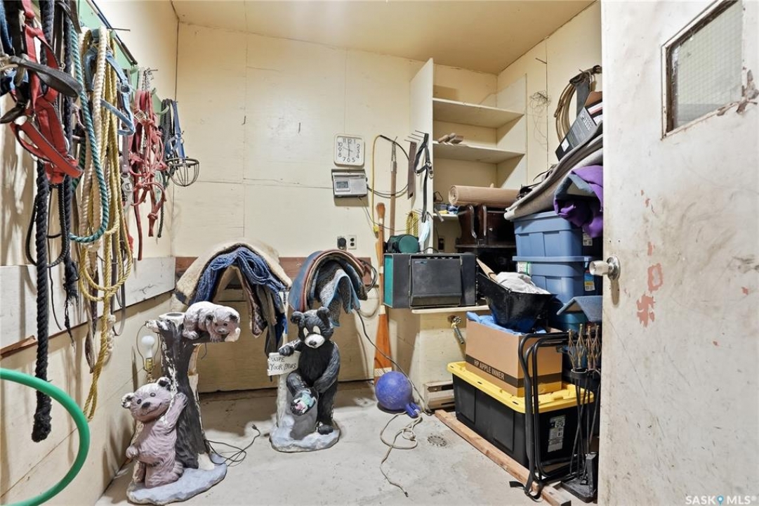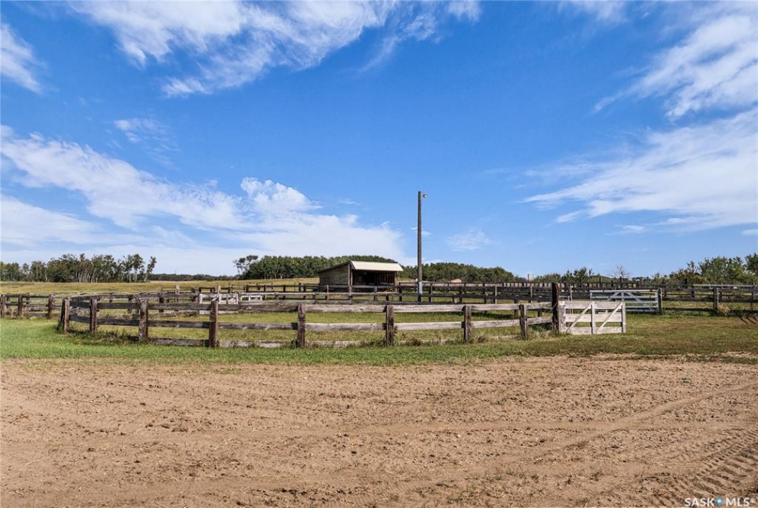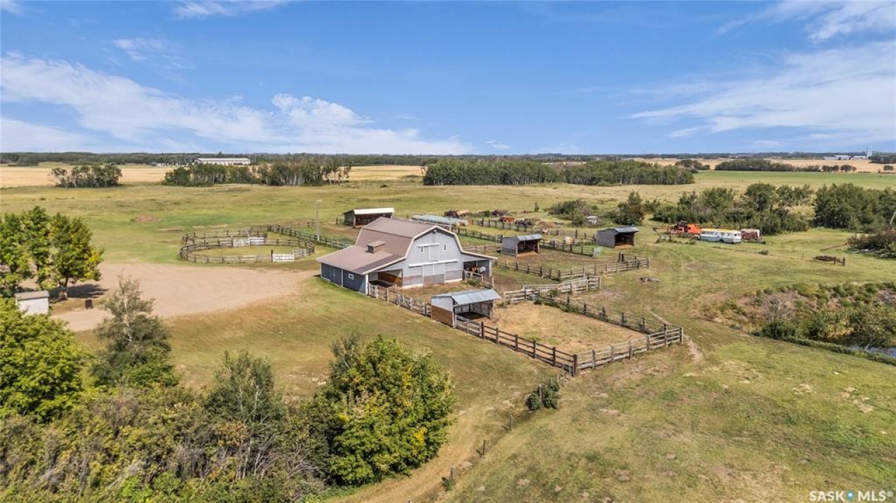The possibilities are truly endless with this special 80-acre property located just 15 minutes from the Saskatoon city limits. This piece of paradise is less than 4km from Highway 11, yet offers peace & tranquility that is practically unmatched so close to the convenience of the city. Offering an idyllic blend of poplar bluffs & wide open pasture, with CFB Dundurn to the south, you will rarely find a property with a more ideal blend of privacy, beauty & practicality. It is a horse lover's dream, set up with a steel-roof barn, corrals, shelters, dug out & an abundance of gently rolling pasture. Approximately 56 acres of partially-fenced yard site & pasture with an additional 22 acres (approximately) in hay. The home is a beloved 2200-square foot ranch-style WALK OUT BUNGALOW with real potential to become the epitome of luxury & convenience. With 4 bedrooms, 5 bathrooms including ensuites in the upstairs master bedroom & lower level guest bedroom, this solidly-built house will greatly reward the efforts of some cosmetic enhancement. Other home features include 200-amp electrical service, natural gas to property, a 26'x28' heated attached garage with direct entry, a 24'x32' shop with 12' overhead doors, & tons of parking for trailers, tractors, large machinery & more. The location also offers prime subdivision potential on the east portion of the property, providing an incredible investment opportunity while still leaving the premium equestrian aspect of this property undisturbed. You will rarely find another property that features so much as it is, which also offers so much future potential. DON'T MISS OUT!