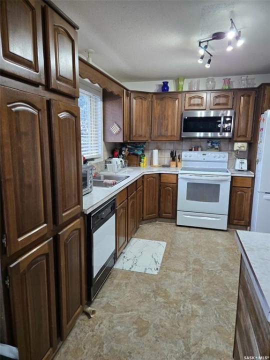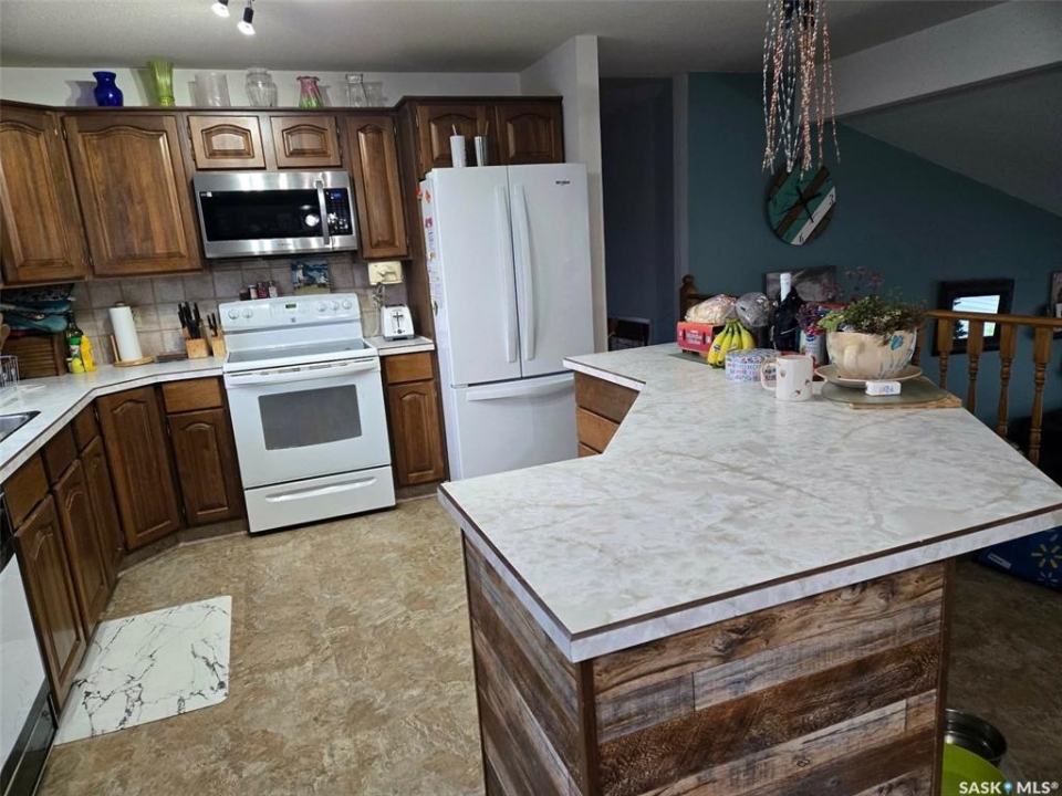 101 3rd St. W is located in Leader, SK. A friendly community in South West Saskatchewan with all the amenities required to live that a quiet, relaxing life in the prairies. This home is huge it will fit even the largest of families. It even has a playroom (could be office, library or craft room) just next to the kitchen, with patio doors that lead out to a deck at the front of the house. The kitchen dining and living room are open concept. The huge kitchen has a large island plenty of cupboard space and views of both the front and back of the property. There are garden doors off the kitchen that lead out to a deck which overlooks the huge, fenced back yard. The Primary bedroom comes complete with a large closet and 3pc ensuite. There are 2 other good sized bedrooms and the main (4pc) bathroom on the top floor. The next floor down is the living room, front entrance and the playroom. The ground floor level is where you enter from the 2 car garage. There are 2 bedrooms, laundry in the utility, 3pc bathroom and a familyroom on this floor. The basement houses a cold storage room, den and a bonus room that would be the perfect place to have a theatre room. There is also a detached garage on this property that was built in 1925 and is 38 x 24. This garage would make a nice work shop or storage for your toys. Don't wait get that showing lined up and check this property out. All measurements are approximate and all information is supplied by SAMA and the owner and can be verified by interested parties.