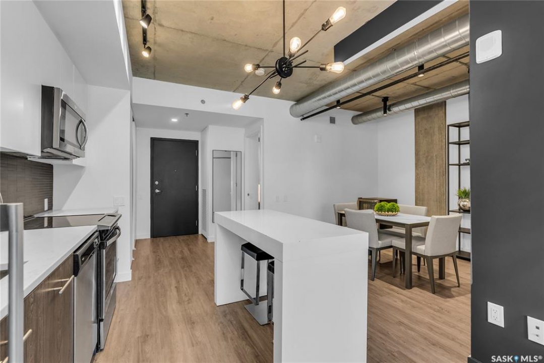 Welcome to luxury living in one of Saskatoon's most sought-after locations—River Landing. This beautifully appointed 1-bedroom, 1-bathroom condo offers breathtaking views of the South Saskatchewan River and features high-end finishes, updated lighting, and a layout that truly shows 10/10. The modern 4-piece bathroom provides spa-like comfort, while the open-concept living space is designed for both relaxation and entertaining, with large windows that flood the unit with natural light and showcase the stunning river views. Residents of the River Landing building enjoy access to premium amenities, including a fully equipped gym and a stylish amenities room with a pool table. This unit also includes one highly coveted parking spot in the secure parkade—an exceptional bonus in this desirable downtown building. You simply can't beat the location. Just steps away from scenic parks, the South Saskatchewan River, Saskatoon's best restaurants, theatres, and cultural attractions, this condo offers the ultimate in urban convenience and lifestyle. Whether you're a professional, downsizer, or investor, this is an exceptional opportunity to own in the heart of downtown Saskatoon.