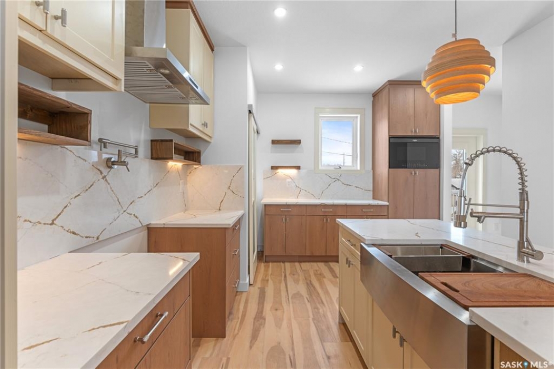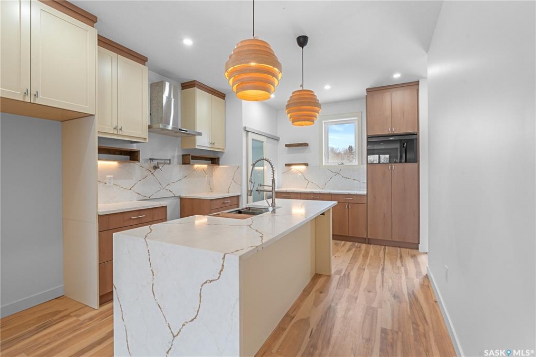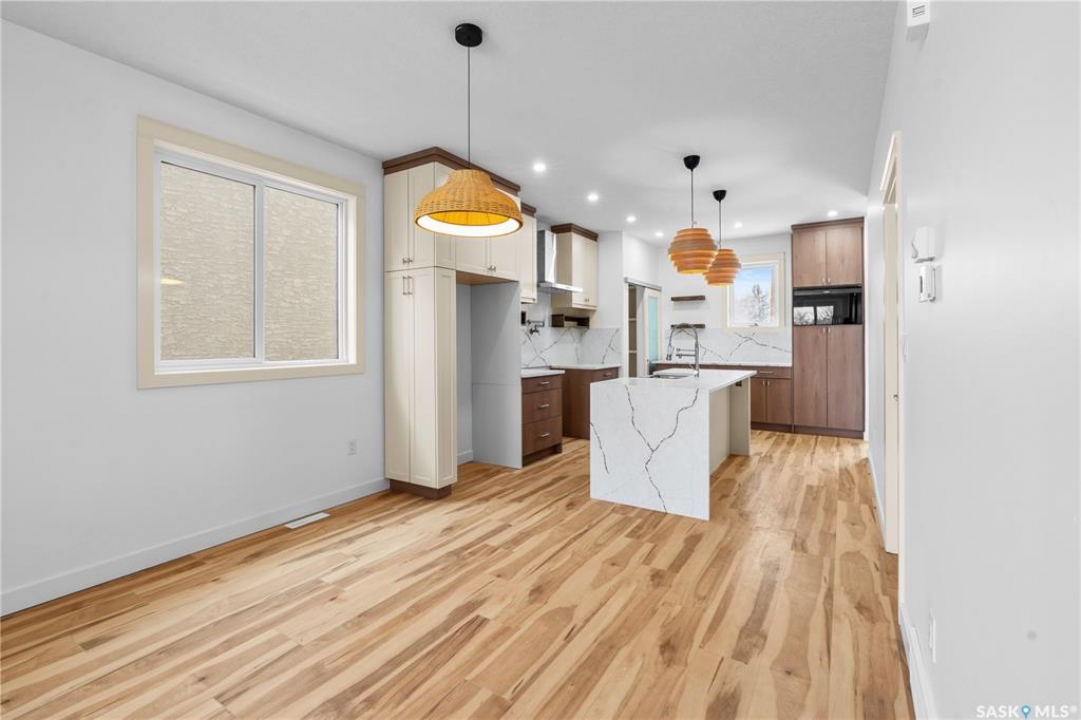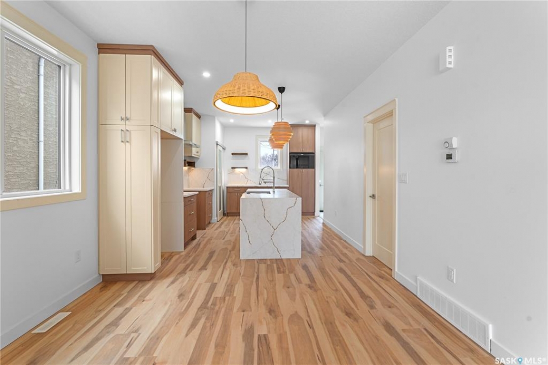 Modern Infill in North Park – Legal Suite & Prime Location! Welcome to 424 Empress Street—a beautifully designed new infill in the heart of North Park, one of Saskatoon's most desirable walkable neighborhoods. This 2-storey home offers over 1600 sq ft of thoughtfully planned living space. The exterior showcases a bold modern design featuring durable Hardie board siding, sleek metal cladding, and clean architectural lines that stand out on this quiet street. Inside, you're greeted with an open-concept main floor that boasts 9' ceilings, a cozy fireplace, spacious living and dining areas, and a stunning kitchen with full-height cabinets, pantry, and dedicated office space. SSI grant of 35% upto $35000 will go to buyer. Flooded with natural light from oversized windows throughout, this home feels bright, airy, and inviting in every season. Upstairs on the 2nd floor, you'll find 3 bedrooms including a vaulted-ceiling primary suite with walk-in closet and ensuite, plus a full bath and convenient laundry. The fully finished basement features a legal 2-bedroom suite with its own entrance, kitchen, laundry, and living area—perfect for rental income or extended family. Located just minutes from the river, Meewasin Trail, and downtown with no neighbour at the back. Don't miss this opportunity to own a stylish, income-generating home in a mature, central neighborhood. Contact your favourite REALTOR � for more details!
