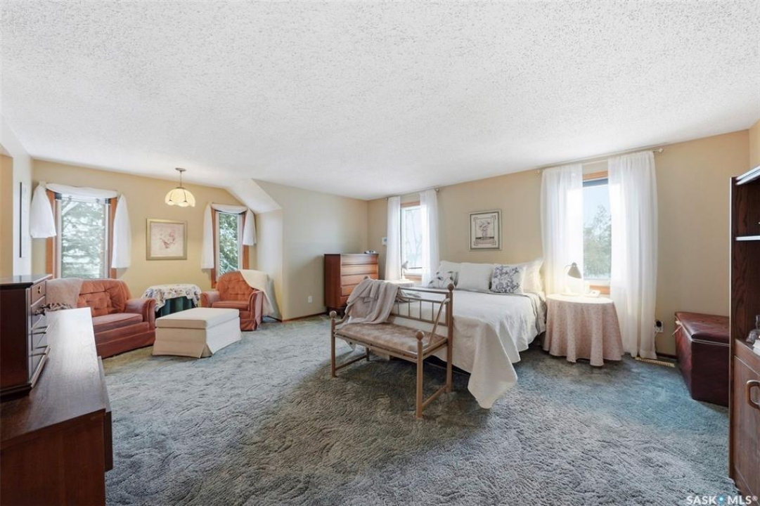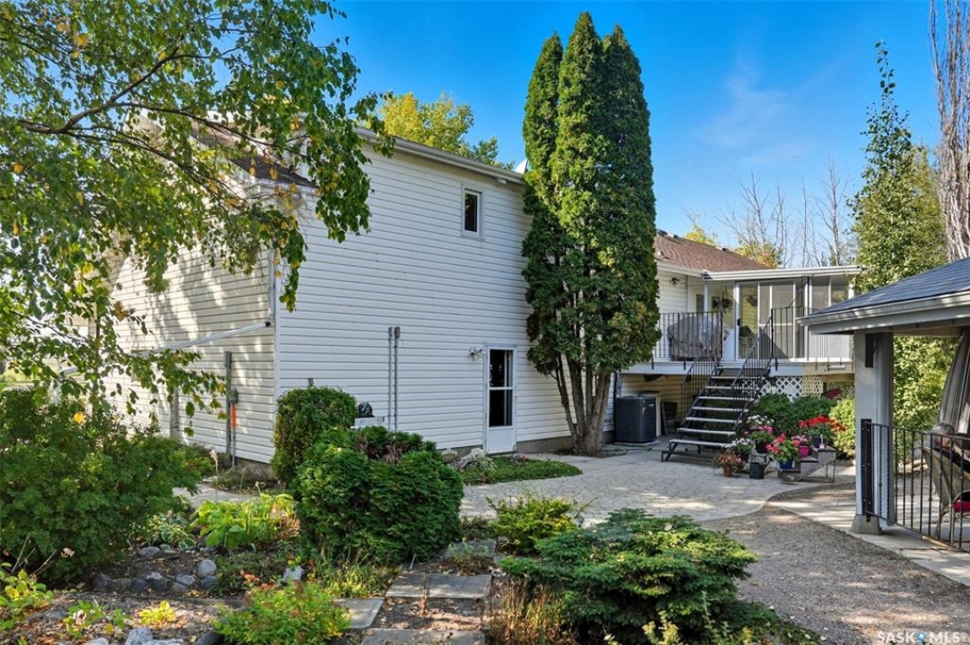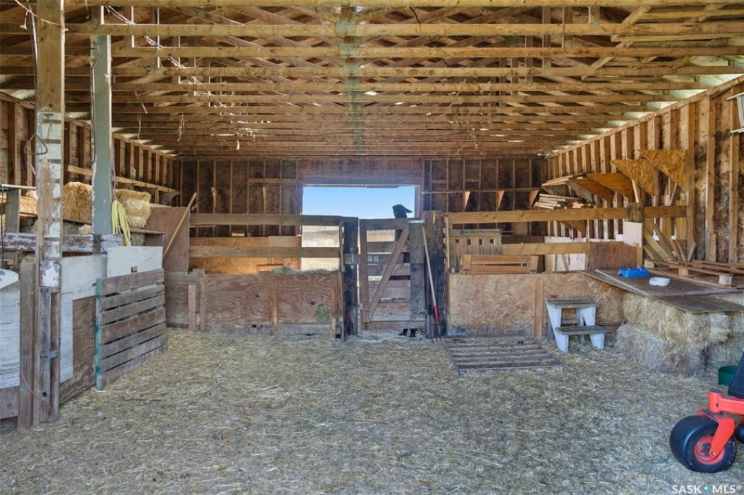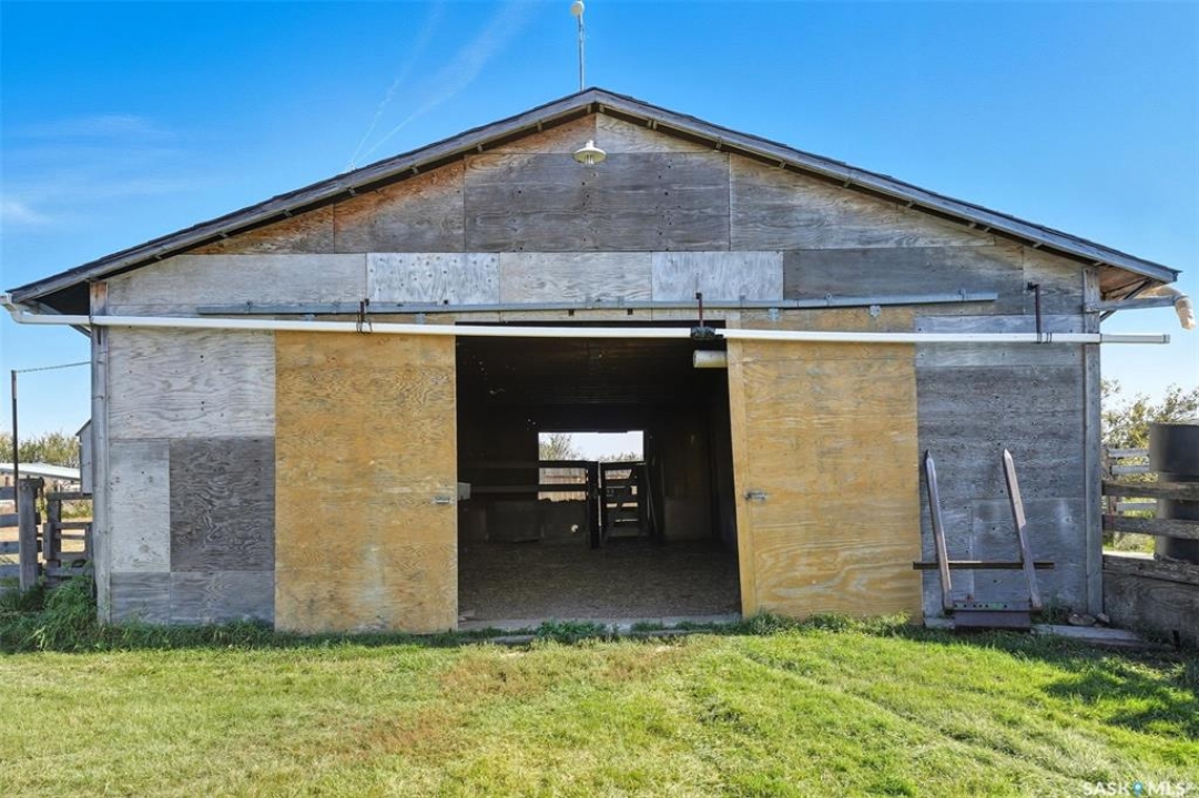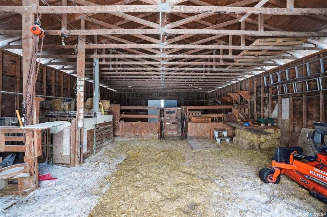 What an incredible 80-acre acreage! This stunning bi-level home is filled with natural light and offers 4 spacious bedrooms, including an impressive 472 sq. ft. primary suite. The living room features vaulted ceilings and a striking floor-to-ceiling stone fireplace, creating a warm and inviting focal point. The basement is supported by a steel beam, allowing for a beautiful future build-out with oversized windows. The home is serviced with city water and natural gas, offering the comfort of urban utilities in a peaceful country setting. The oversized 26' x 22' garage provides excellent flexibility, with easy potential to expand to a 4- or even 6-car garage—either by extending to the rear for two additional vehicles or to the side for a third bay. The shop (including all tools) with in-floor heating adds even more value and functionality. The barn features �-inch plywood exterior sheeting, ready for siding or another exterior finish of your choice. Multiple outbuildings add versatility for storage, livestock, or hobby use. Ideally located on pavement, door to door, just west of Saskatoon, approximately 6 minutes from the city, this property also includes prime grain land currently leased to a local farmer, providing added income potential. A rare opportunity combining space, location, and endless possibilities—this acreage truly has it all.