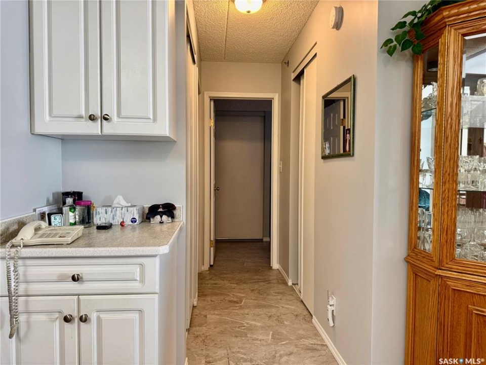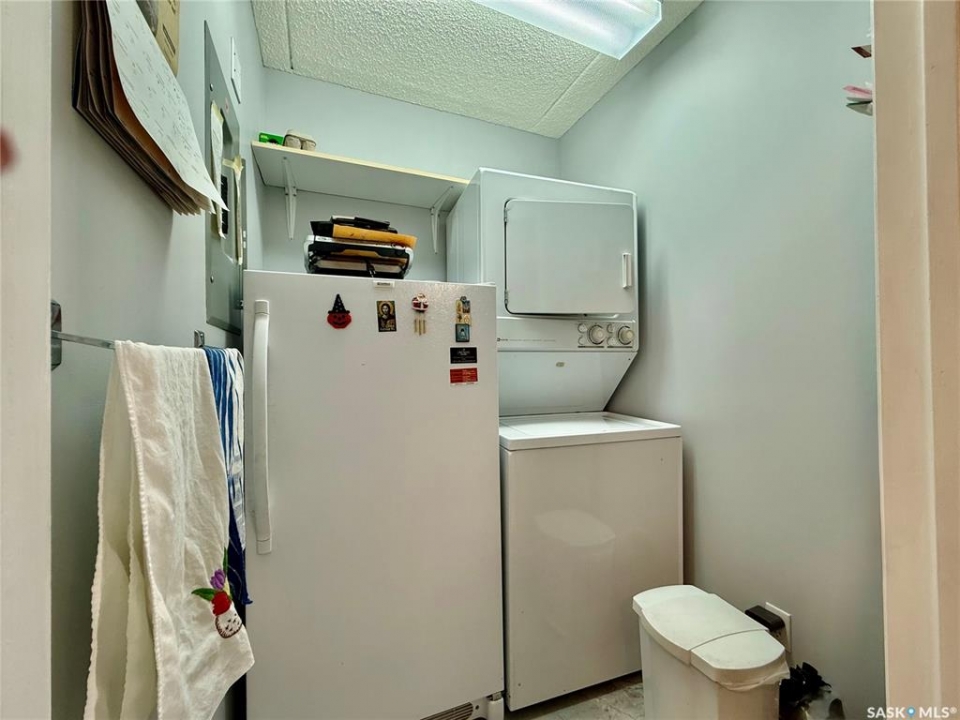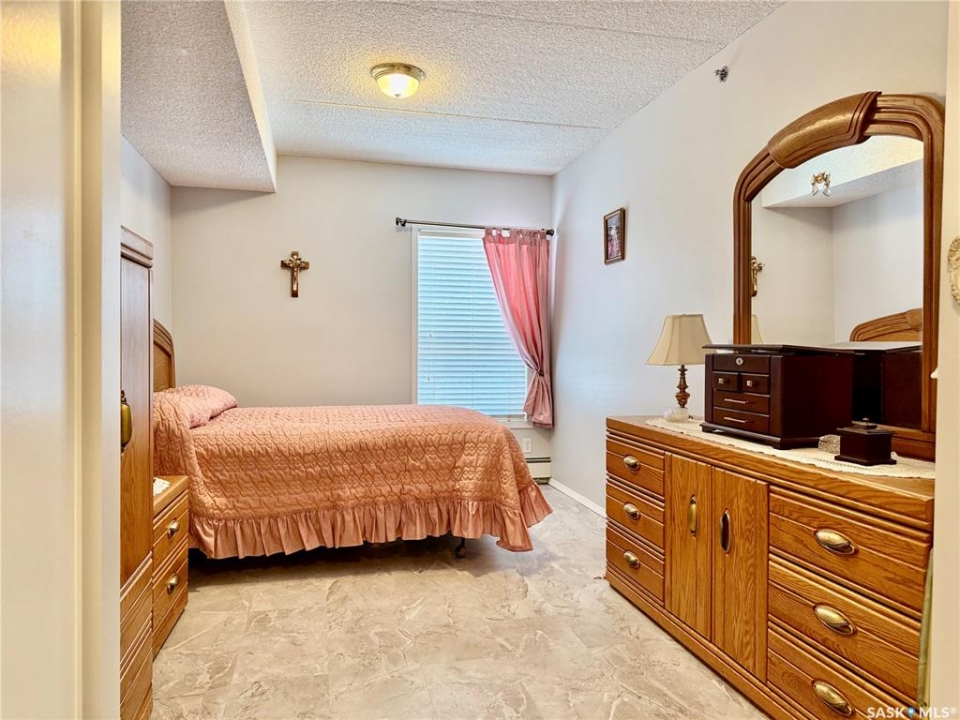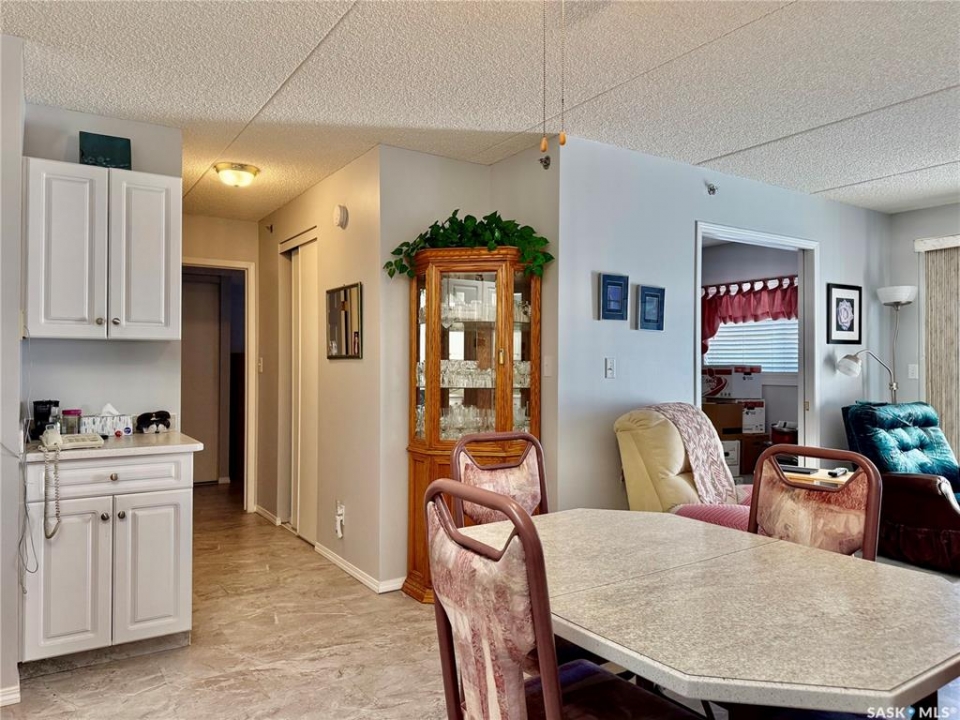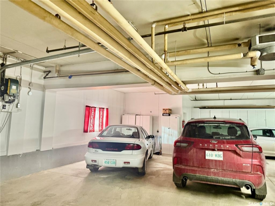 Welcome to Parkview Place in the heart of Humboldt—a well-maintained and thoughtfully updated 2 bedroom, 2 bathroom condominium offering comfortable, low-maintenance living in a prime location. Step inside the inviting foyer, complete with mirrored closet doors that enhance both light and storage. The layout flows into a bright kitchen and dining area featuring crisp white cabinetry, updated countertops, and appliances including fridge, stove, and built-in dishwasher. The adjoining living room is filled with natural light and offers direct access to your west-facing balcony, the perfect place to unwind and enjoy beautiful Saskatchewan sunsets. Balcony includes two convenient storage units, with recently repainted shed doors . The primary bedroom offers excellent space along with its own closet and private 2-piece ensuite. A second bedroom with closet is ideal for guests, a home office, or hobby space. The main 4-piece bathroom is centrally located, and additional hallway closets provide extra storage. You'll also appreciate the in-suite laundry room, complete with washer, dryer, and an upright freezer included for added convenience. This unit comes with one heated garage parking stall and two dedicated storage cabinets in the parkade, providing secure parking and extra storage space. Recent updates include vinyl plank flooring and freshly repainted balcony storage shed doors. A hide-a-bed is also included, making this home move-in ready. Parkview Place offers excellent building amenities including an amenities room for social gatherings, elevator access, secure intercom entry system, and wheelchair accessibility for added comfort and convenience. Form 917 Direction Regarding Offer Presentation - There shall be no presentation of offers as per Seller's Instruction until 1:00 p.m. February 27 2026. Enjoy easy condo living close to shopping, services, and all that Humboldt has to offer. Call today to book your private showing.