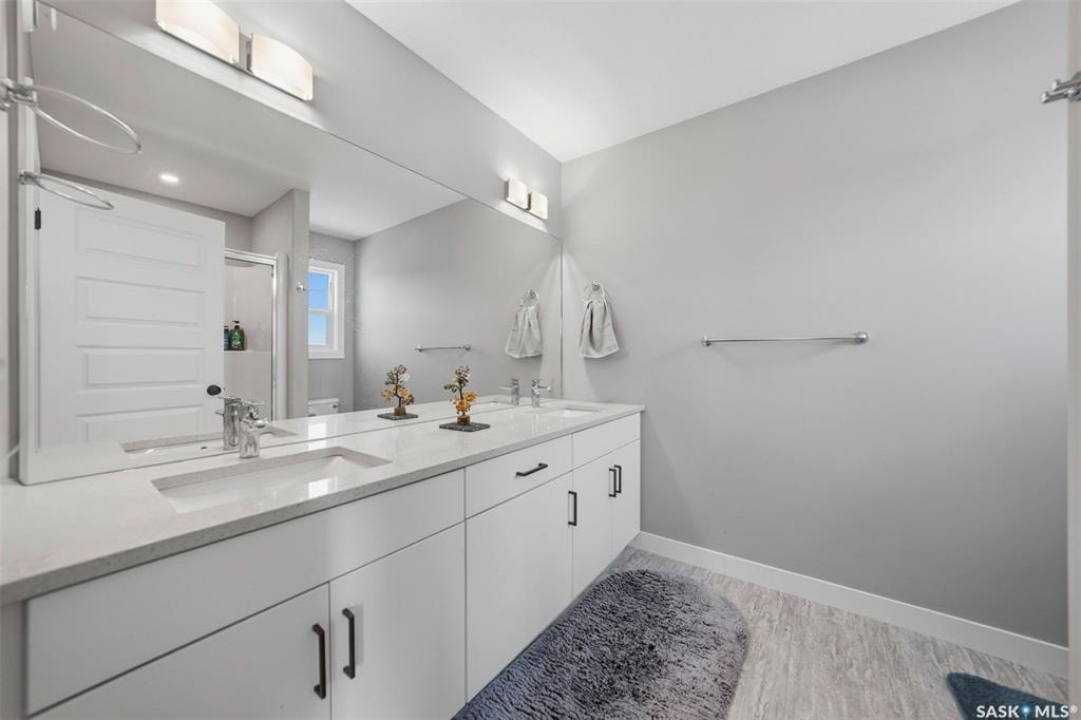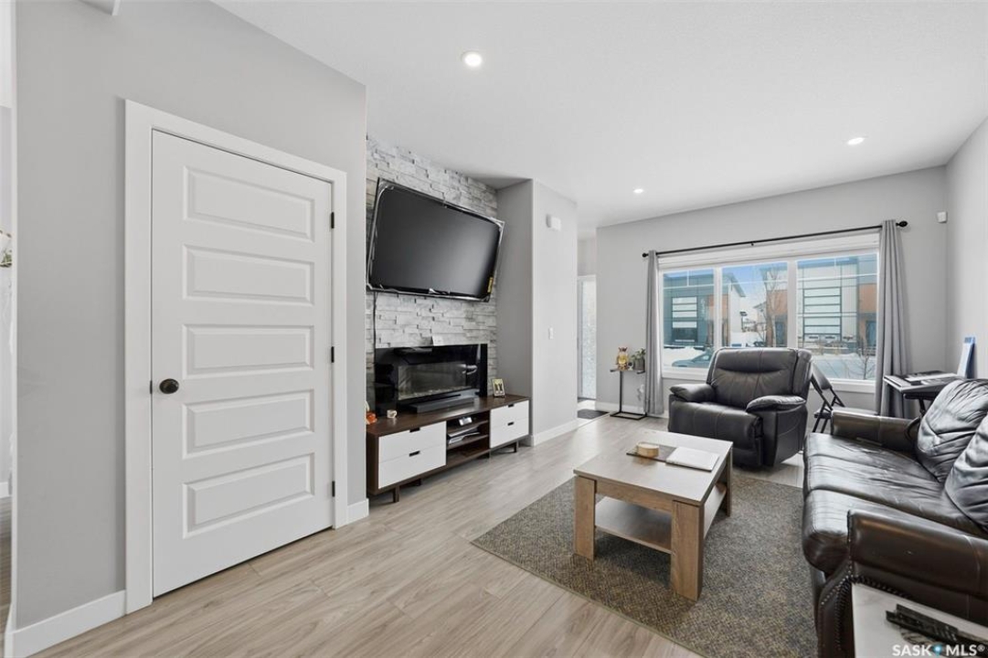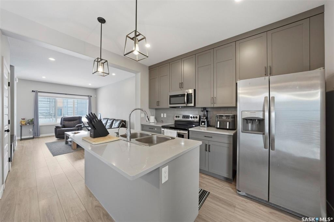 Step into elevated everyday living at 608 Brighton Gate, a stunning two-storey semi-detached home in the vibrant and highly sought-after Brighton neighbourhood of Saskatoon. Offering 3 bedrooms, 3 bathrooms, and 1,363 sq. ft. of beautifully maintained living space, this home blends modern design with exceptional functionality. The main floor showcases a stylish kitchen featuring quartz countertops, custom cabinetry, stainless steel appliances, and a spacious island,perfect for cooking, gathering, and entertaining. The open-concept layout flows effortlessly into the bright dining and living areas, creating a warm and welcoming atmosphere. Upstairs, retreat to a spacious primary suite complete with a walk-in closet and spa-inspired ensuite. Two additional bedrooms, a well-appointed 3-piece bathroom, and convenient second-floor laundry complete the upper level. Enjoy unbeatable convenience with public transit within walking distance and a school bus stop just steps from the corner. You're also only a short stroll from Brighton Marketplace, Landmark Cinemas, and Motion Fitness—bringing shopping, dining, and entertainment right to your doorstep. The home also offers a legal basement suite option with potential eligibility for government construction grants an excellent opportunity for additional income. Step outside to a fully landscaped backyard featuring a generous deck, brick patio, lush lawn with underground sprinklers, and an insulated, drywalled double detached garage. Move-in ready and impeccably cared for, book your private showing today and experience all that this Brighton gem has to offer.