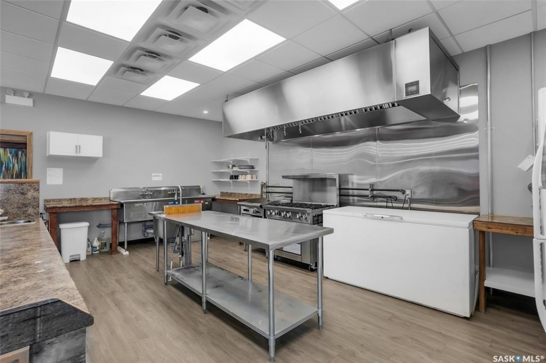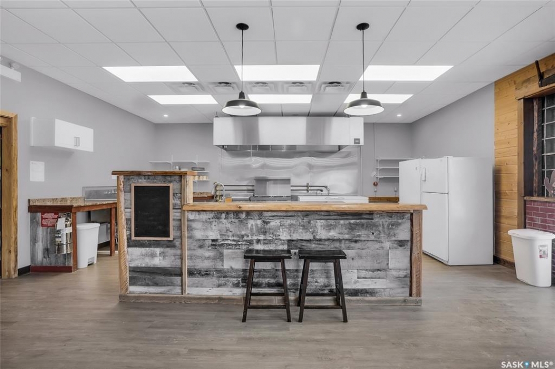 Kenaston is where opportunity meets visibility—and where imagination can truly take shape. Positioned directly on the twinned, double-lane Highway 11, the primary trucking corridor between Saskatoon and Regina, and at the junction of Highways 11 and 15, this fully renovated, turn-key commercial building places your business—or multiple businesses—in front of steady commuter, transport, agricultural, and local traffic every day. Surrounded by strong farming operations and ideally located between Saskatchewan's two largest cities, Kenaston offers consistent highway exposure without big-city overhead, plus the affordability and community support that allow entrepreneurs to grow and diversify. Set on a high-visibility double corner lot with room for a summer patio, this certified restaurant space includes tables, chairs, and appliances and is ready to operate, while offering flexibility for layered income opportunities such as a café and bistro concept, restaurant with retail, or catering and specialty services. Inside features a welcoming seating area, two wheelchair-accessible restrooms, air conditioning, a private back office, and a versatile additional room previously approved as a tattoo studio and currently used for aesthetics—ideal for rental income, expansion, or a complementary second business. The commercial kitchen is built for performance with an approximate $50,000 professional ventilation system, gas grill, gas oven, six-burner range, and large freezer, while the full basement provides extensive storage or future development potential. Major upgrades include a new furnace and water heater, updated electrical and plumbing, stucco exterior (2022), newer doors and windows, and a 2017 roof. With two gas stations already capturing steady road traffic, the demand for a standout destination stop is clear—this property is primed to become Kenaston's next community anchor, where creativity meets cash flow.